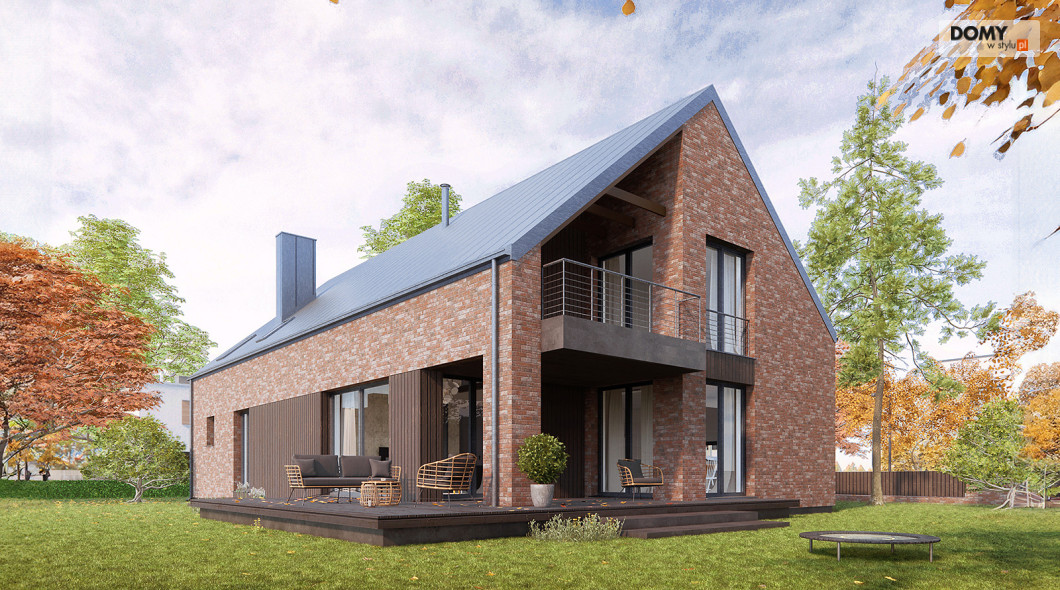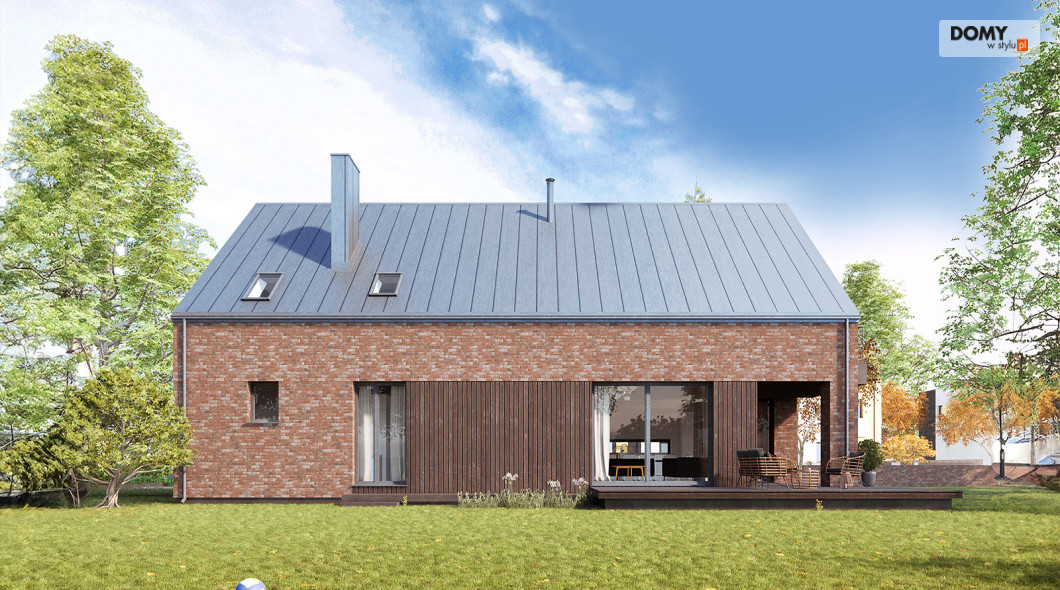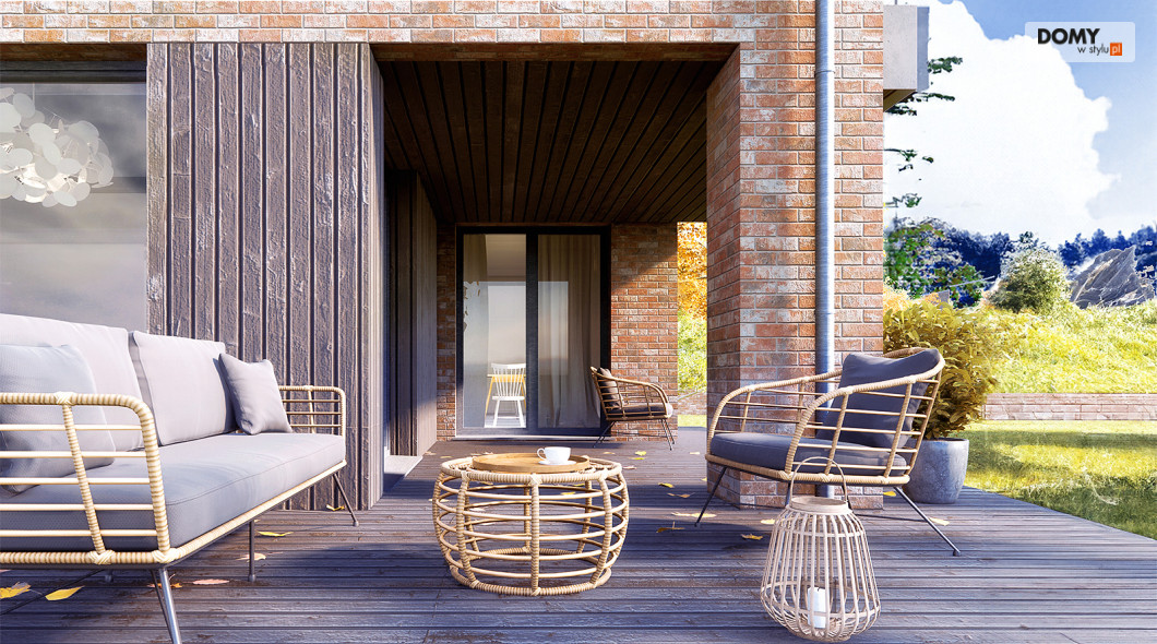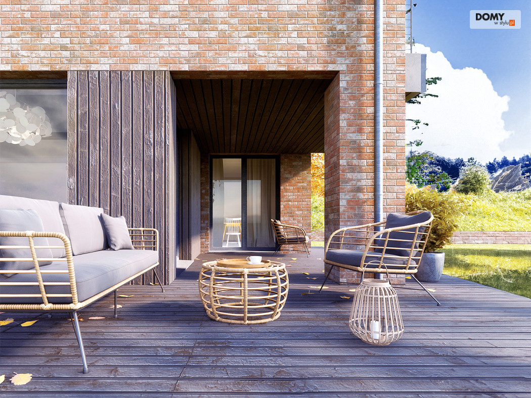 Kolejna odsłona projektu "Słoneczny" jest odpowiedzią na rosnącą popularność nowoczesnych domów o zwartej bryle. Na poddaszu przewidziano 4 sypialnie, dzięki czemu zapewniono wygodną przestrzeń dla 5-osobowej rodziny. Pomieszczenie głównej sypialni z dostępem do prywatnej łazienki i garderoby tworzy tzw. master bedroom. W razie konieczności również gabinet na parterze może zostać zaaranżowany jako dodatkowa sypialnia lub pokój gościnny. Na parterze znajduje się strefa dzienna - jasna przestrzeń składająca się z otwartej kuchni, jadalni i salonu z antresolą. Rozszerzeniem pokoju dziennego jest zadaszony taras.