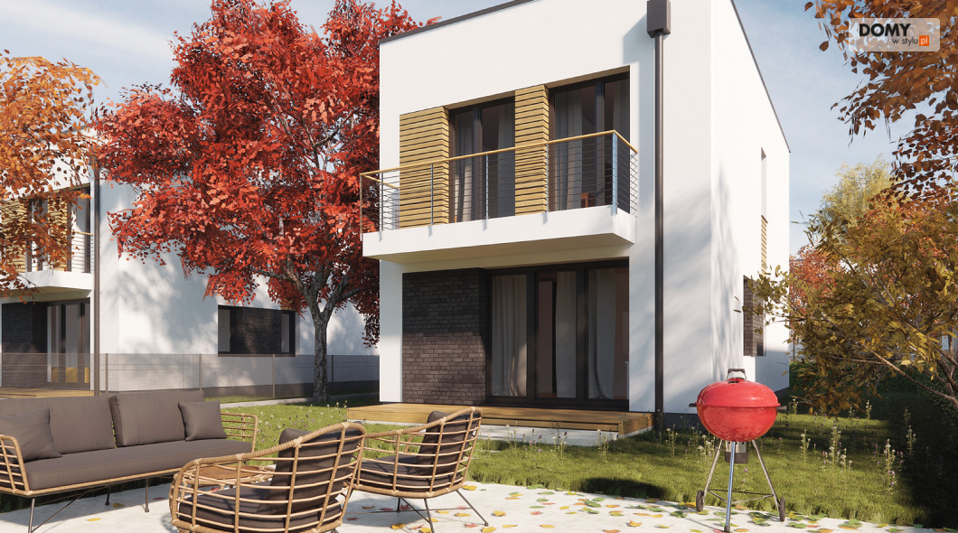 Juka W to projekt domu piętrowego, którego układ funkcjonalny rozplanowano na powierzchni 90 m2. Budynek zaprojektowano na rzucie prostokąta i przykryto płaskim dachem. Szerokość budynku nie przekracza 6 m, dzięki czemu projekt idealnie wpisze się na wąską działkę. Układ funkcjonalny domu rozplanowano na dwóch pełnych kondygnacjach. Na parterze znajduje się część dzienna. Zaprojektowano tu salon z kominkiem, jadalnię z wyjściem na taras oraz aneks kuchenny. Układ funkcjonalny parteru dopełnia dodatkowy pokój, łazienka oraz wiatrołap z pojemną szafą. Na piętrze znalazły się trzy wygodne sypialnie oraz rodzinna łazienka.