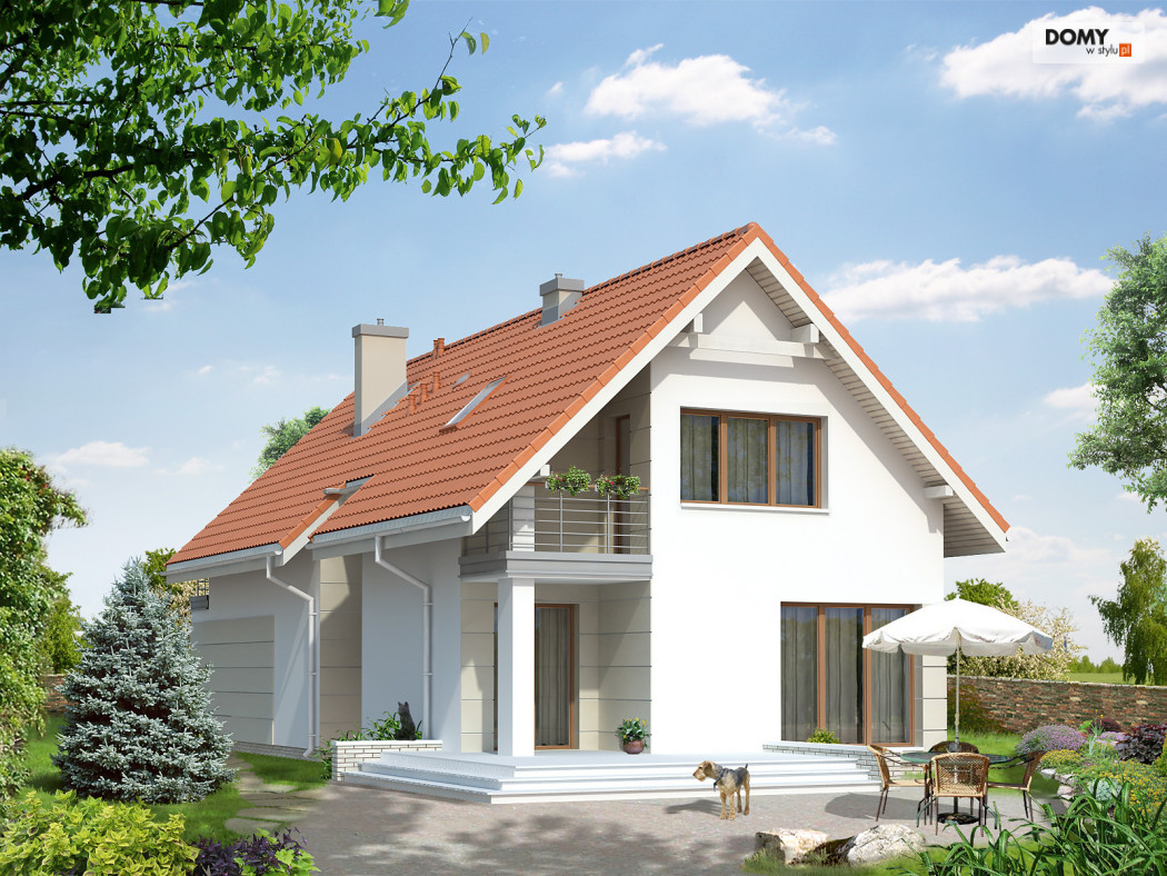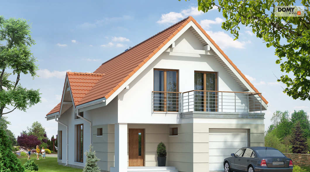 Dom na wąską działkę, z garażem od frontu. Na parterze zaprojektowano część dzienną z salonem, kuchnią i jadalnią. Na poddaszu znajdują się trzy sypialnie, garderoba i łazienka z pralnią. Dom zaprojektowany w technologii Multi-Comfort z zastosowaniem produktów marki Saint-Gobain łączy unikalne właściwości produktów z rozsądną ceną. Standard Multi-Comfort oznacza szereg korzyści, takich jak: niskie koszty ogrzewania, komfort termiczny, akustyczny, dobra jakość powierza, bezpieczeństwo przeciwpożarowe (klasa A1). Wszystko to jest możliwe za sprawą zastosowanych w projekcie sprawdzonych materiałów znanych i cenionych marek: Isover, Weber, Rigips, Glassolutions. Produkty Grupy Saint-Gobain są wytwarzane z naturalnych materiałów i posiadają deklaracje środowiskowe. W procesie eksploatacji budynki zaprojektowane w technologii Multi-Comfort posiadają niewielkie zapotrzebowanie na energię pierwotną. Więcej informacji o domach w standardzie Multi-Comfort: www.multi-comfort.pl