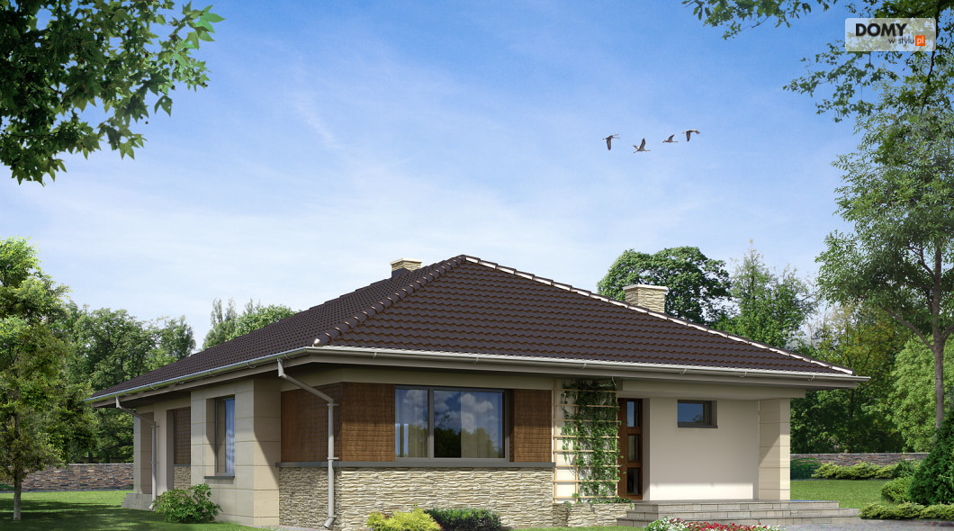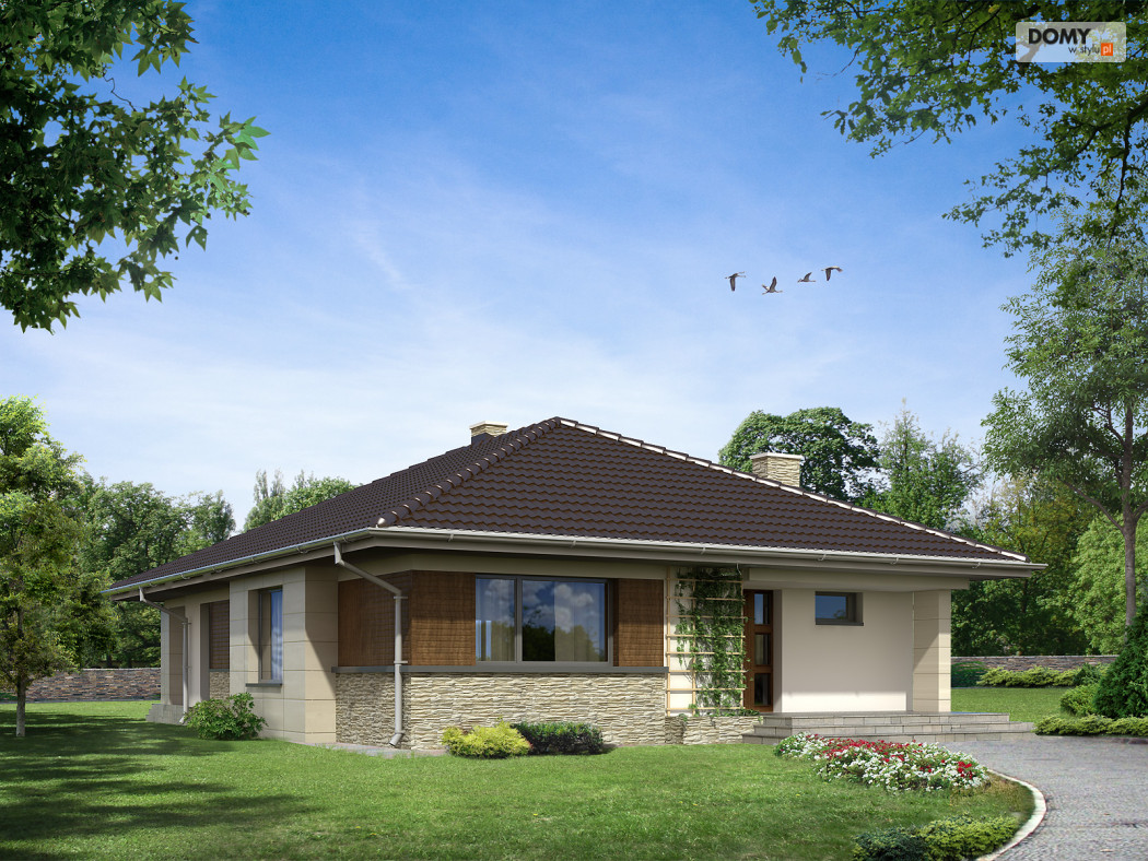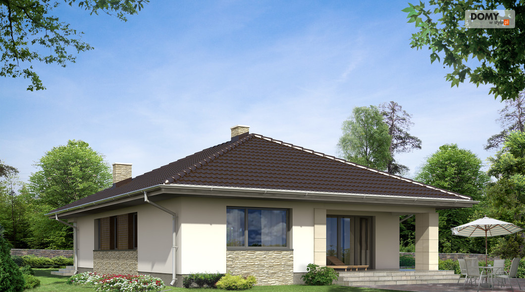 Dom jednorodzinny, parterowy. Posiada zadaszony taras dostępny z salonu. W projekcie zastosowano wyraźny podział na część dzienną i nocną. Dom idealny dla 4-osobowej rodziny. Dom zaprojektowany w technologii Multi-Comfort z zastosowaniem produktów marki Saint-Gobain łączy unikalne właściwości produktów z rozsądną ceną. Standard Multi-Comfort oznacza szereg korzyści, takich jak: niskie koszty ogrzewania, komfort termiczny, akustyczny, dobra jakość powierza, bezpieczeństwo przeciwpożarowe (klasa A1). Wszystko to jest możliwe za sprawą zastosowanych w projekcie sprawdzonych materiałów znanych i cenionych marek: Isover, Weber, Rigips, Glassolutions. Produkty Grupy Saint-Gobain są wytwarzane z naturalnych materiałów i posiadają deklaracje środowiskowe. W procesie eksploatacji budynki zaprojektowane w technologii Multi-Comfort posiadają niewielkie zapotrzebowanie na energię pierwotną. Więcej informacji o domach w standardzie Multi-Comfort: www.multi-comfort.pl