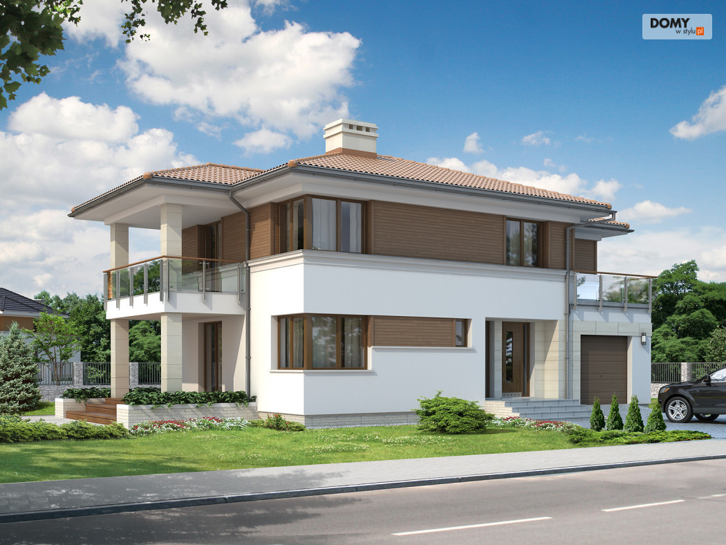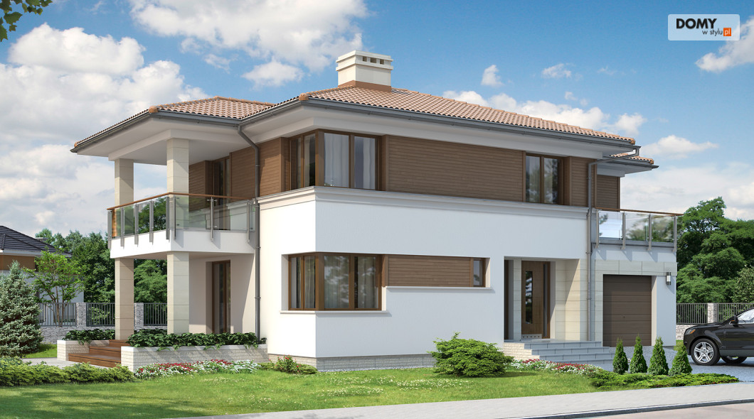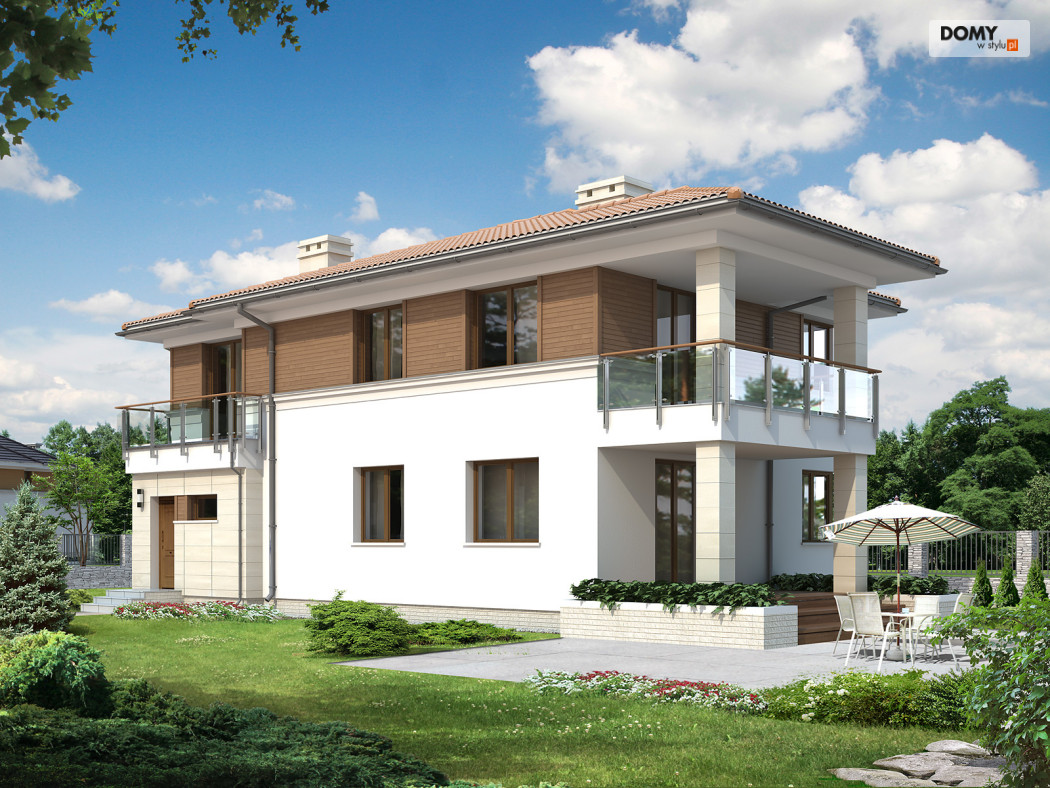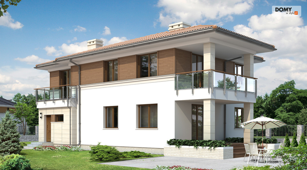Jednorodzinny budynek mieszkalny, piętrowy, przeznaczony dla 4 - 5-osobowej rodziny. Nowoczesna, ciekawa bryła. Na parterze przewidziano cześć dzienną oraz część gospodarczą z garażem. Na piętrze cztery sypialnie oraz łazienka.