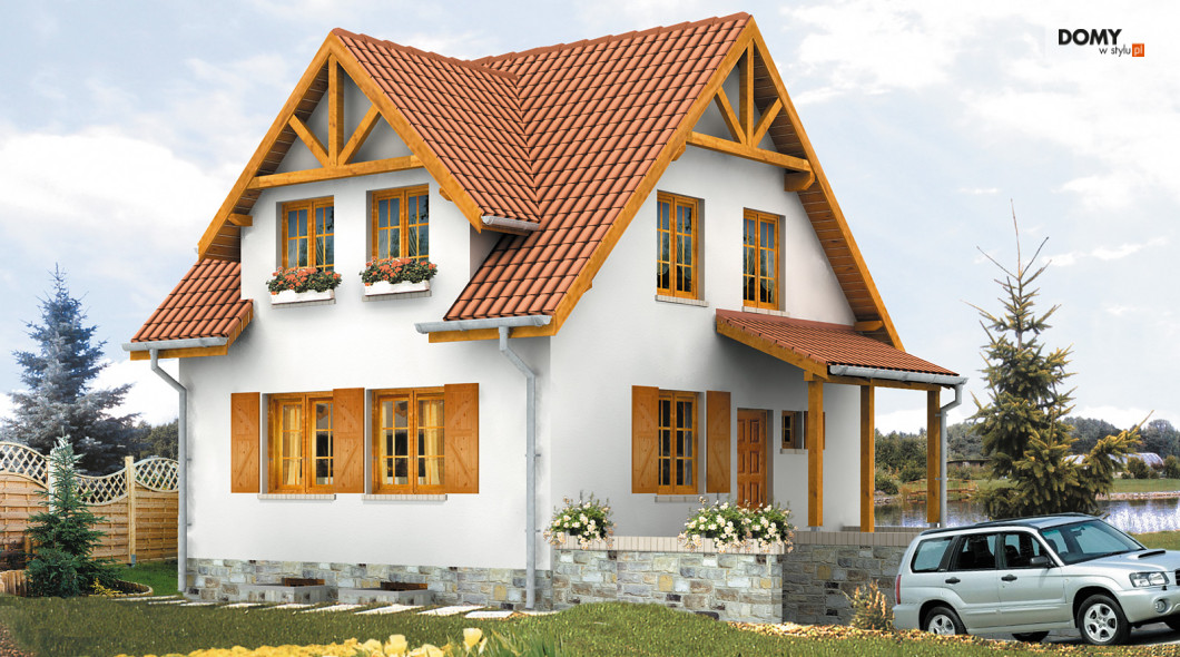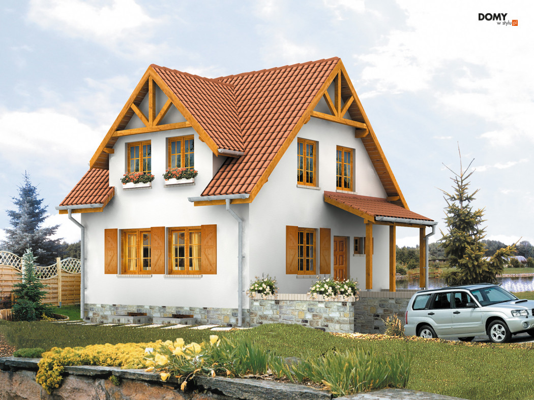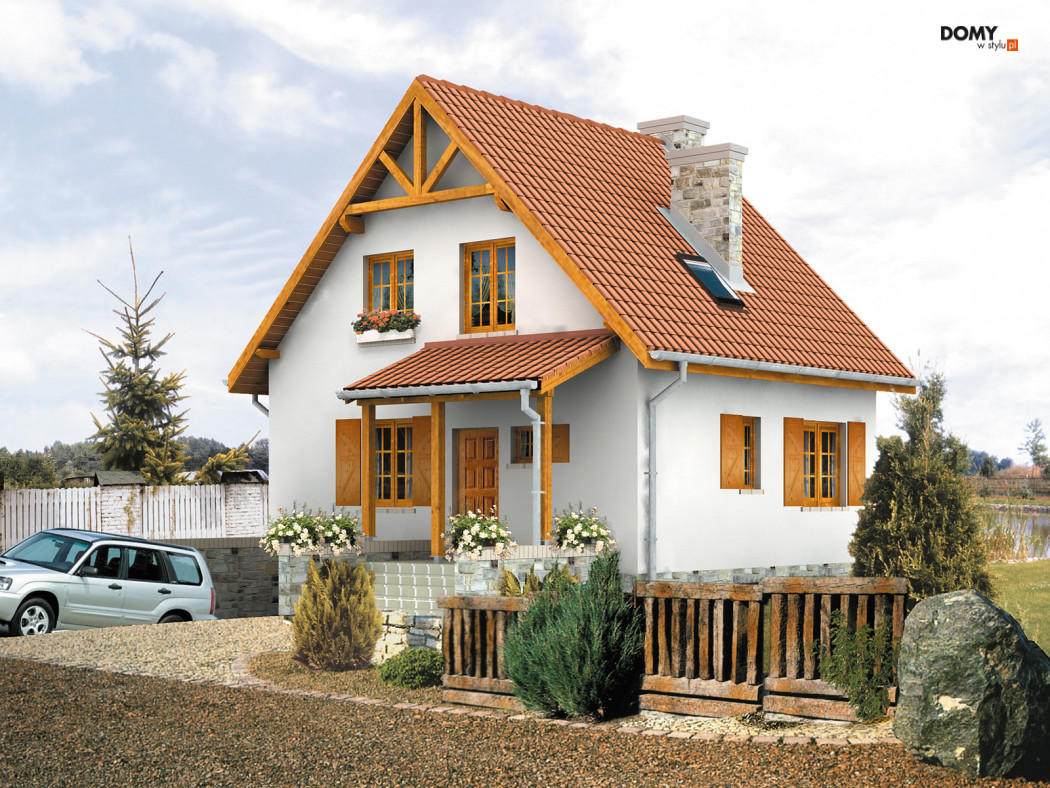 Optymalnie zaprojektowany, nieduży, parterowy domek z użytkowym poddaszem. Przestronny słoneczny pokój dzienny pozwala ustawić dom na każdej działce, niezależnie od stron świata.