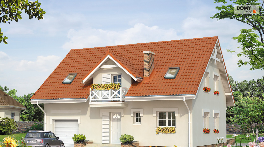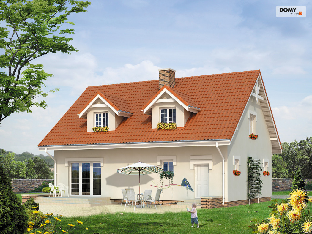 Dom jednorodzinny z poddaszem użytkowym dla 3 – 4-osobowej rodziny. Garaż wkomponowany w bryłę domu. Kotłownia na paliwo stałe ze składem opału. Na poddaszu znajdują się trzy sypialnie, łazienka oraz garderoba.