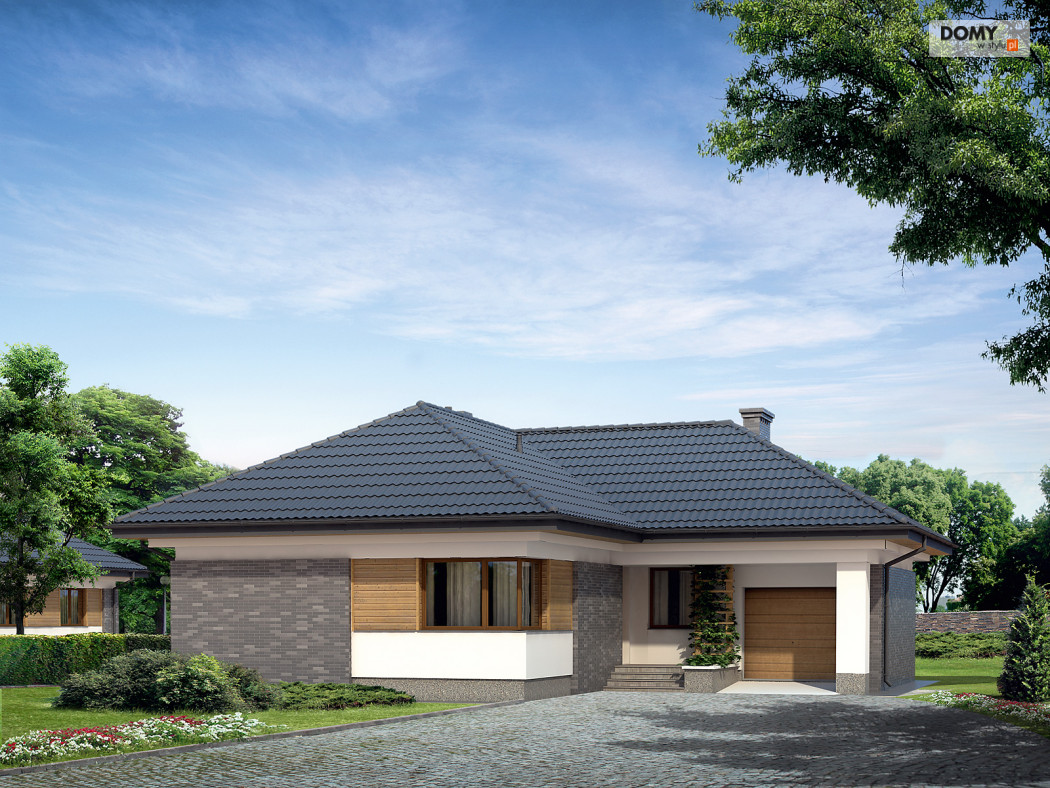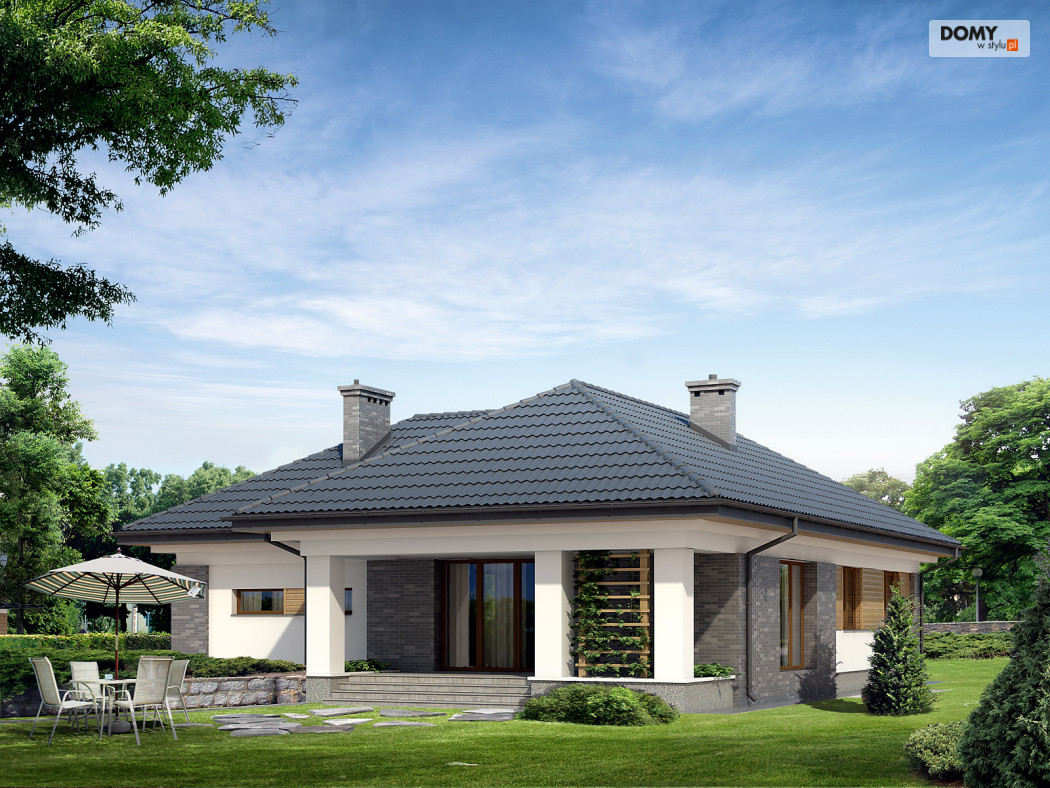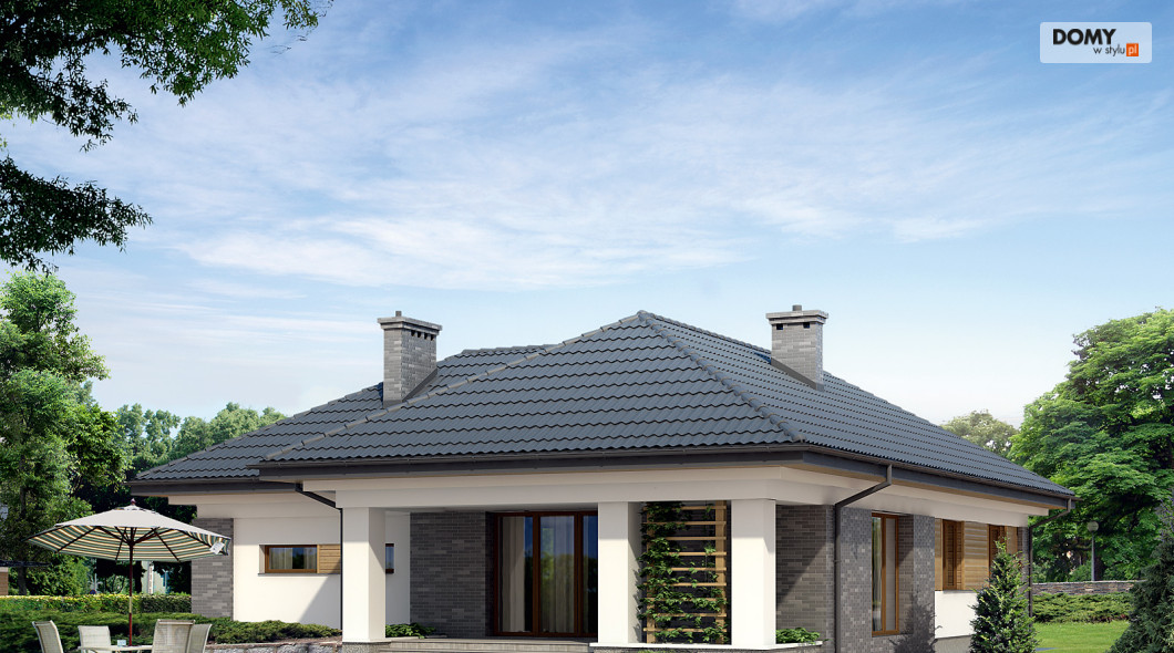 Jednorodzinny dom parterowy, niepodpiwniczony, przeznaczony dla 4-osobowej rodziny. Przestronna, otwarta część dzienna została dodatkowo wzbogacona o zadaszony taras. W części nocnej przewidziano trzy sypialnie, w tym jedną z garderobą oraz łazienkę. Wyraźny podział na części dzienną, nocną i gospodarczą.