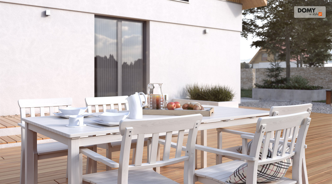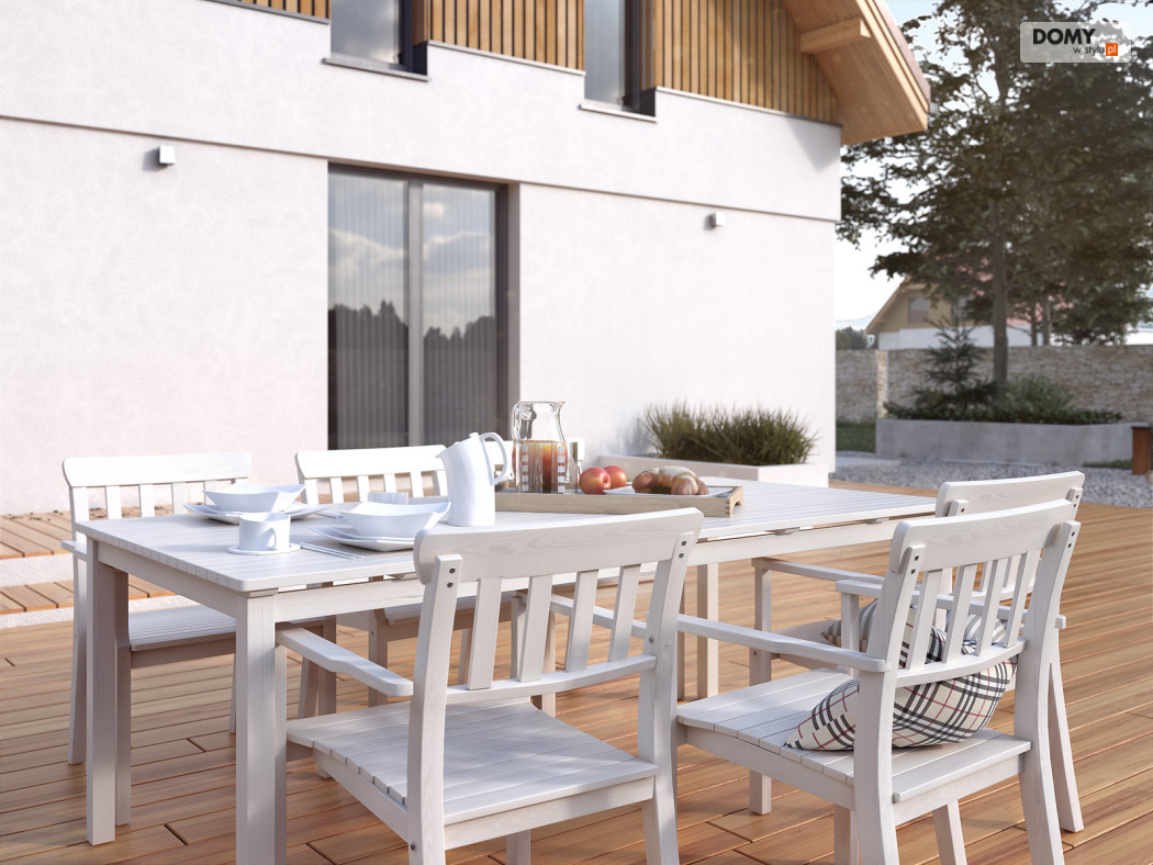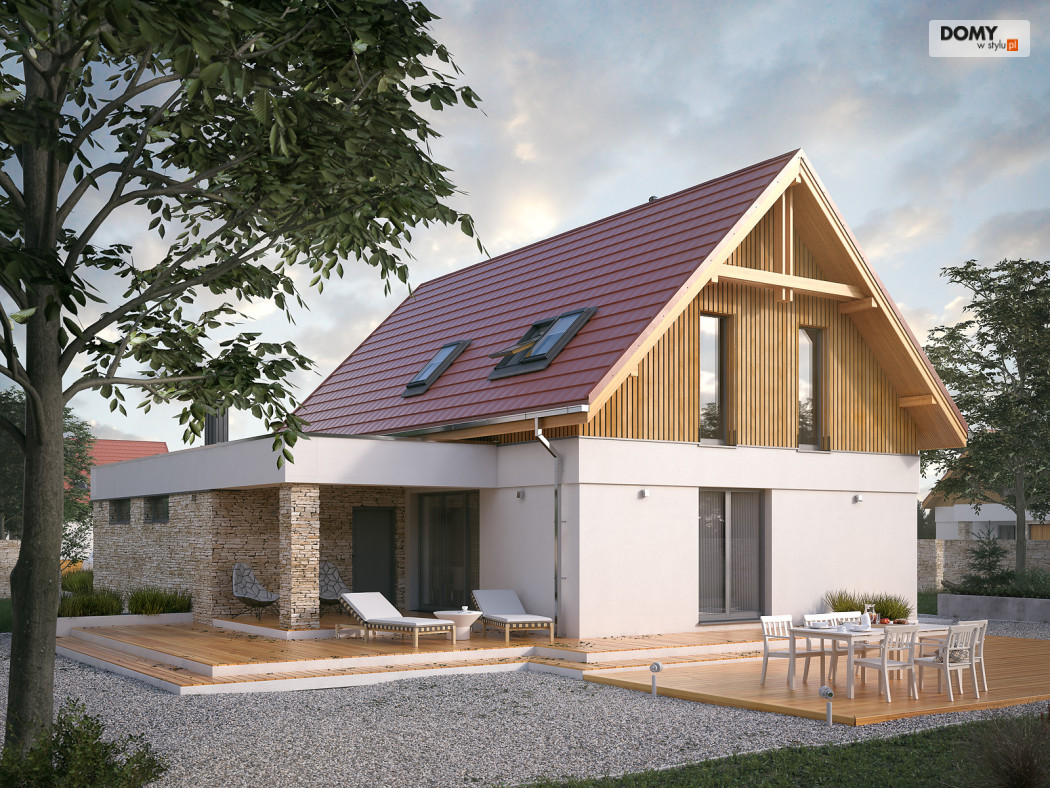 Dom przeznaczony jest dla 4 osobowej rodziny. Projekt powstał w oparciu o pierwszą wersję Antary. Bryła budynku zyskała tradycyjne elementy w postaci dachu z okapami oraz elewacji częściowo wykończonej drewnianą szalówką. Aby podkreślić charakter domu elewacje części garażowej wykończona została kamieniem. Niewątpliwym atutem domu jest duża otwarta przestrzeń w części dziennej dająca duże możliwości aranżacyjne wnętrza. Spędzanie wolnego czasu w letnie nawet deszczowe dni umili duży zadaszony taras. Dodatkowym aspektem podkreślającym wygodę użytkowania domu jest podręczny schowek pod schodami na parterze oraz wydzielona pralnia i garderoba na poddaszu.