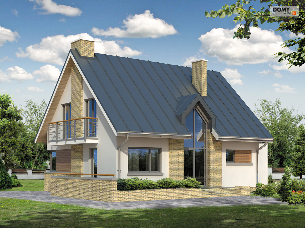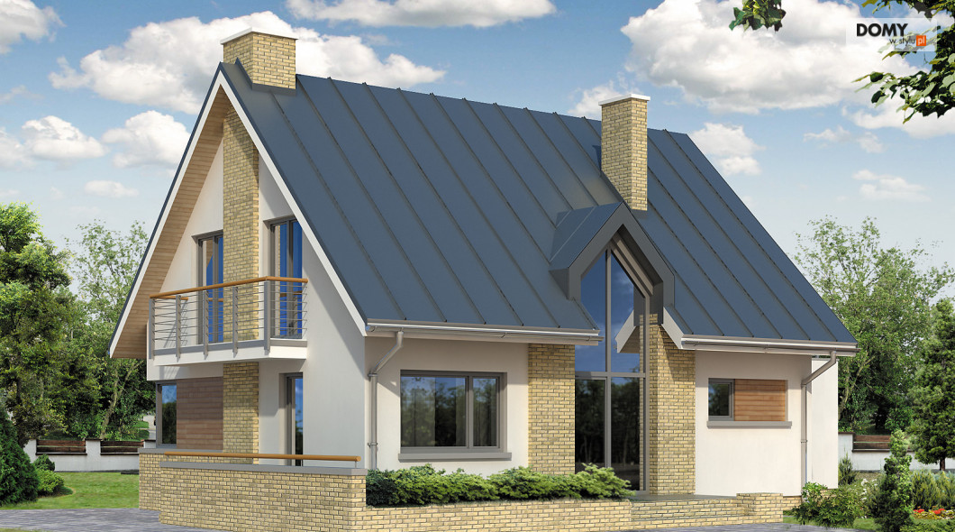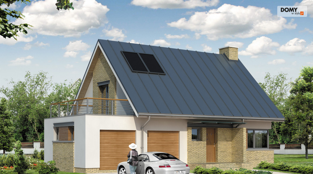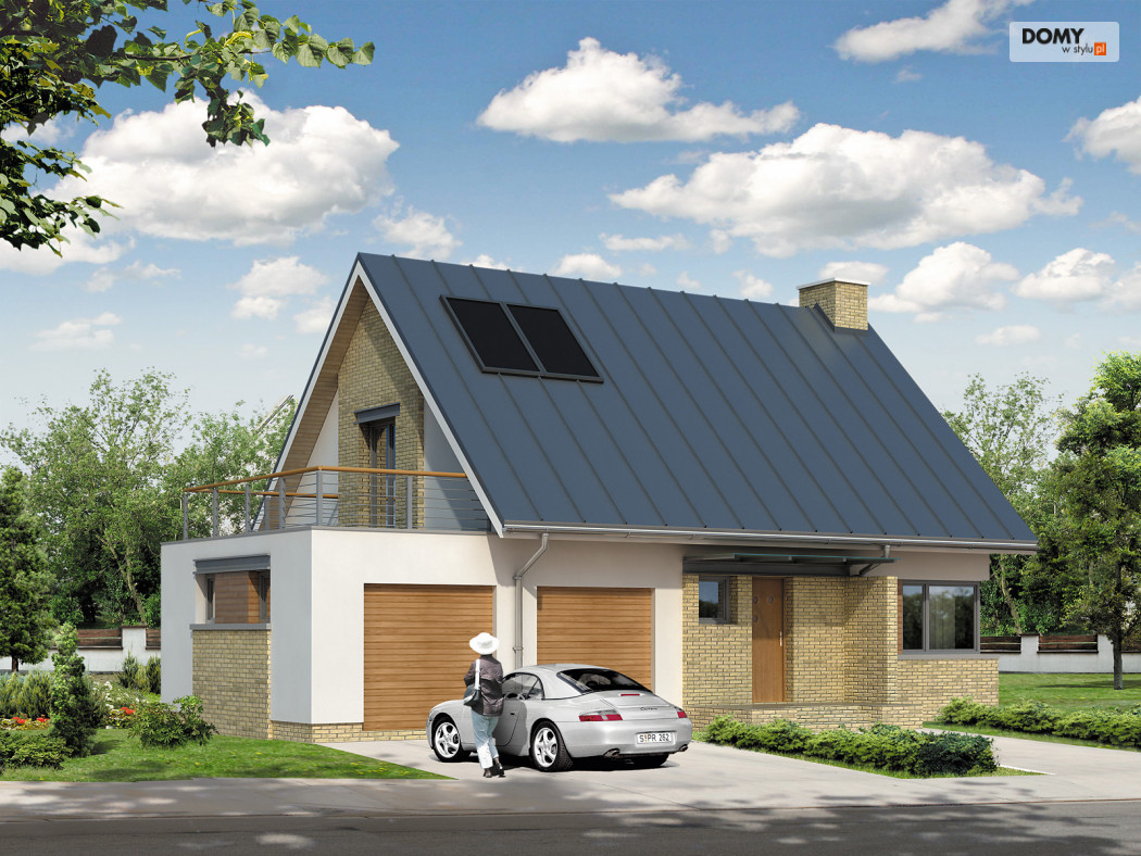 Mały dom jednorodzinny o prostej bryle i współczesnym charakterze. Przeznaczony dla 4 – 5-osobowej rodziny. Przestronne wnętrze z antresolą i przeszkleniem od strony ogrodu czyni go bardzo atrakcyjnym i funkcjonalnym. Dwustanowiskowy garaż. Taras nad garażem.