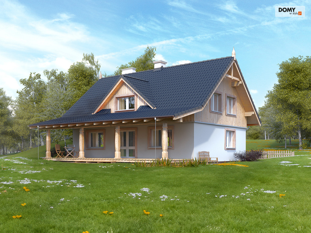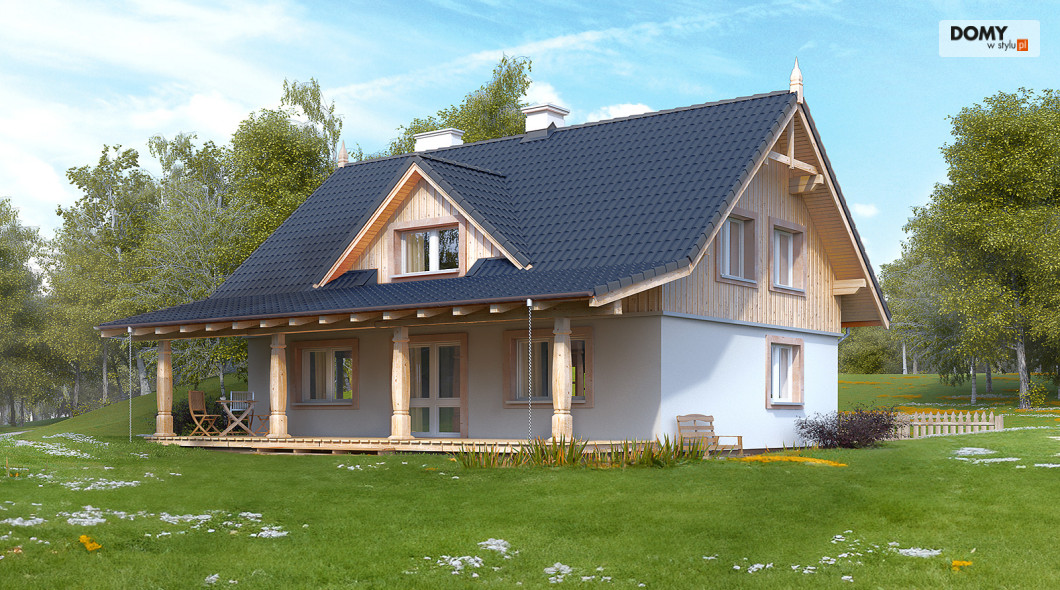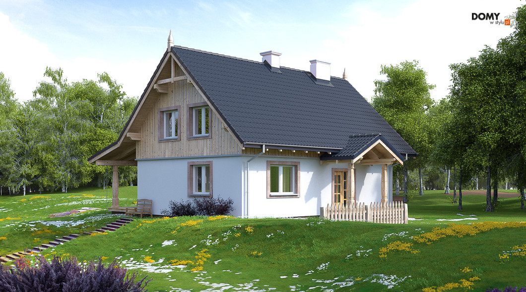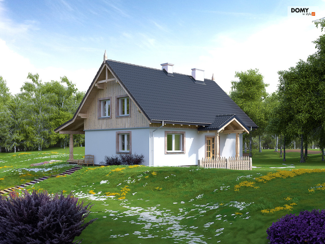 Klasyczny dom letniskowy przeznaczony dla 3 - 4-osobowej rodziny. Na parterze zaprojektowano duży, otwarty salon,kuchnię, wc oraz dodatkowy pokój. Najważniejszym miejscem w domku letniskowym jest duży zadaszony taras, który będzie doskonałym miejscem popołudniowych biesiad. Na poddaszu zaprojektowano trzy duże sypialnie i przestronną łazienkę.