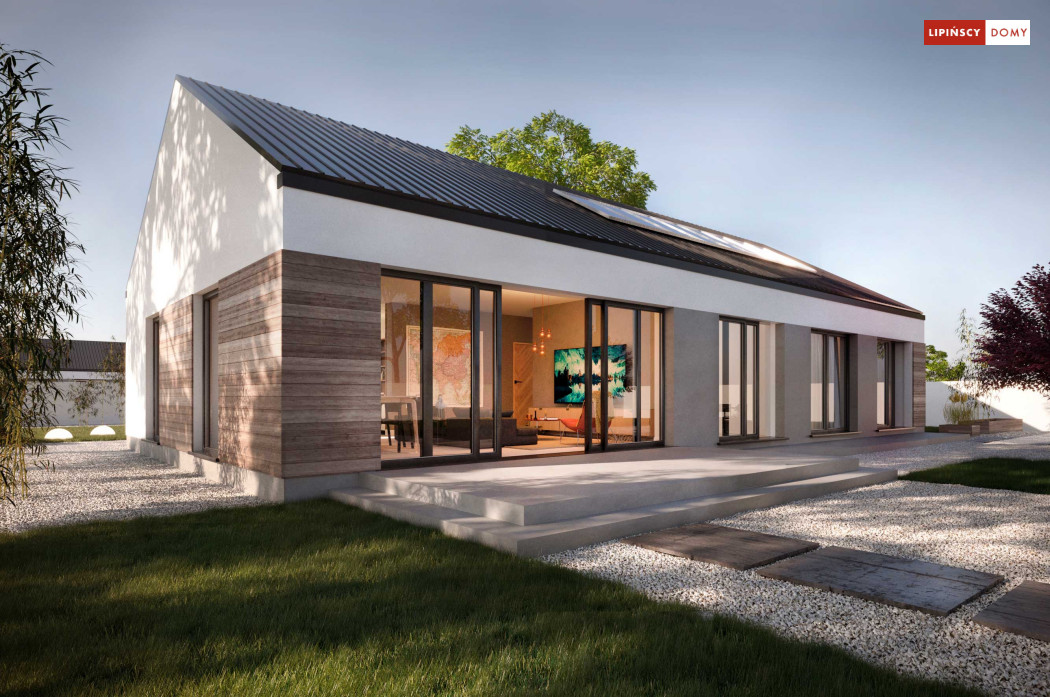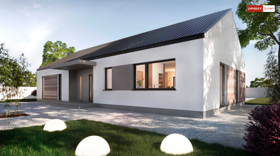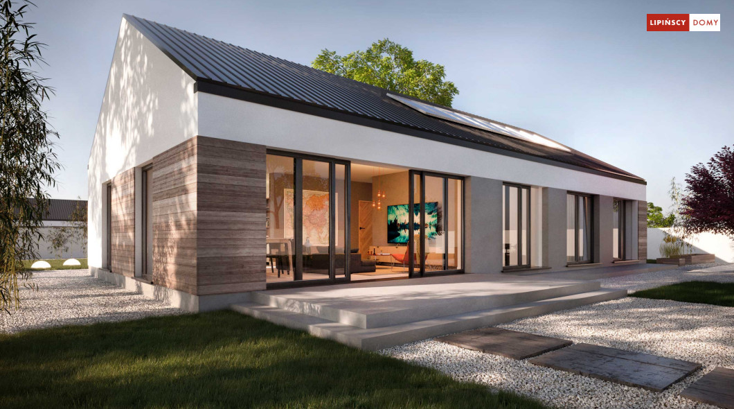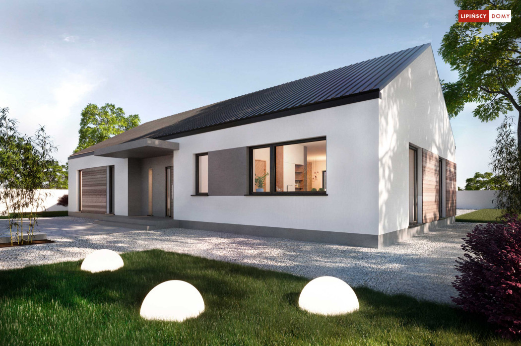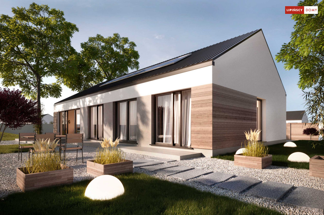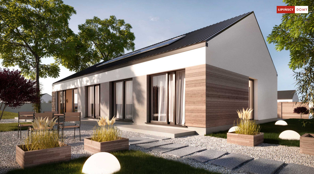 Projekt nowoczesnego parterowego domu w stylu stodoły, który będzie niedrogi w realizacji, a zapewni wygodne mieszkanie rodzinie 2+2. Duże okna tarasowe zlokalizowane od strony południowej zapewnią maksymalną ilość światła słonecznego i spore zyski energetyczne w zimie oraz bezpośredni dostęp wszystkich pokoi do ogrodu. Otwarta strefa dzienna sprzyja spotkaniom rodzinnym i towarzyskim. Część prywatna mieści trzy sypialnie w tym Master Bedroom i wspólną łazienkę. Funkcję domu uzupełniają: pralnia i pomieszczenie gospodarcze. W projekcie przewidziano ogrzewanie pompą ciepła.