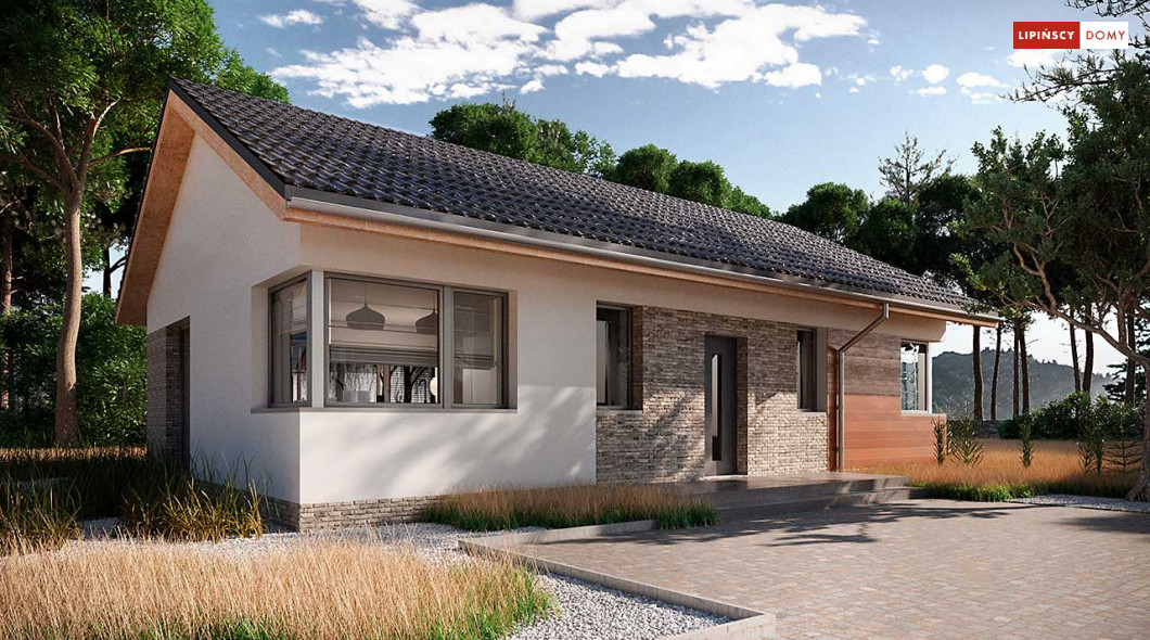Ekonomiczny projekt domu Isera, w którym znajdziesz nieskomplikowane rozwiązania, będzie tani zarówno w budowie, jak i w eksploatacji. Mimo niewielkiej powierzchni wprowadzono tu podział na strefę dzienną z salonem i nieco wydzieloną kuchnią oraz strefę nocną z łazienką i dwiema sypialniami. Narożne okna od frontu dodają bryle nietuzinkowego charakteru. Isera to wygodny dom dla niewielkiej rodziny, ale też idealny dla singla. W projekcie przewidziano ogrzewanie pompą ciepła.