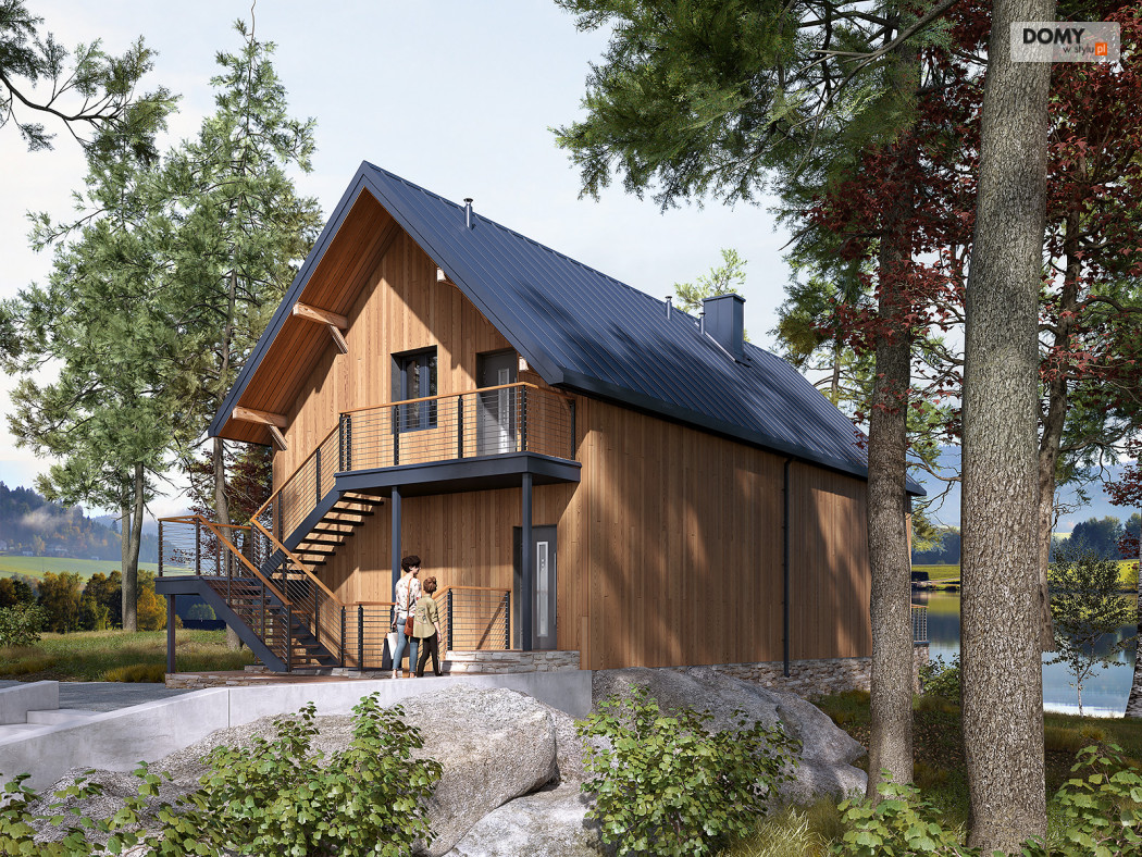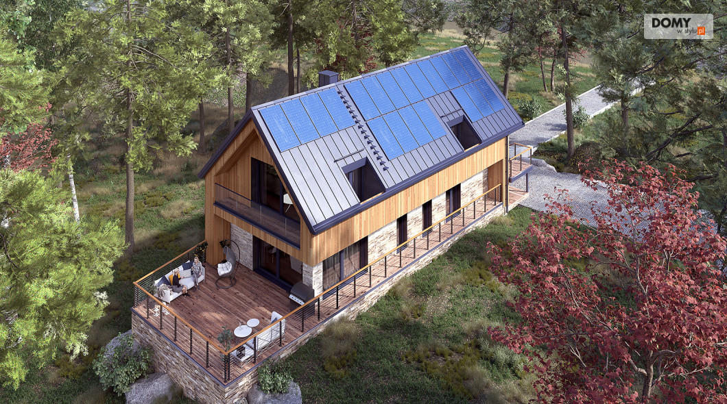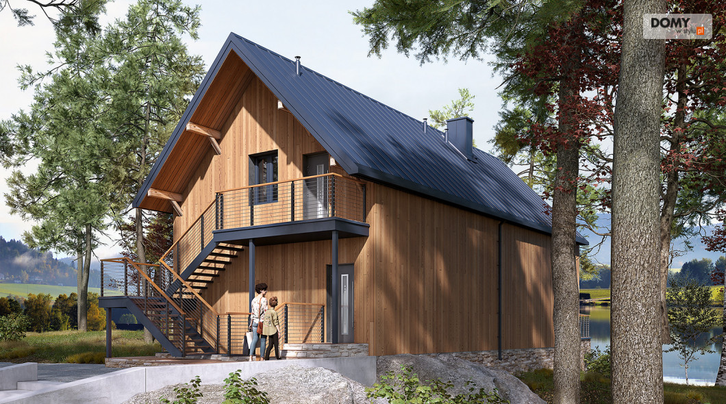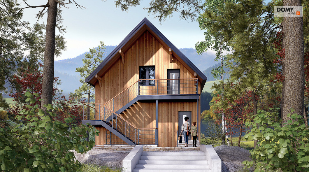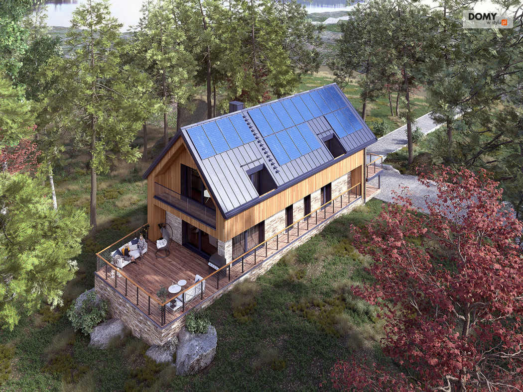 AGREST to projekt domu z użytkowym poddaszem, w którym pojawiły się mieszkania pod wynajem. Nowoczesna bryła budynku została zaprojektowana na rzucie prostokąta i przykryta dwuspadowym dachem. Na elewacji pojawiła się drewniana szalówka oraz płyty elewacyjne imitujące kamień. Parter stanowi mieszkanie właścicieli domu. Gospodarze do dyspozycji mają dwie wygodne sypialnie, zamknięta kuchnie oraz część dzienną z salonem i jadalnią. Niewątpliwa zaletą części dziennej domu są panoramiczne przeszklenia oraz kominek. Poddasze zostało zaprojektowanie pod wynajem. Lokatorzy mają osobne wejście, do którego prowadzą zewnętrzne schody. W tej części domu pojawiły się dwie sypialnie, każda z prywatną łazienka oraz wspólna kuchnia. Dużą zaletą domu jest część rekreacyjna ulokowana w piwnicy. Zaprojektowano tu saunę, przy której pojawiła się łazienka, siłownię oraz bilard. Układ funkcjonalny piwnicy dopełnia kotłownia, w której pojawiła się pompa ciepła.