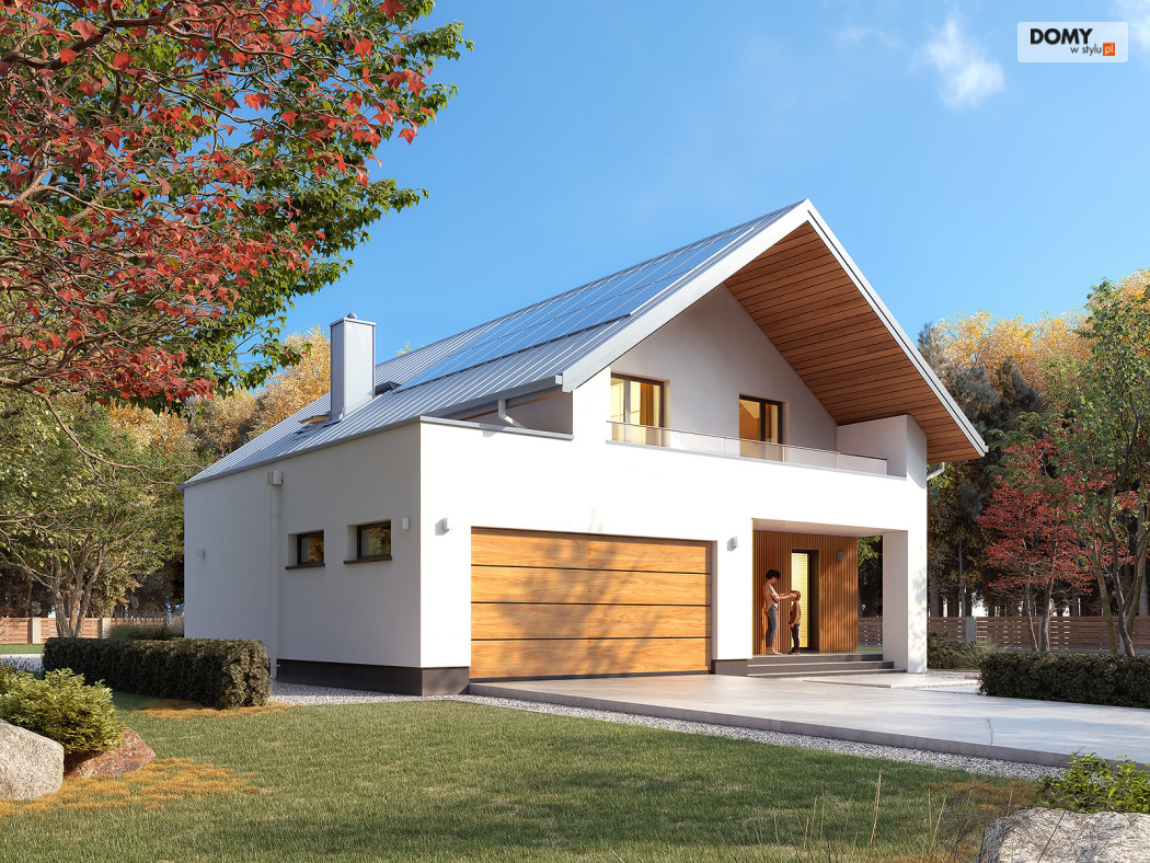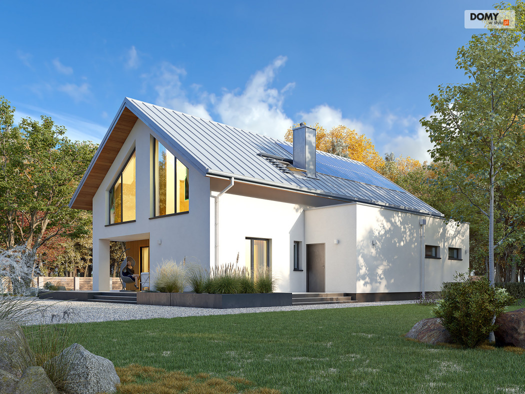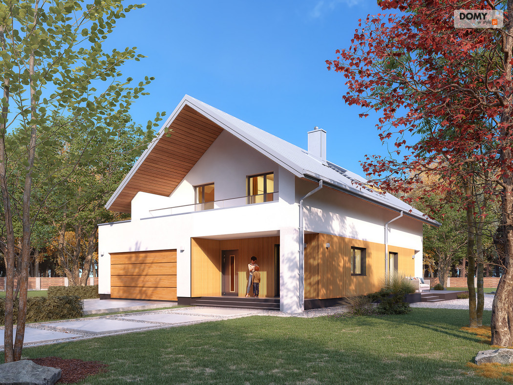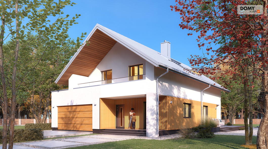 Marcepan to projekt domu z użytkowym poddaszem o powierzchni 156 m2. Projekt posiada ciekawą bryłę wykończoną szalówką i blachą. Mieszkańcy do dyspozycji maja dwustanowiskowy garaż. Na parterze zaprojektowana otwartą część dzienną. Odnaleźć tu można salon, dużą jadalnię oraz kuchnię, przy której doprojektowano spiżarnię. Niewątpliwym atutem projektu jest dodatkowy pokój na parterze, który idealnie sprawdzi się jako gabinet do pracy lub pokój dla gości. Poddasze stanowi prywatną część mieszkańców. Zaprojektowano tu trzy sypialnie, z czego jedna posiada prywatną garderobę. Układ funkcjonalny poddasza dopełnia rodzinna łazienka oraz niewielka pralnia.