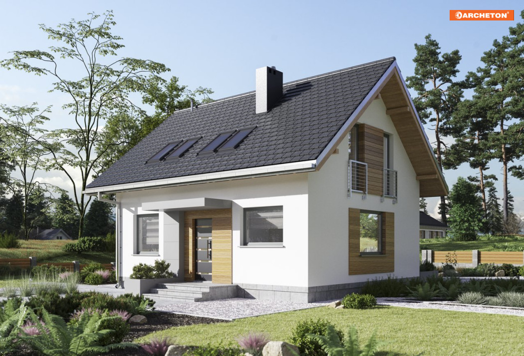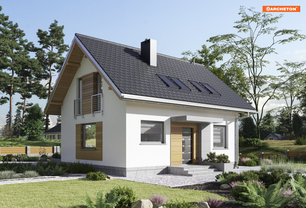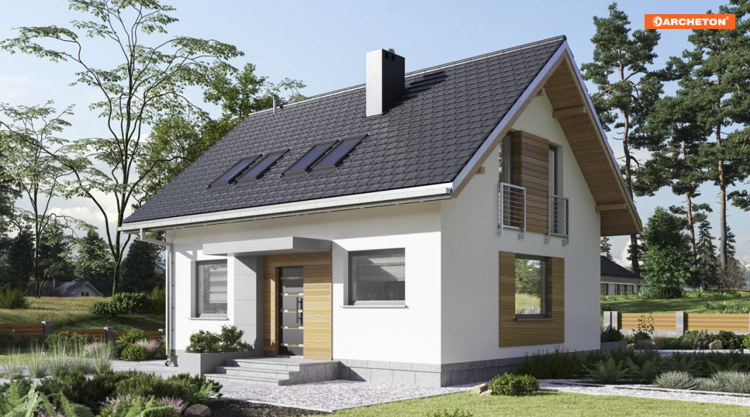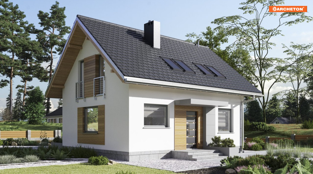 Domy bez pozwolenia do 70m2 zabudowy cieszą się dużym zainteresowaniem indywidualnych inwestorów. Ciekawą propozycją wśród projektów z użytkowym poddaszem jest Malik Sol. Plan domu został oparty na rzucie prostokąta. W centralnym puncie salonu zaplanowano kominek, który łączy strefę dzienną z otwartą kuchnią. Po przeciwnej stronie holu znajduje się dodatkowy pokój, pomieszczenie gospodarcze oraz schody prowadzące na użytkowe poddasze. Oprócz trzech przestronnych sypialni uwagę przykuwa jasna łazienka. W pomieszczeniach zastosowano nowe, innowacyjne rozwiązanie VELUX DUO - łączące dwa okna obok siebie. Piękny efekt końcowy sprawia wrażenie, że okna tworzą jedną całość. Taki system montażu zapewnia więcej światła dziennego i poczucie większej przestrzeni oraz wpływa bezpośrednio na oszczędzanie energii elektrycznej.