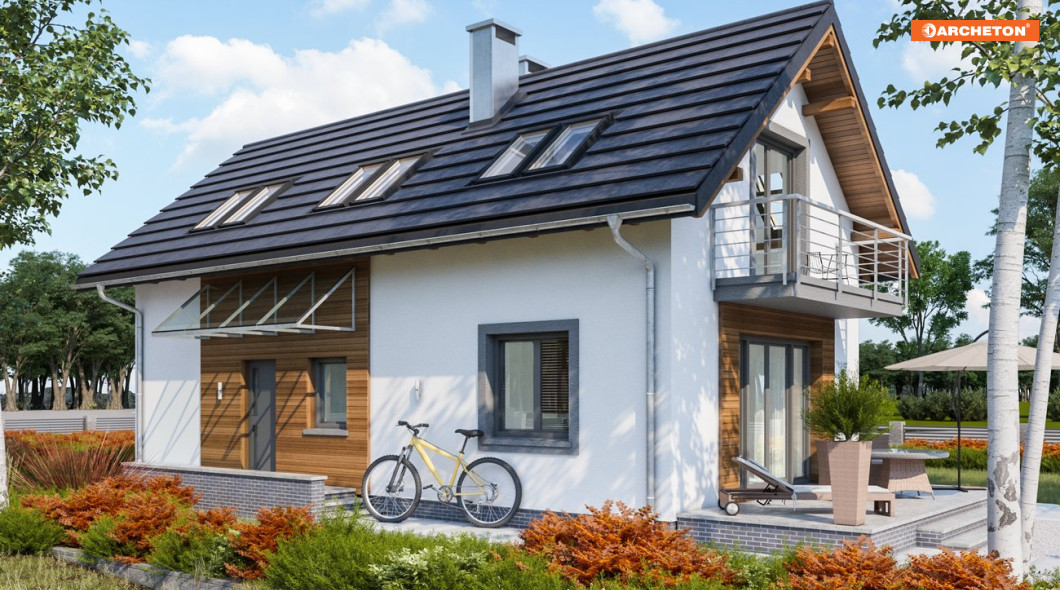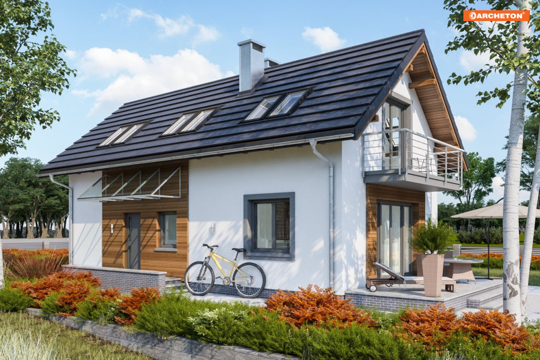 Szukając domu na wąską działkę warto zwrócić uwagę na Longinus Sto Sol. Projekt został dopasowany do działki o minimalnej szerokości 13,5m, zachowując przy tym pełną funkcjonalność Na parterze zaprojektowano pokój dzienny z wydzieloną jadalnią. Mimo niewielkiej powierzchni na dolnej kondygnacji znajduje się również dodatkowy pokój, który może zostać wykorzystany na przestronną sypialnie z garderobą lub miejsce do pracy. Poddasze zostało podzielone na dwie strefy - zespół głównej sypialni oraz dwa, mniejsze pokoje. Dzięki zastosowaniu nowego sposobu montażu okien dachowych VELUX DUO domownicy mogą cieszyć się jeszcze większą ilością światła dziennego i panoramicznym widokiem. Teraz dwa okna o takim samym rozmiarze można zainstalować obok siebie bez krokwi pomiędzy nimi. Niezwykle eleganckie połączenie elementów sprawia wrażenie, że tworzą one jedną całość. Nowe rozwiązanie jest łatwe do zamówienia i montażu, warto podkreślić że niesie ze sobą również pozytywny efekt - nie jest konieczne doświetlanie pomieszczenia światłem elektrycznym.