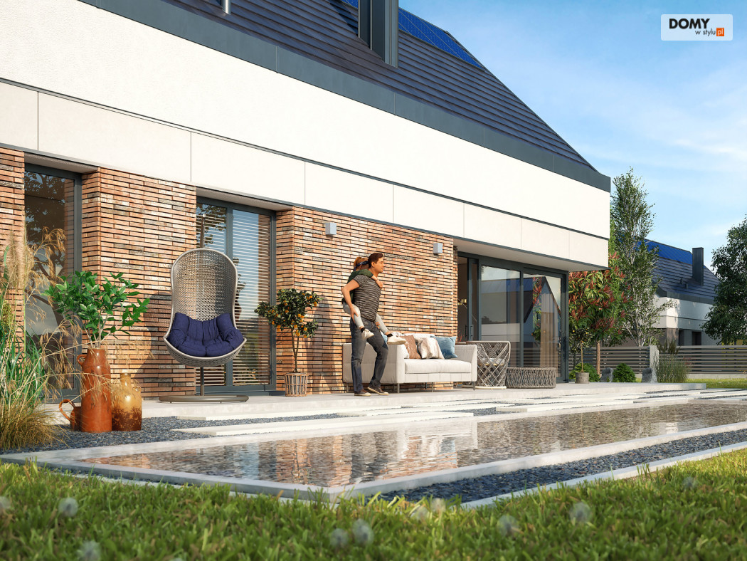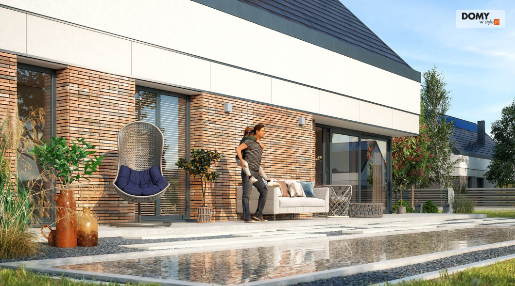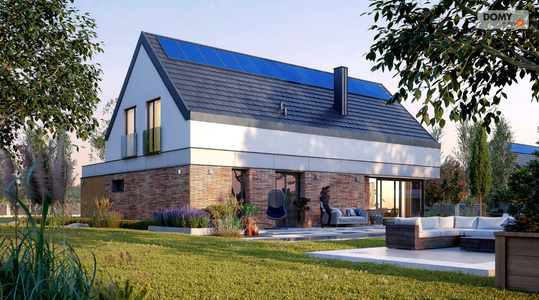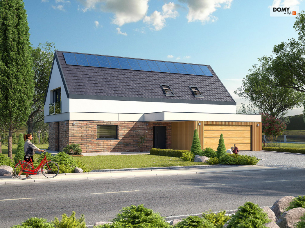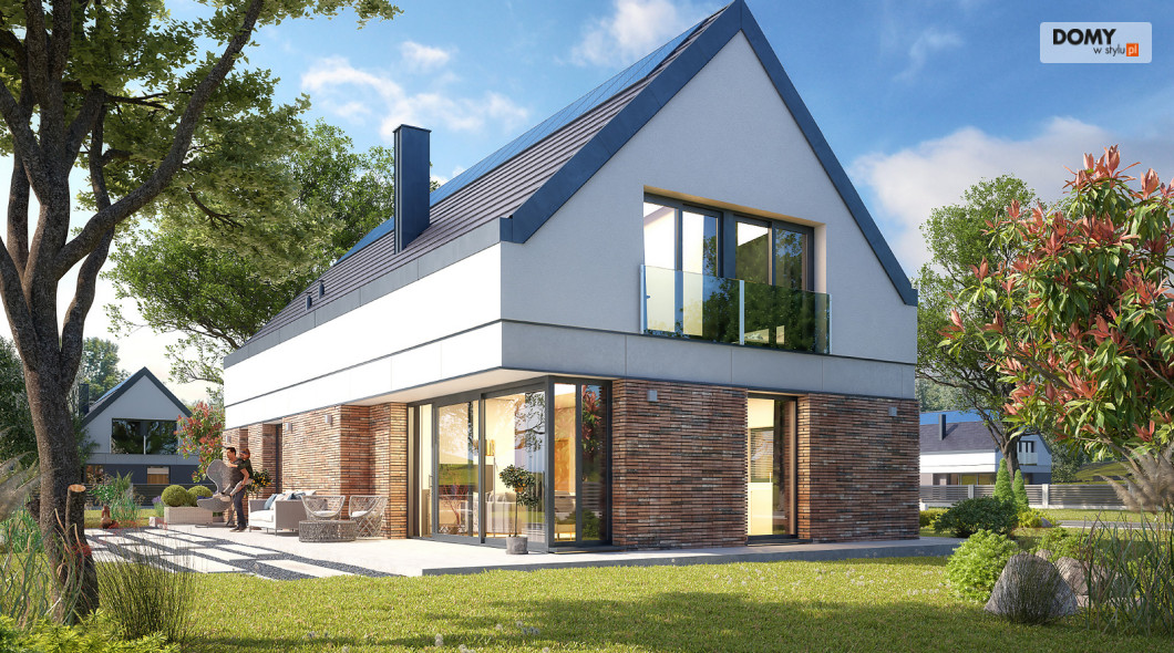DUO to projekt domu z użytkowym poddaszem zaprojektowany dla 3-pokoleniowej rodziny. Na powierzchni użytkowej 159 m2 pojawiło się wszystko czego może potrzebować współczesna rodzina. Projekt posiada otwartą część dzienną, w której pojawił się salon, jadalnia oraz otwarta kuchnia. W kuchni wygospodarowano miejsce na wyspę kuchenną, a obok pojawiła się spiżarnia. Spiżarnia stanowi jednocześnie łącznik pomiędzy kuchnia, a wiatrołapem co na pewno ułatwi wnoszenie zakupów. Na parterze zaprojektowano również dodatkowy pokój dla seniorów, czyli tzw. senioratkę. Seniorzy do dyspozycji mają również łazienkę, którą dostosowano do potrzeb osób niepełnosprawnych. Poddasze kryje w sobie cztery wygodne sypialnie oraz rodzinną łazienkę. Dwie sypialnie posiadają prywatną garderobę. Układ funkcjonalny poddasza dopełnia pralnia, w której oprócz prali i suszarki zaproponowano praktyczne półki. Projekt posiada dwustanowiskowy garaż.