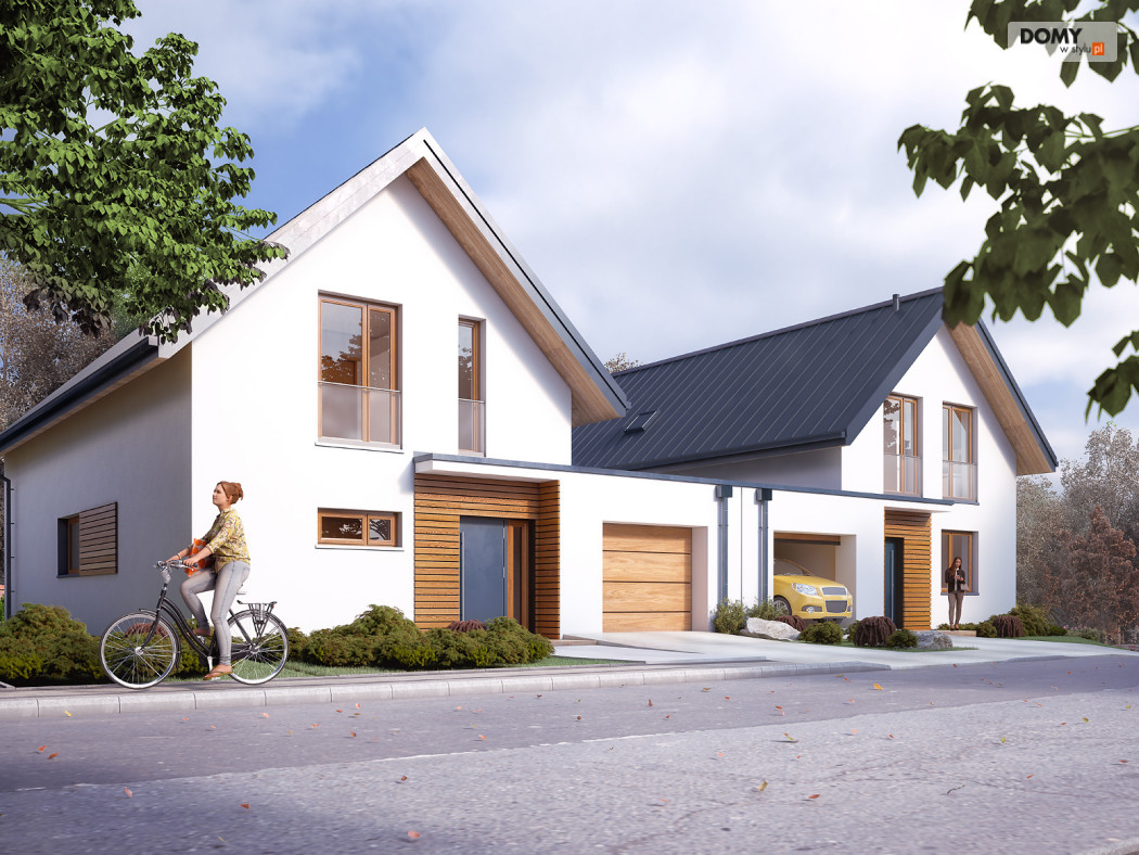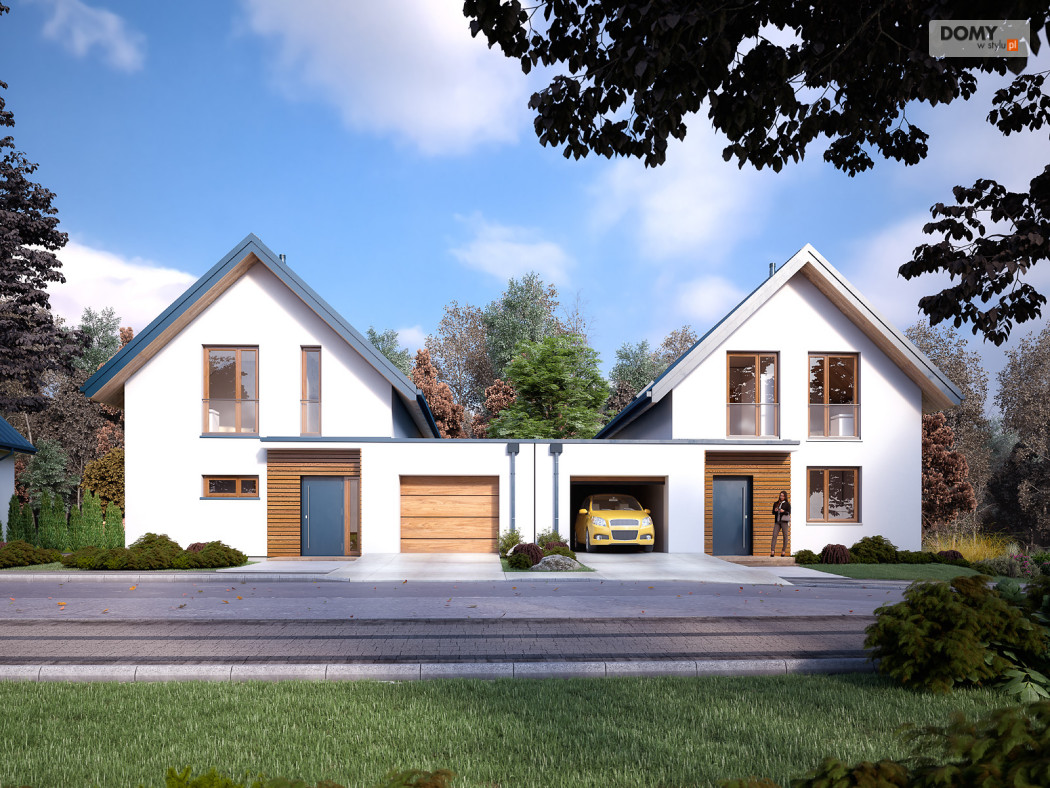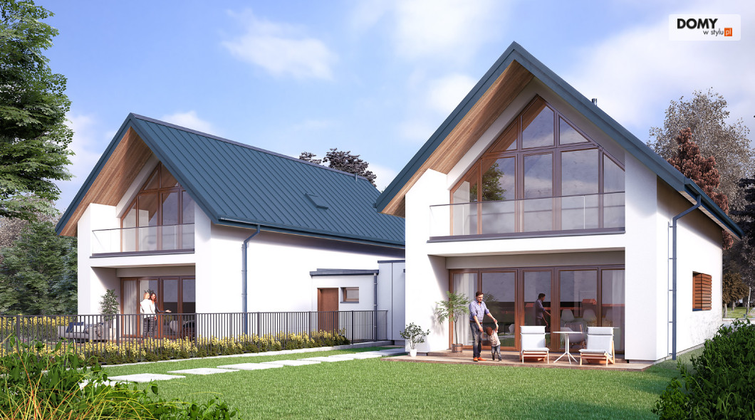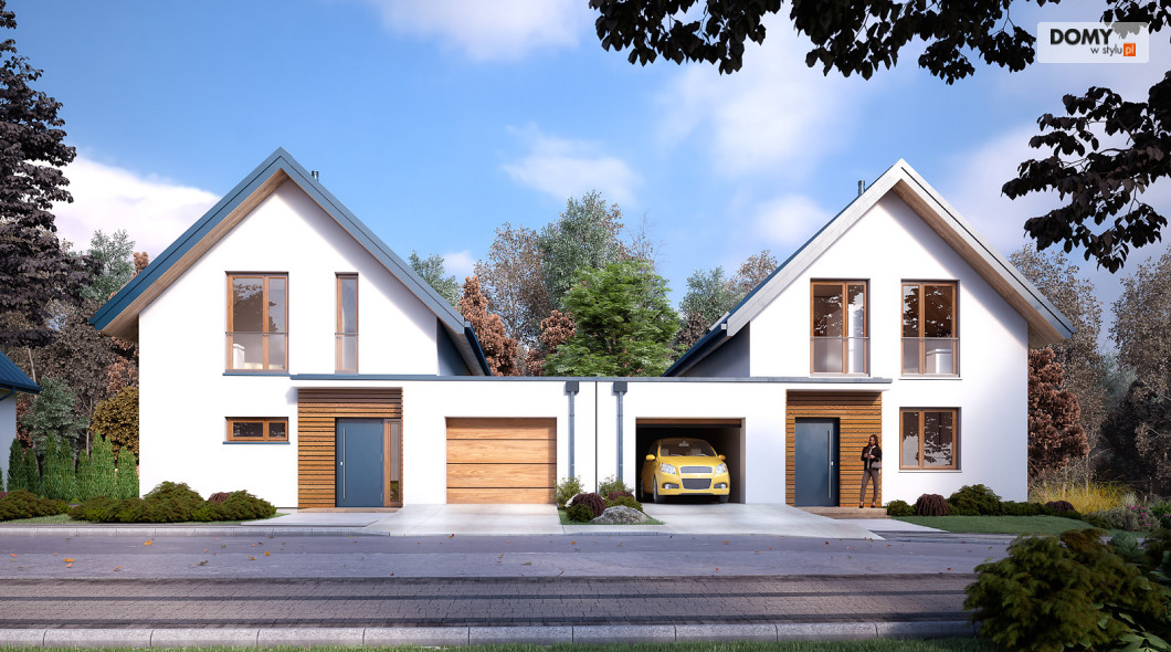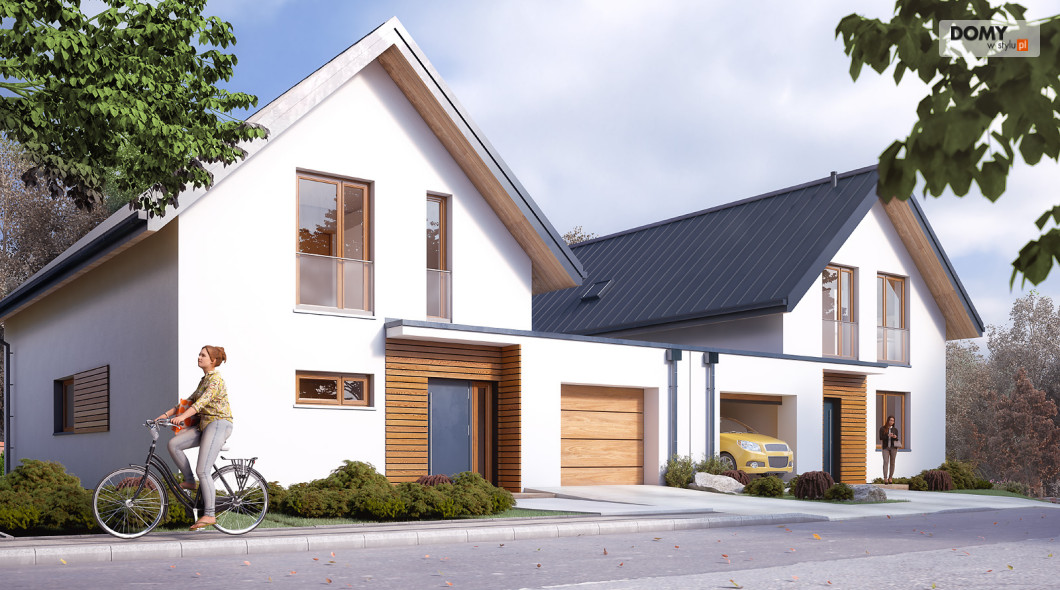 ASPEN to projekt domu w zabudowie bliźniaczej posiadający dwa różne segmenty. Projekt cechuje nowoczesne wykończenie oraz świetnie przemyślany układ funkcjonalny. Powierzchnia użytkowa obu segmentów jest bardzo podobna i wynosi ok. 150 m2. Segment lewy na parterze posiada otwartą część dzienną z salonem, jadalnią i kuchnią, pomieszczenie gospodarcze z miejscem na pompę ciepła oraz niewielką łazienkę. Na poddaszu zaprojektowano dwie sypialnie oraz rodzinną łazienkę. W segmencie prawym na parterze odnaleźć można otwartą część dzienną z salonem, jadalnią i kuchnią oraz dodatkowy pokój idealny do pracy i nauki. Część nocna to trzy wygodne sypialnie oraz ogólnodostępna łazienka.