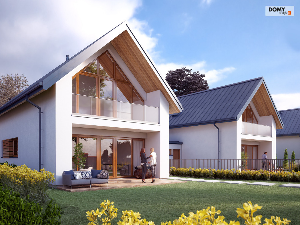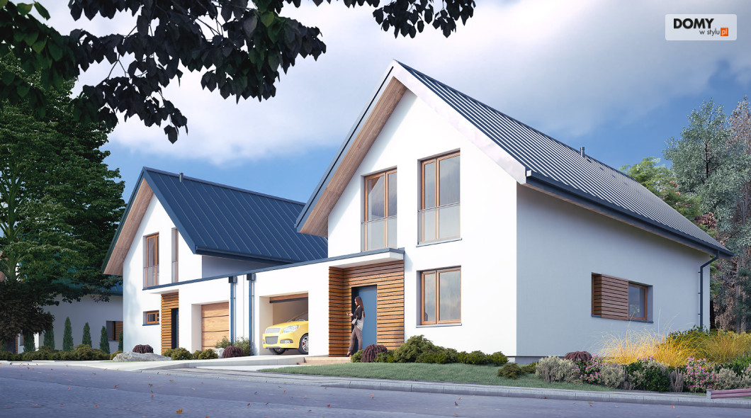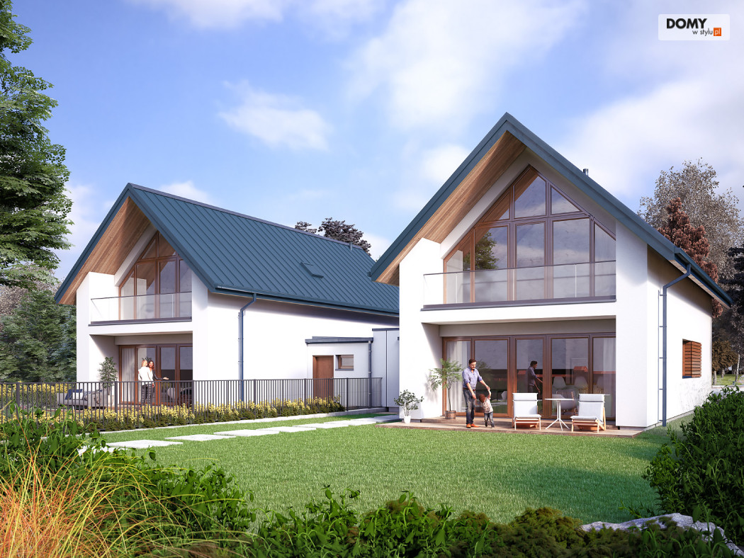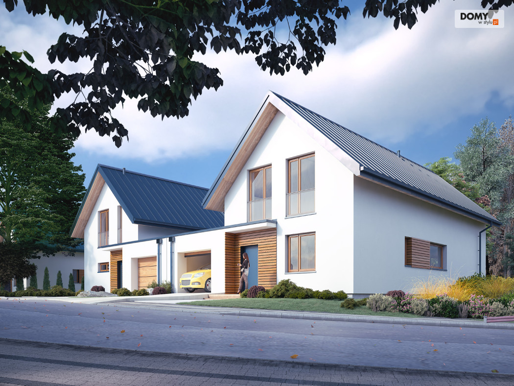 ASPEN to projekt domu w zabudowie bliźniaczej posiadający dwa różne segmenty. Projekt cechuje nowoczesne wykończenie oraz świetnie przemyślany układ funkcjonalny. Powierzchnia użytkowa obu segmentów jest bardzo podobna i wynosi ok. 150 m2. Segment lewy na parterze posiada otwartą część dzienną z salonem, jadalnią i kuchnią, pomieszczenie gospodarcze z miejscem na pompę ciepła oraz niewielką łazienkę. Na poddaszu zaprojektowano dwie sypialnie oraz rodzinną łazienkę. W segmencie prawym na parterze odnaleźć można otwartą część dzienną z salonem, jadalnią i kuchnią oraz dodatkowy pokój idealny do pracy i nauki. Część nocna to trzy wygodne sypialnie oraz ogólnodostępna łazienka.