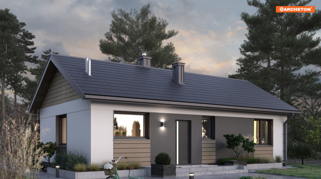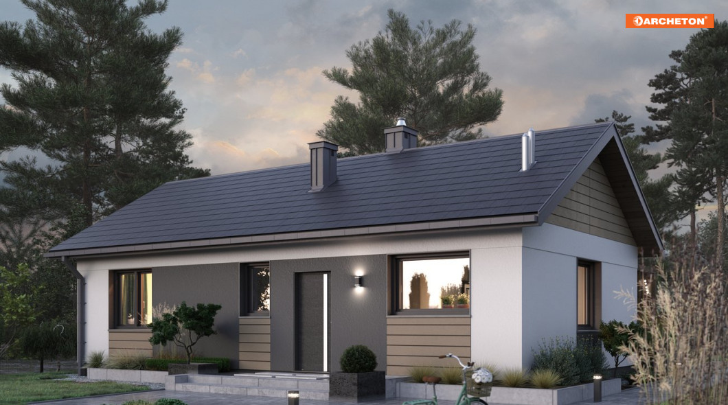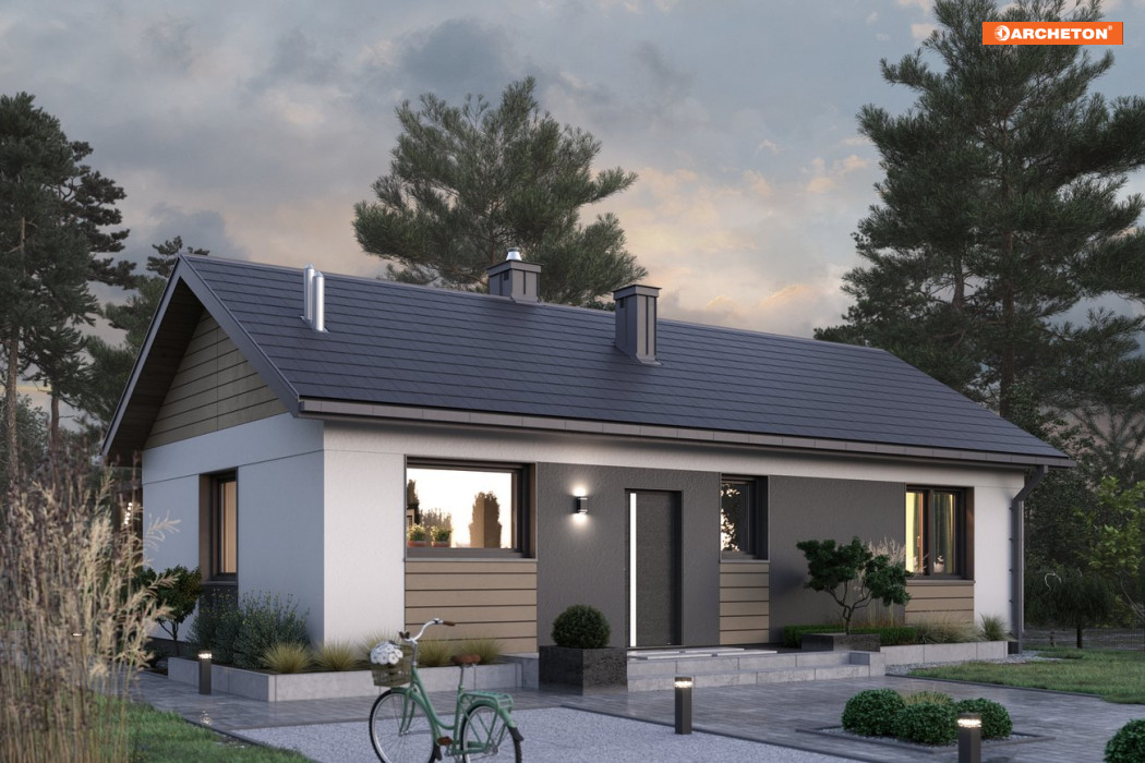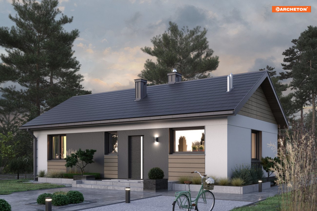 Prostota, umiar, naturalność – w tych słowach można zamknąć cechy charakterystyczne domu parterowego bez garażu Martin Beta Max. Trzy pokoje, przestronny salon połączony z kuchnią, łazienka, hol i wiatrołap znajdują się na jednej kondygnacji, oferując łącznie 66.9 m² powierzchni użytkowej.