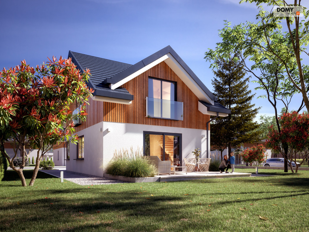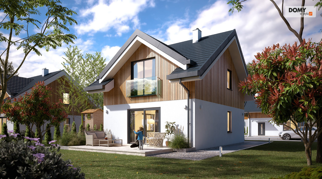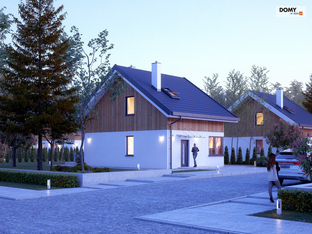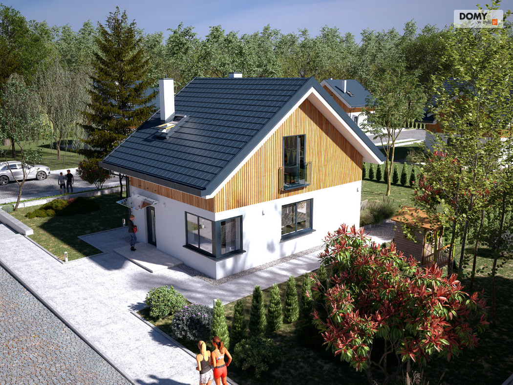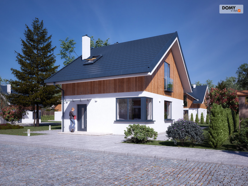 Kote to projekt domu z użytkowym poddaszem o powierzchni użytkowej 94 m2. Projekt stworzono z myślą o 3-osobowej rodzinie. Na parterze zaprojektowano otwartą część dzienną z salonem i kuchnią. Przy kuchni pojawiła się funkcjonalna spiżarnia. Poddasze to prywatna przestrzeń mieszkańców. Zaprojektowano tu dwie wygodne sypialnie i ogólnodostępna łazienkę. Projekt utrzymany został nowoczesnym stylu. Projekt posiada powierzchnię zabudowy nie przekraczającą 70 m2, dlatego można go wybudować na zgłoszenie.