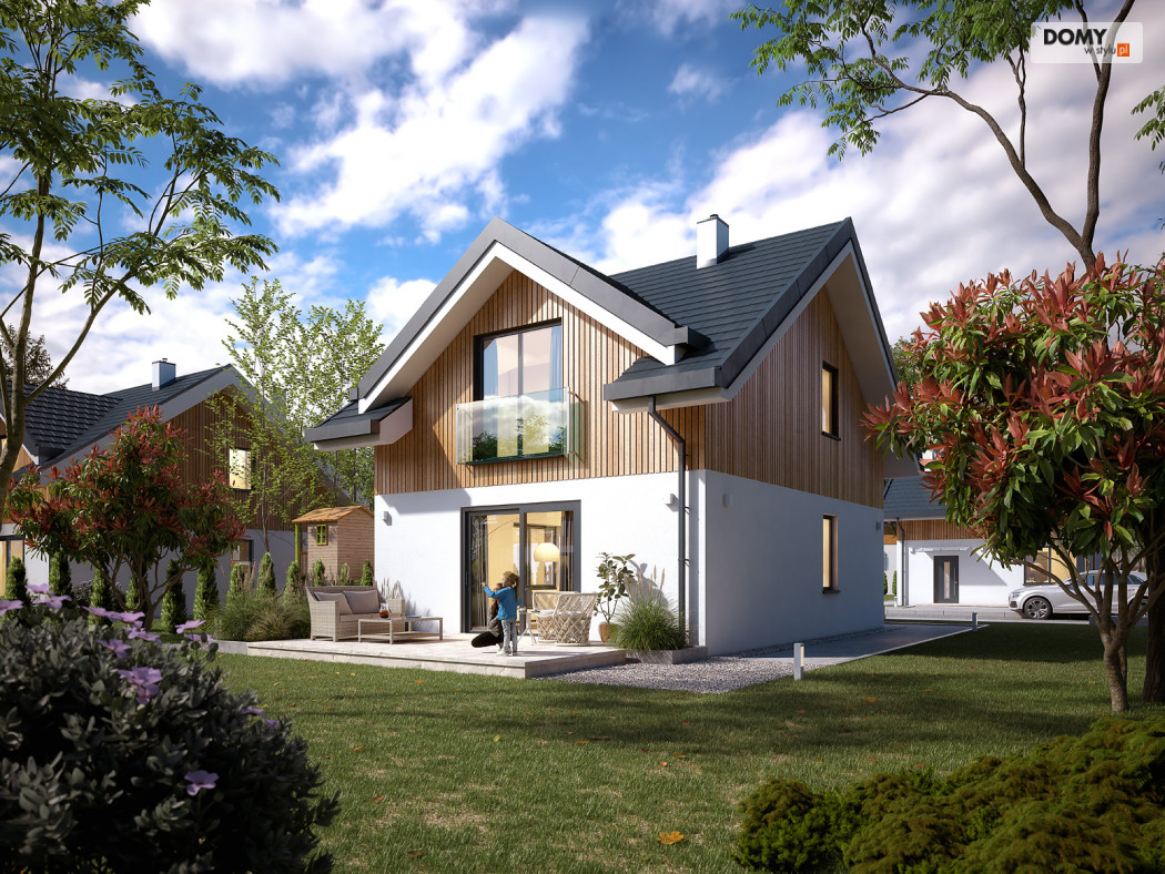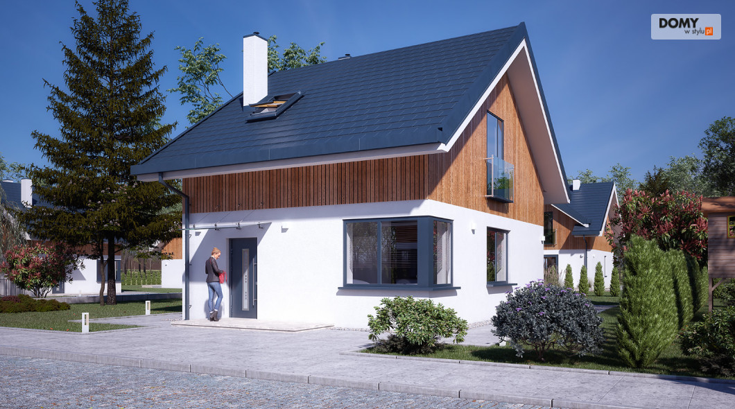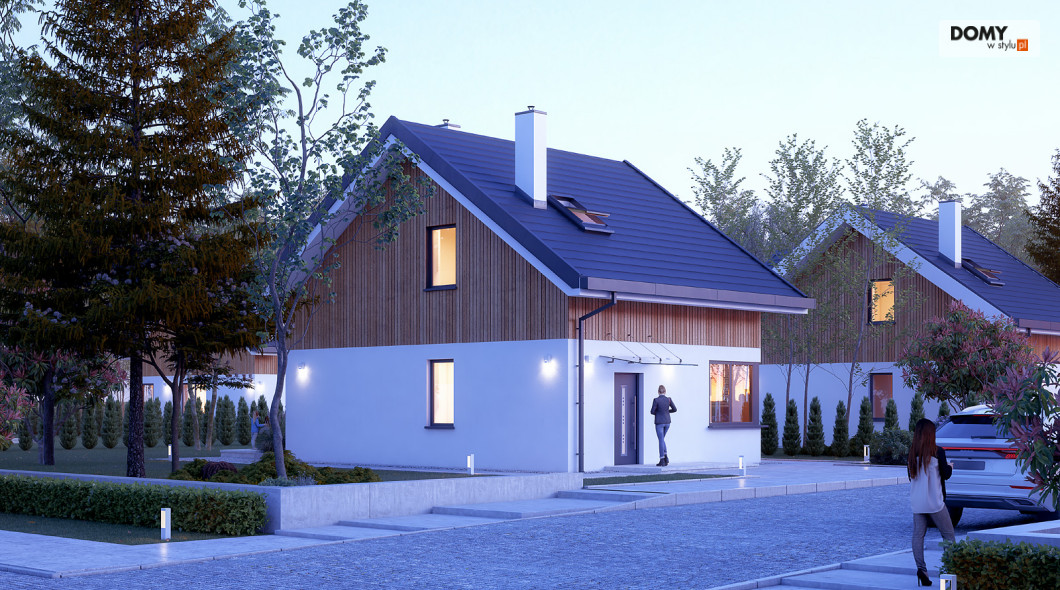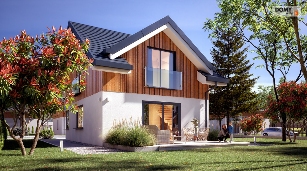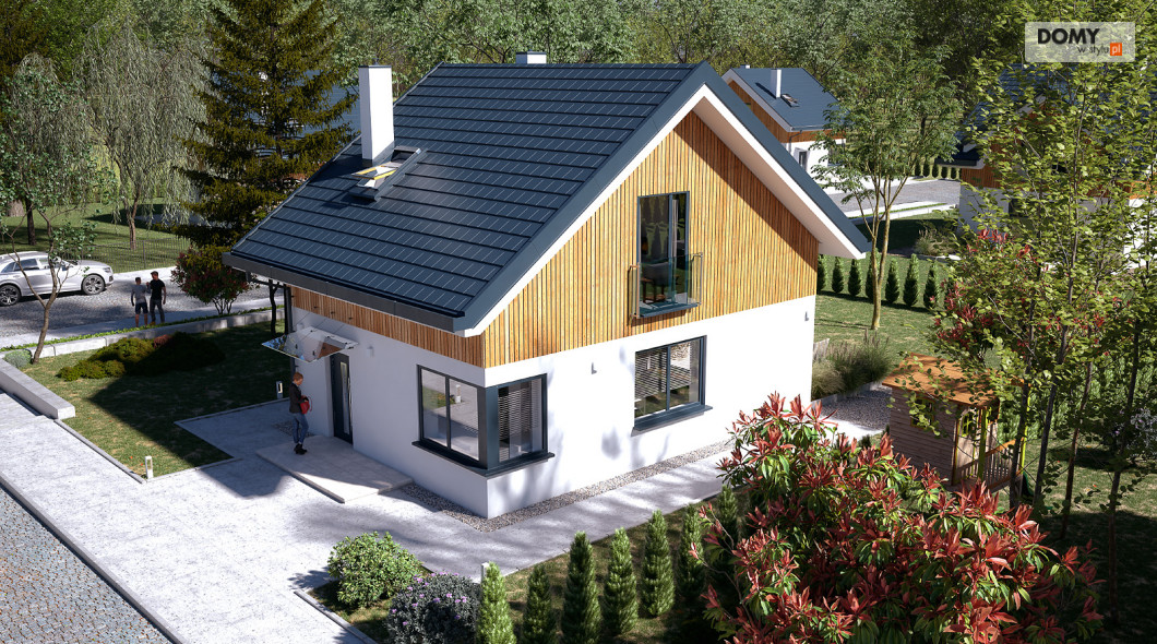 Kote to projekt domu z użytkowym poddaszem o powierzchni użytkowej 94 m2. Projekt stworzono z myślą o 3-osobowej rodzinie. Na parterze zaprojektowano otwartą część dzienną z salonem i kuchnią. Przy kuchni pojawiła się funkcjonalna spiżarnia. Poddasze to prywatna przestrzeń mieszkańców. Zaprojektowano tu dwie wygodne sypialnie i ogólnodostępna łazienkę. Projekt utrzymany został nowoczesnym stylu. Projekt posiada powierzchnię zabudowy nie przekraczającą 70 m2, dlatego można go wybudować na zgłoszenie.