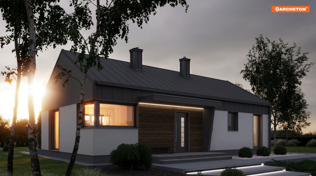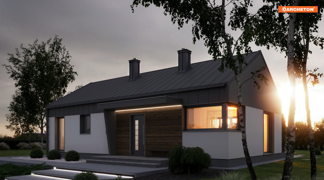 Dom z dachem bezokapowym Jaskier Alfa to synonim nowoczesnych rozwiązań w architekturze. Decyduje o tym prostota geometrycznych form, jakie dominują w tym zaprojektowanym na rzucie prostokąta budynku, jak również stonowana, elegancka kolorystyka.
