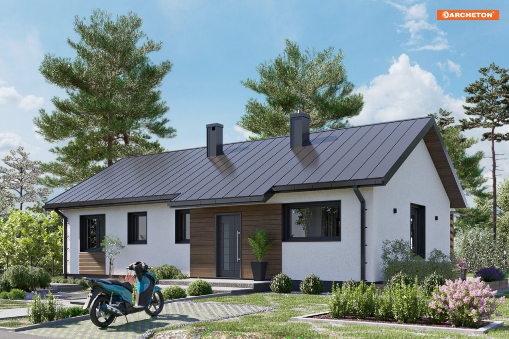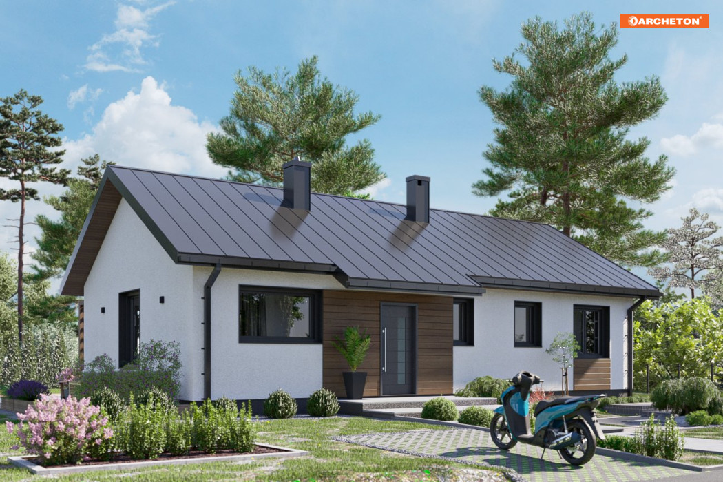 Jaskier Beta to dom parterowy z dachem dwuspadowym. Nowoczesny, wręcz minimalistyczny styl tego budynku, który przykuwa wzrok z zewnątrz, doskonale współgra z funkcjonalnym rozkładem pomieszczeń.