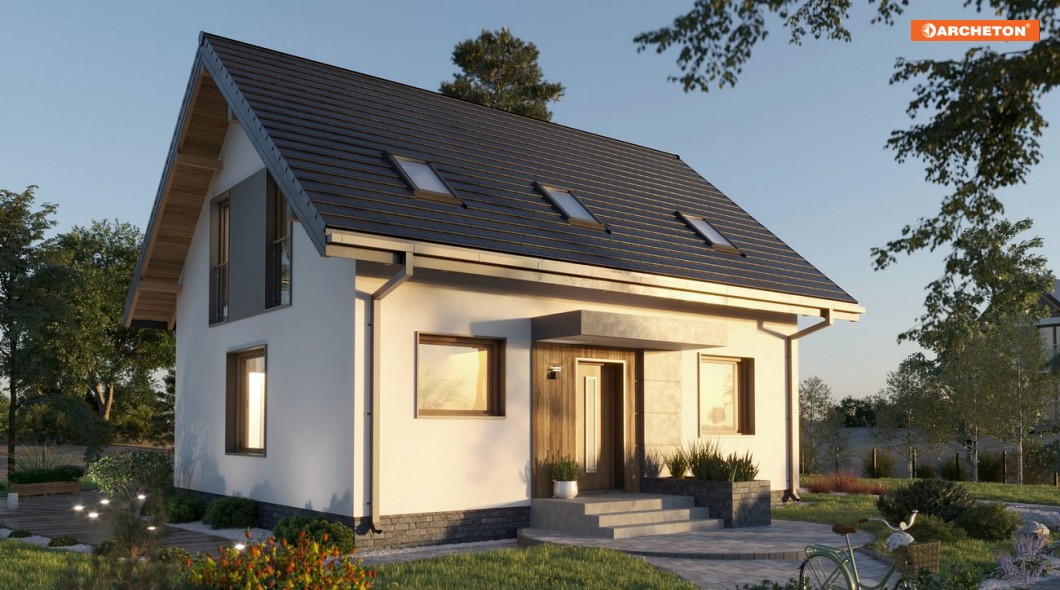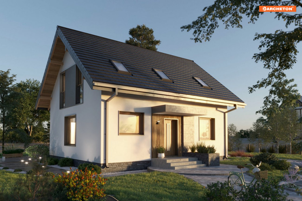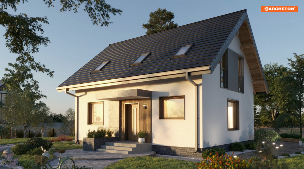 Na użytkowym poddaszu domu dla 5-osobowej rodziny znalazło się miejsce na trzy pokoje oraz na łazienkę – w sam raz dla młodszych domowników.