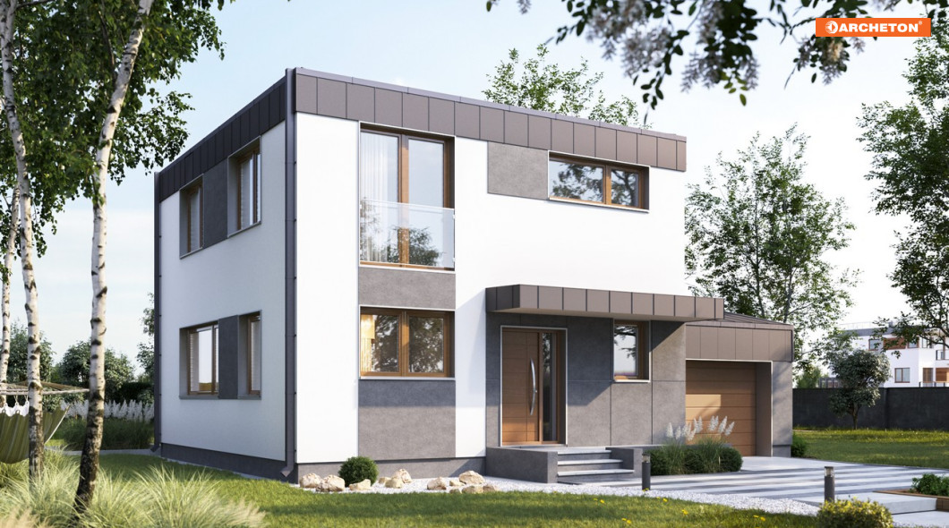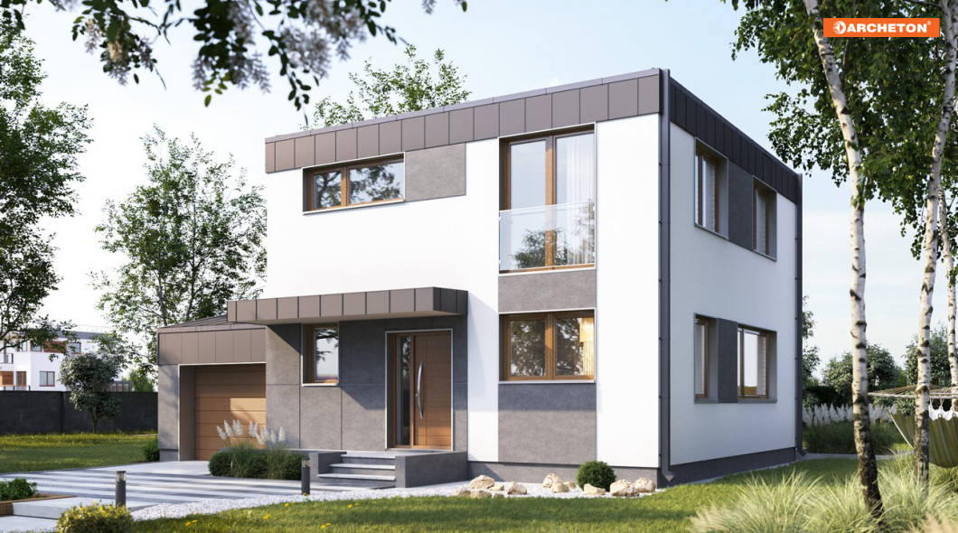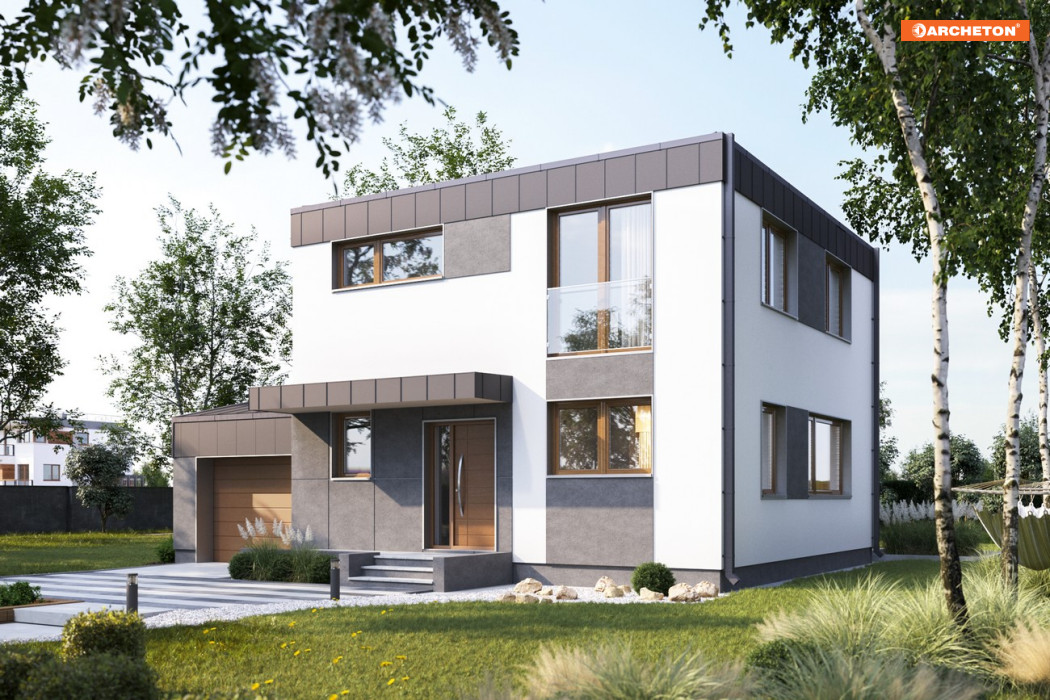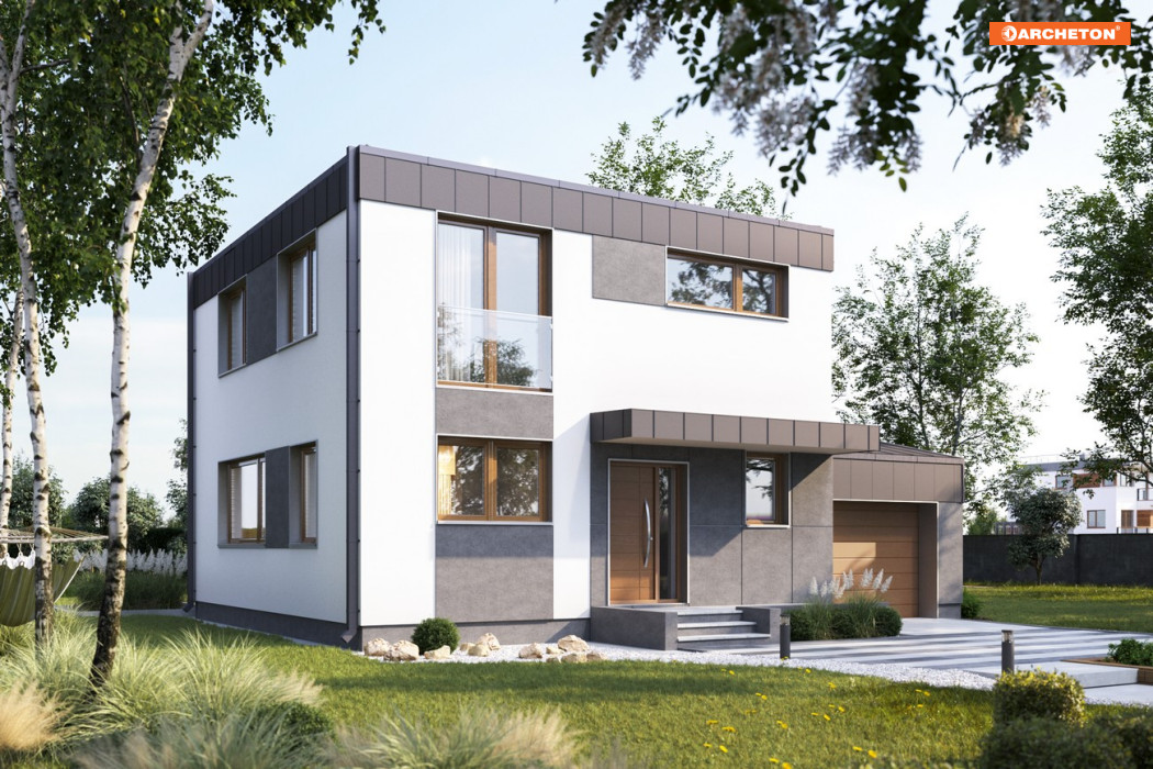 Topaz Nano to mały dom piętrowy z garażem w typie kostki, która w ostatnich latach wraca do łask w nowej odsłonie. Prosta, geometryczna forma tego budynku nadaje mu nowoczesnego stylu, oferując jednocześnie ogromną funkcjonalność.
