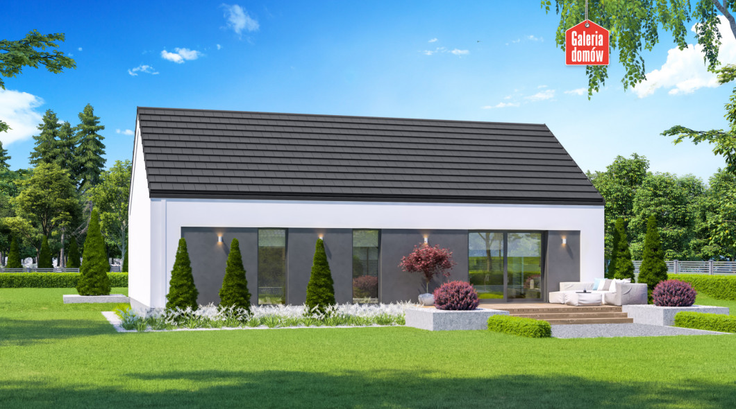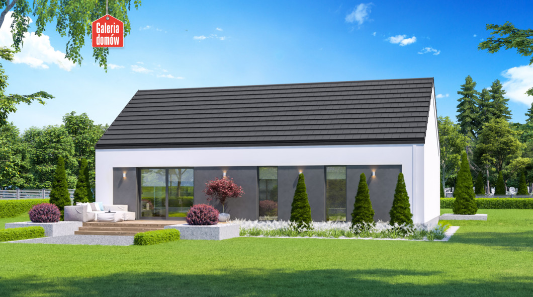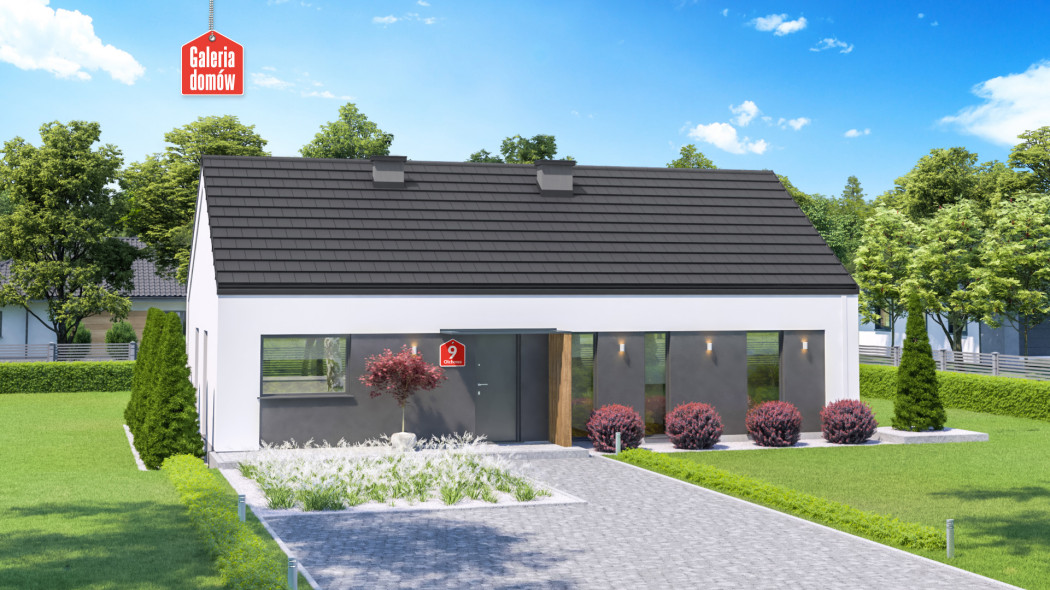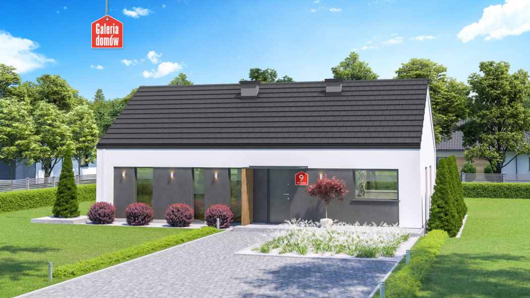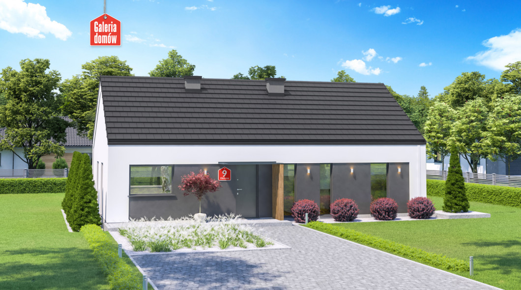 Projekt gotowy Dom przy Olchowej 9 to budynek jednorodzinny, parterowy o powierzchni użytkowej 85 m². Tani i prosty w realizacji, ekonomiczny w użytkowaniu. Wnętrze mieści 4 pokoje, otwartą kuchnię, kompletnie wyposażoną łazienkę, oraz kotłownię ze stanowiskiem na pralkę. Ogrzewanie podłogowe na gaz lub pompę ciepła. Projekt domu bez garażu, z dachem dwuspadowym o prostej konstrukcji i kalenicy równoległej do drogi. Nowoczesna stylistyka elewacji została osiągnięta dzięki minimalizmowi i kontrastom kolorystyki bieli i ciemnej stali. Dom przy Olchowej 9 został zaprojektowany według warunków technicznych WT 2021. Dodatkowe projekty instalacji solarnej, fotowoltaicznej i wentylacji mechanicznej z rekuperacją. Konstrukcje budynku są zgodne z normami eurokod. Dom przy Olchowej 9 zaprojektowano w technologii murowanej z tradycyjną więźbą drewnianą i stropem żelbetowym, który daje możliwość adaptacji poddasza na cele mieszkalne.