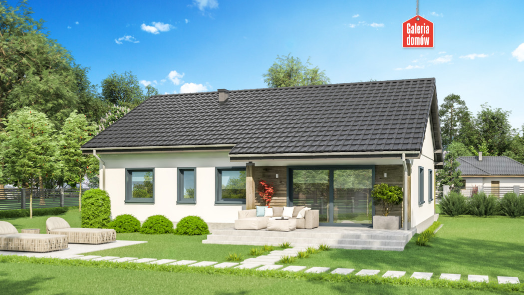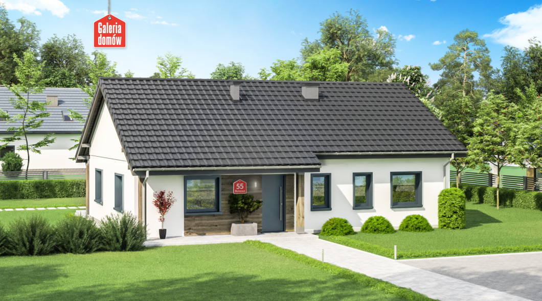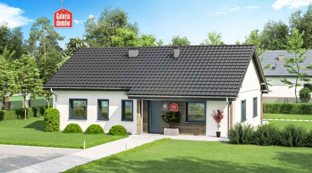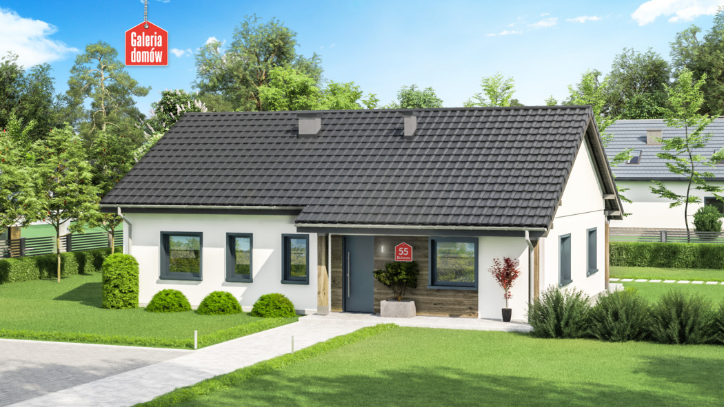 Dom przy Bukowej 55 to projekt domu parterowego o powierzchni użytkowej 95 m². Tani w budowie i ekonomiczny w użytkowaniu. Nadaje się do realizacji na niewielkich działkach. Wnętrze mieści 3 sypialnie, otwartą kuchnię, salon, łazienkę, toaletę, garderobę oraz kotłownię z miejscem na pralnię. W domu zastosowano na całej powierzchni ogrzewani podłogowe. Elewację wykonano w nowoczesnej stylistyce, przy użyciu wysokiej jakości materiałów. Nowoczesna stylistyka z wykorzystaniem naturalnych materiałów. Bukowa 55 została zaprojektowana w oparciu o warunki techniczne WT 2021. Dom przy Bukowej 55 posiada dodatkowe projekty wentylacji mechanicznej z rekuperacją, fotowoltaikę, ogrzewanie na pompę ciepła oraz instalację solarną. Prosty i tani w budowie dom dla 4-5 osobowej rodziny.