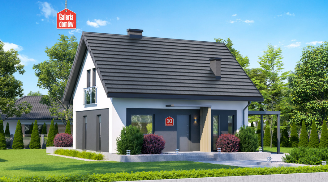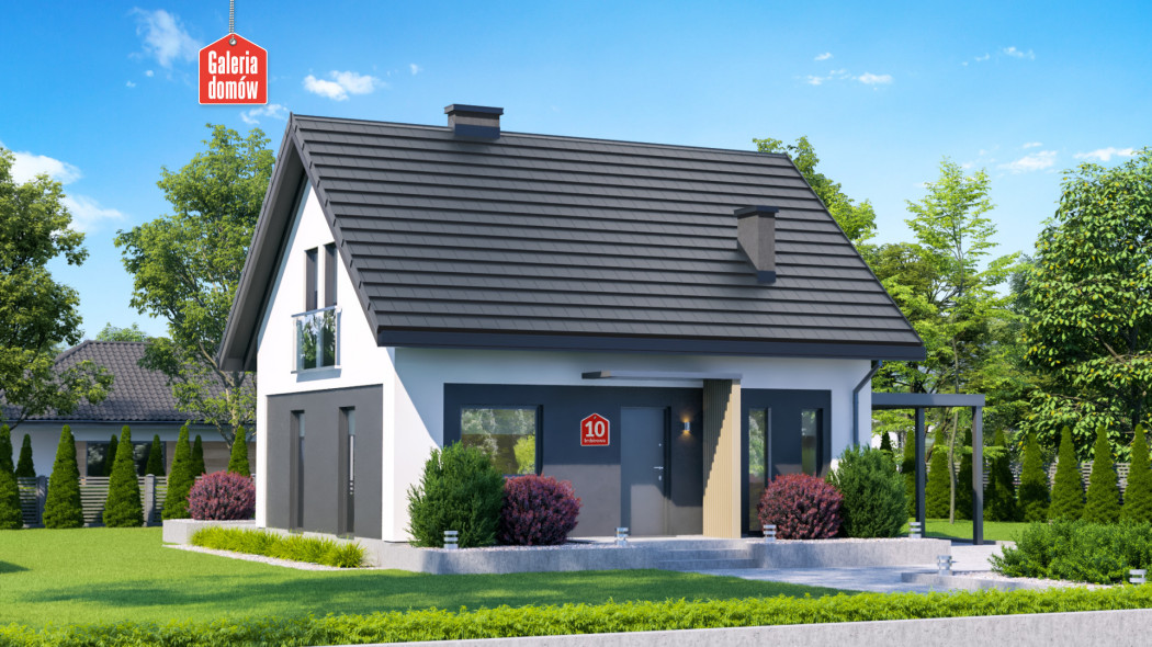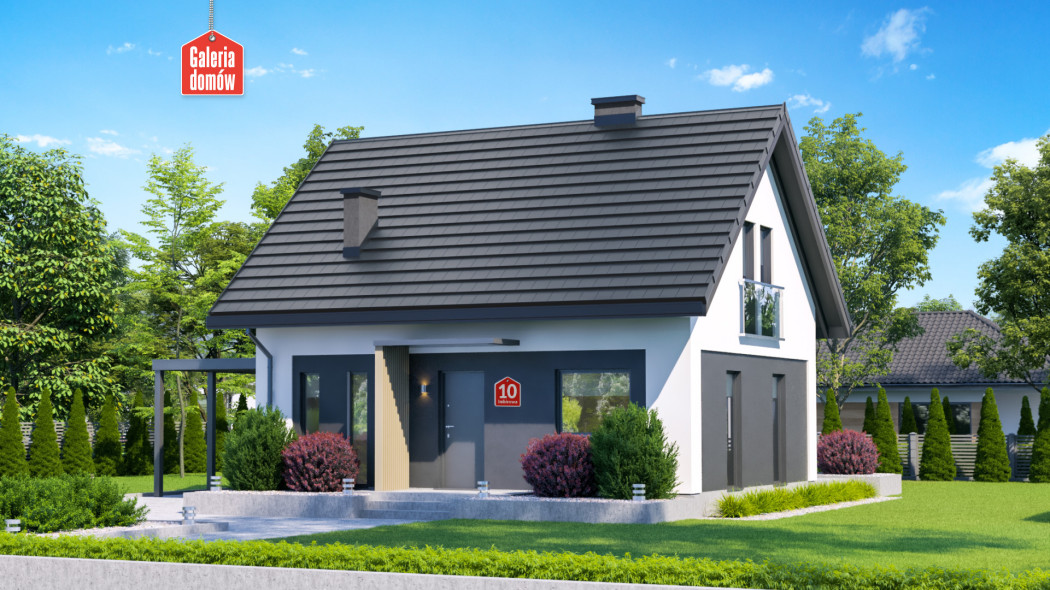 Projekt Dom przy Imbirowej 10 to budynek jednorodzinny, z użytkowym poddaszem. Dom o powierzchni użytkowej 85 m² mieści interesujący plan funkcjonalny. Zaprojektowany w technologii tradycyjnej, murowanej, z więźbą krokwiową, drewnianą. Dach dwuspadowy o kalenicy równoległej do drogi.