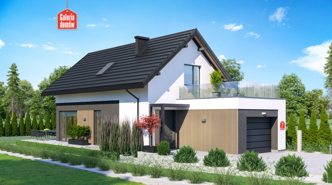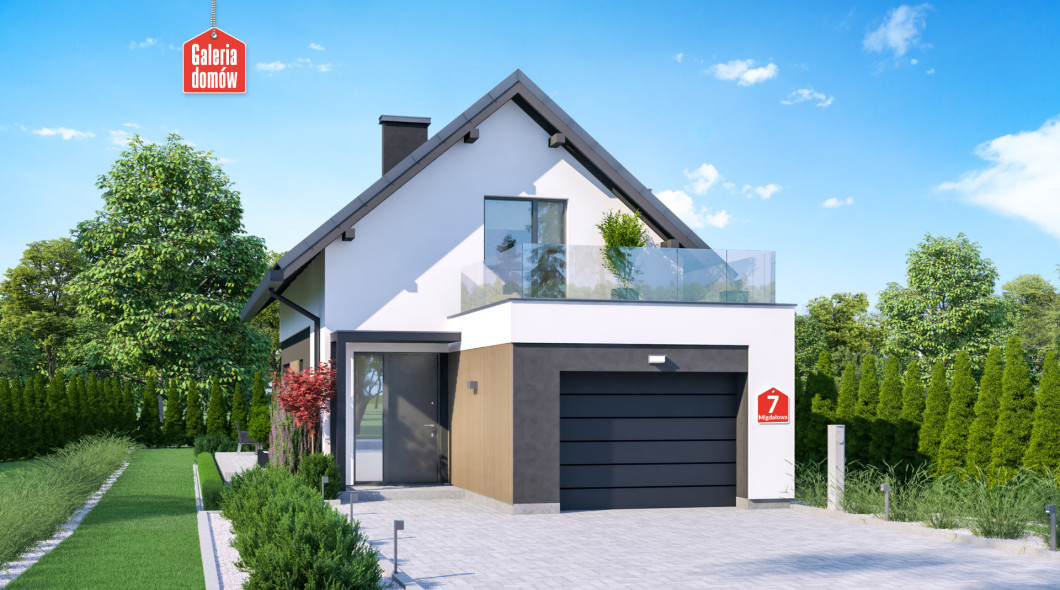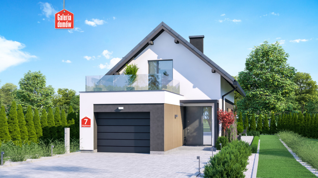 Dom w Migdałowej 7 to projekt domu jednorodzinnego o powierzchni użytkowej 92,57 m². Dom z poddaszem użytkowym i dachem dwuspadowym posiada garaż w bryle głównej budynku. Migdałowa 7 doskonale nadaje się do realizacji na wąskich działkach, o minimalnej szerokości 13,5 m. Układ funkcjonalny składa się z 4 pokoi, kuchni, 2 łazienek, garderoby oraz kotłowni. Na parterze znajduje się nasłoneczniona część dzienna z salonem o powierzchni 25 m² oraz otwartą kuchnią. Poddasze to przytulna część nocna. Znajdziemy tu 3 wygodne sypialnie z dostępem do francuskich balkonów oraz główną łazienkę. Sypialnia typu master bedroom wychodzi na przestronny taras. Projekt opracowany zgodnie z normami technicznymi WT 2021. Został zaprojektowany z myślą o warunkach, jakie powinny w przyszłości spełniać projekty domów zeroemisyjnych.