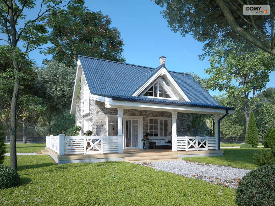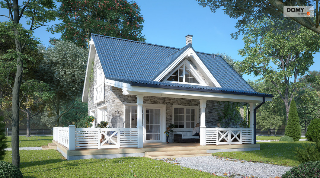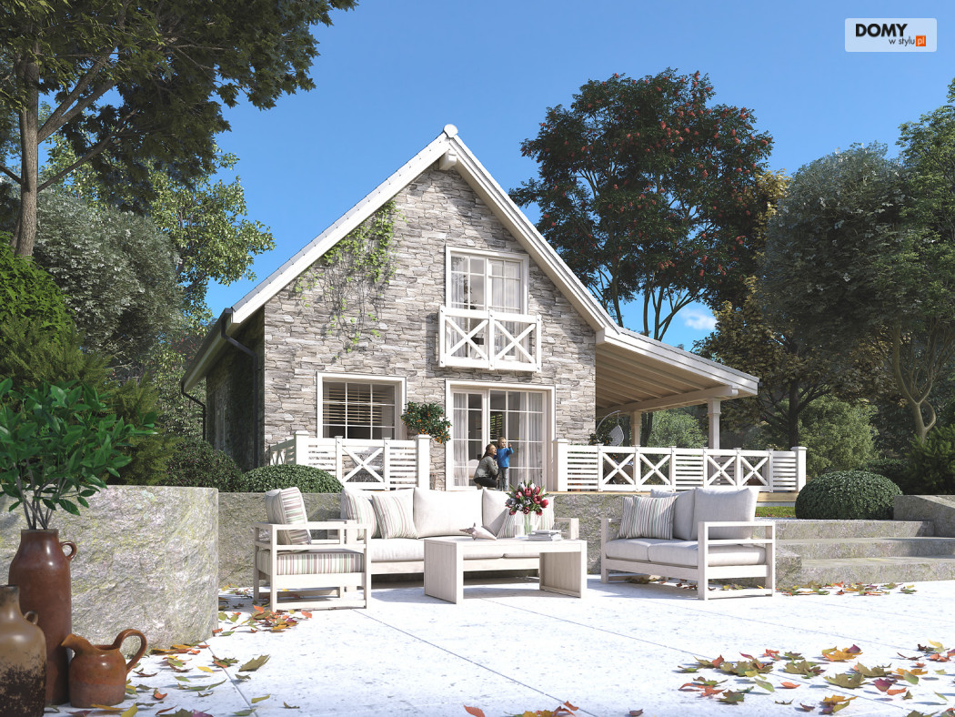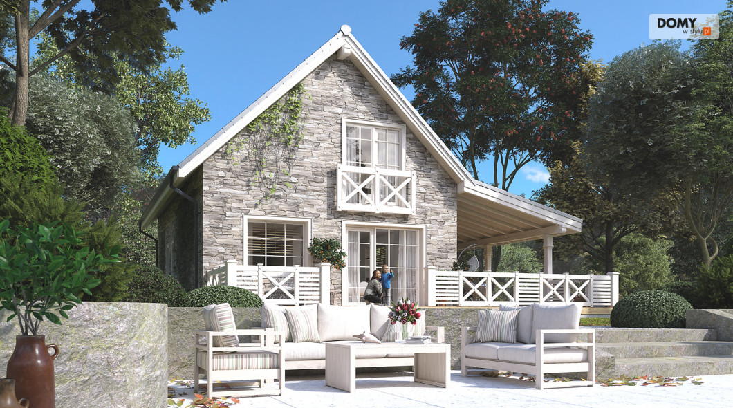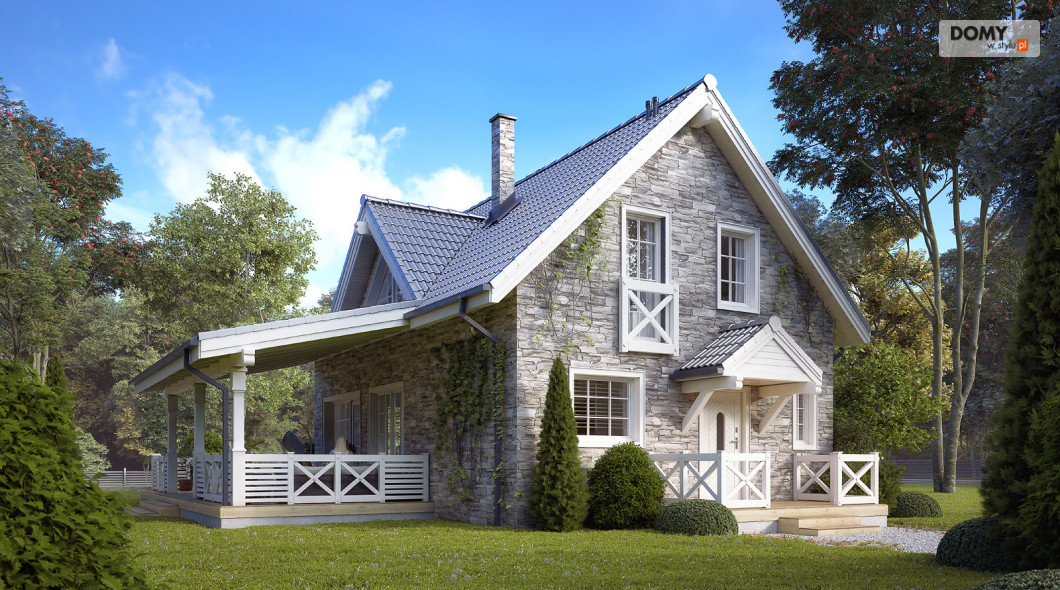 Aksamitka 3 to projekt domu z użytkowym poddaszem o powierzchni ok 112 m2. Prosta bryła została przykryta dwuspadowym dachem i wykończona w oryginalny sposób.