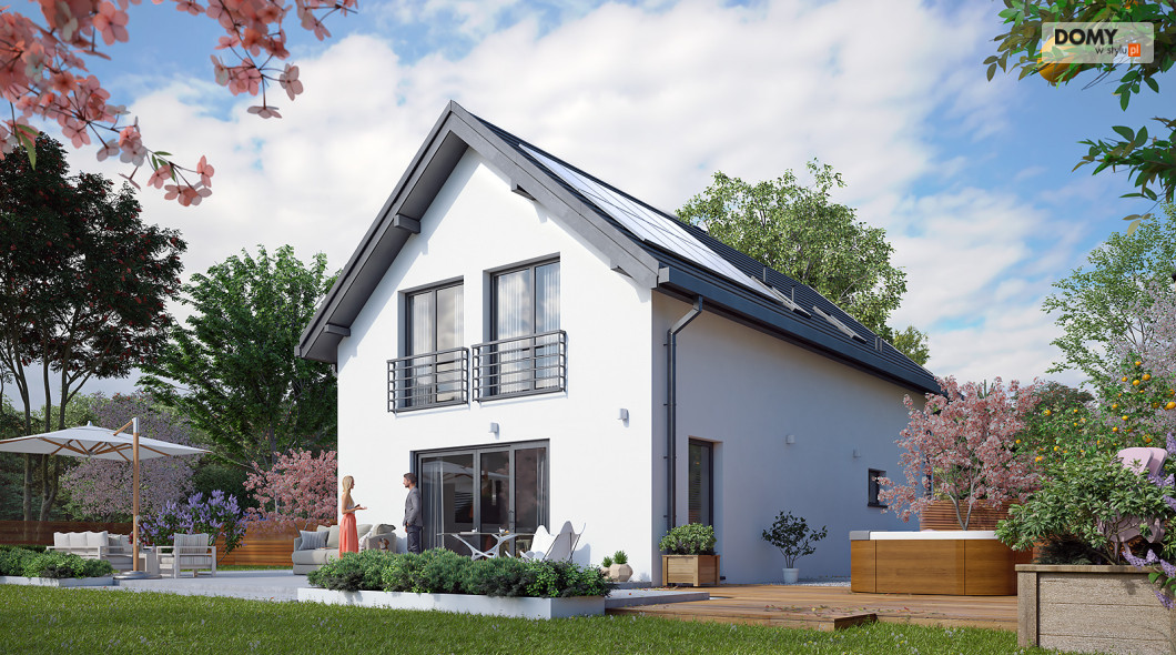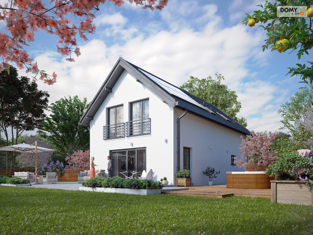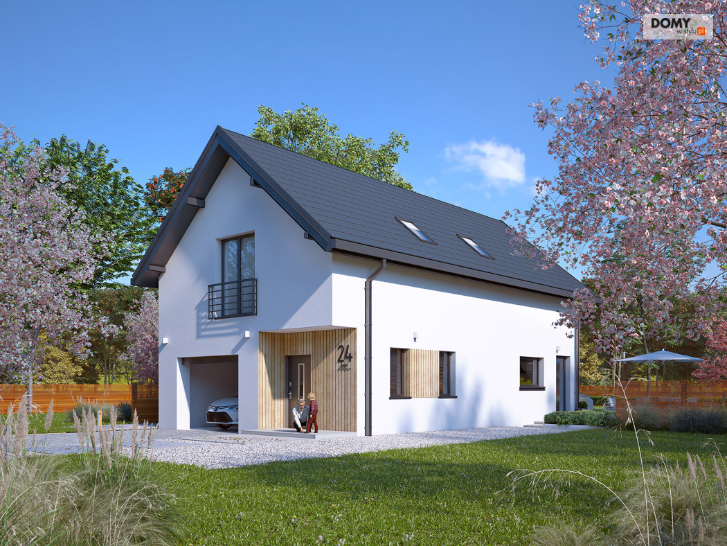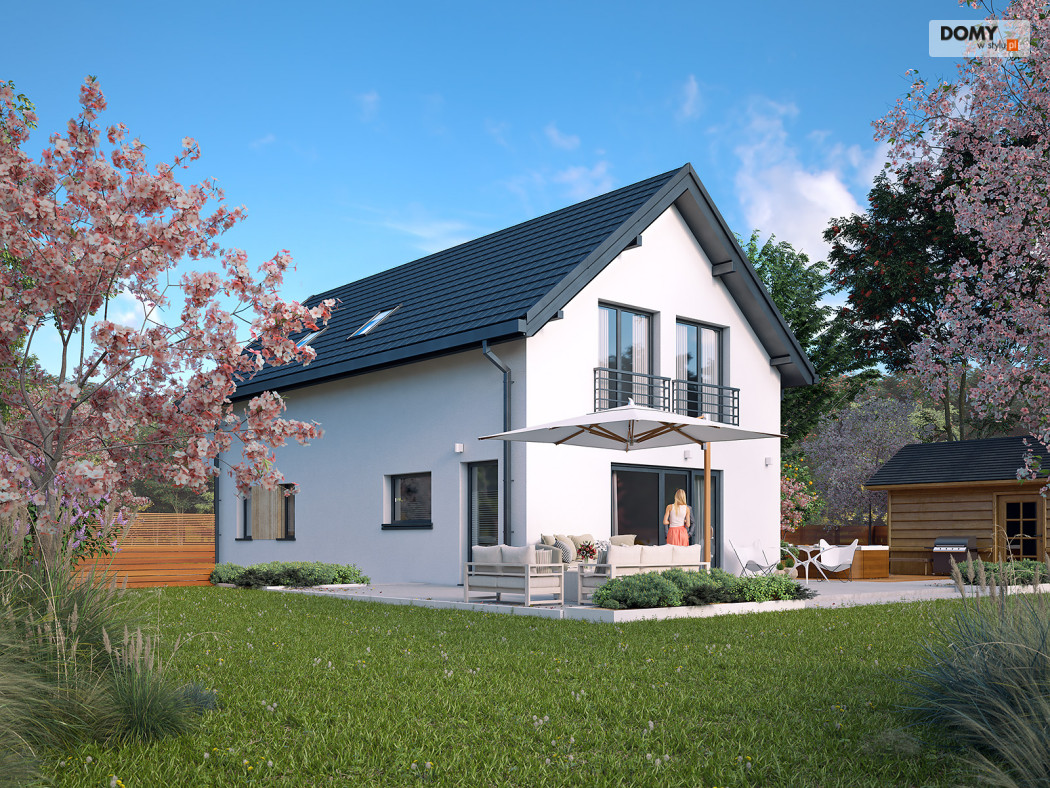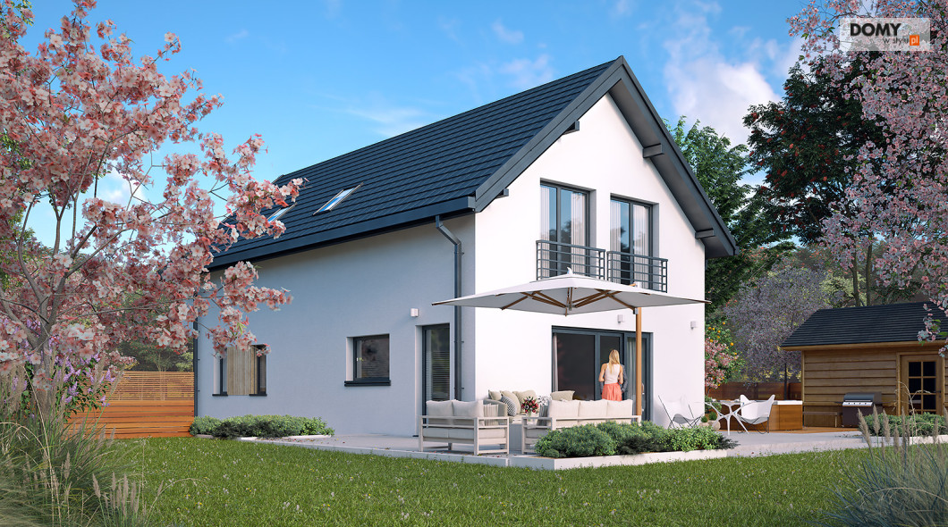 Trakt to projekt domu z użytkowym poddaszem, którego powierzchnię rozplanowano na 123 m2. Projekt utrzymano w nowoczesnym stylu. Będzie idealny na wąską działkę. Na parterze zaprojektowano otwartą część dzienna z salonem, kuchnią i jadalnią. Przewidziano tu liczne przeszklenia. Na poddaszu pojawiły się trzy sypialnie oraz gabinet do pracy i nauki.