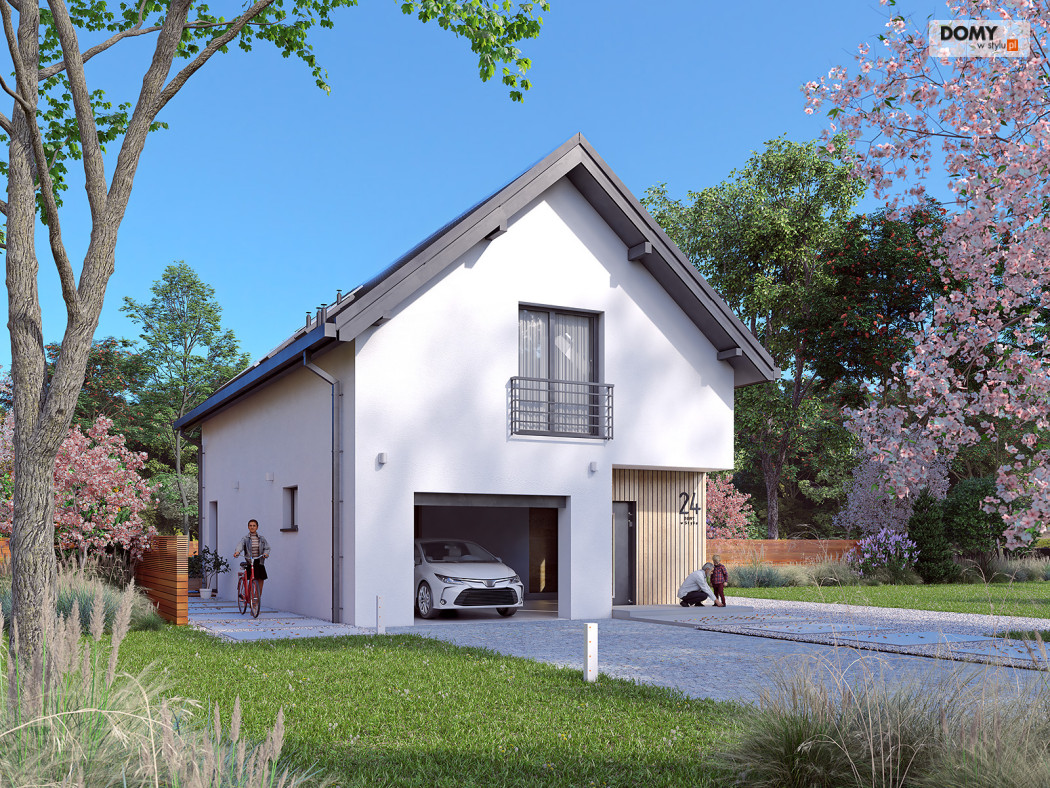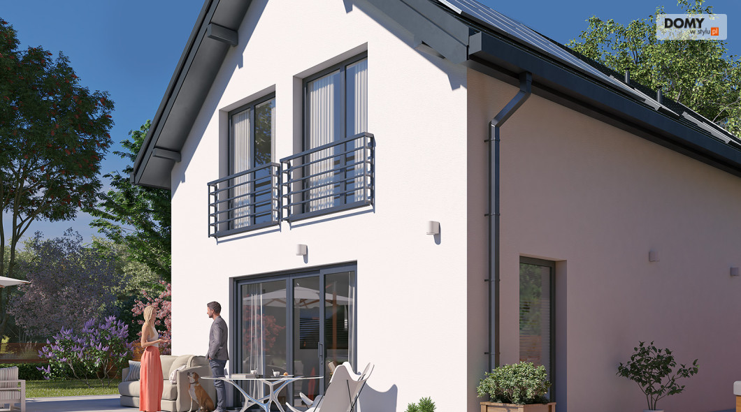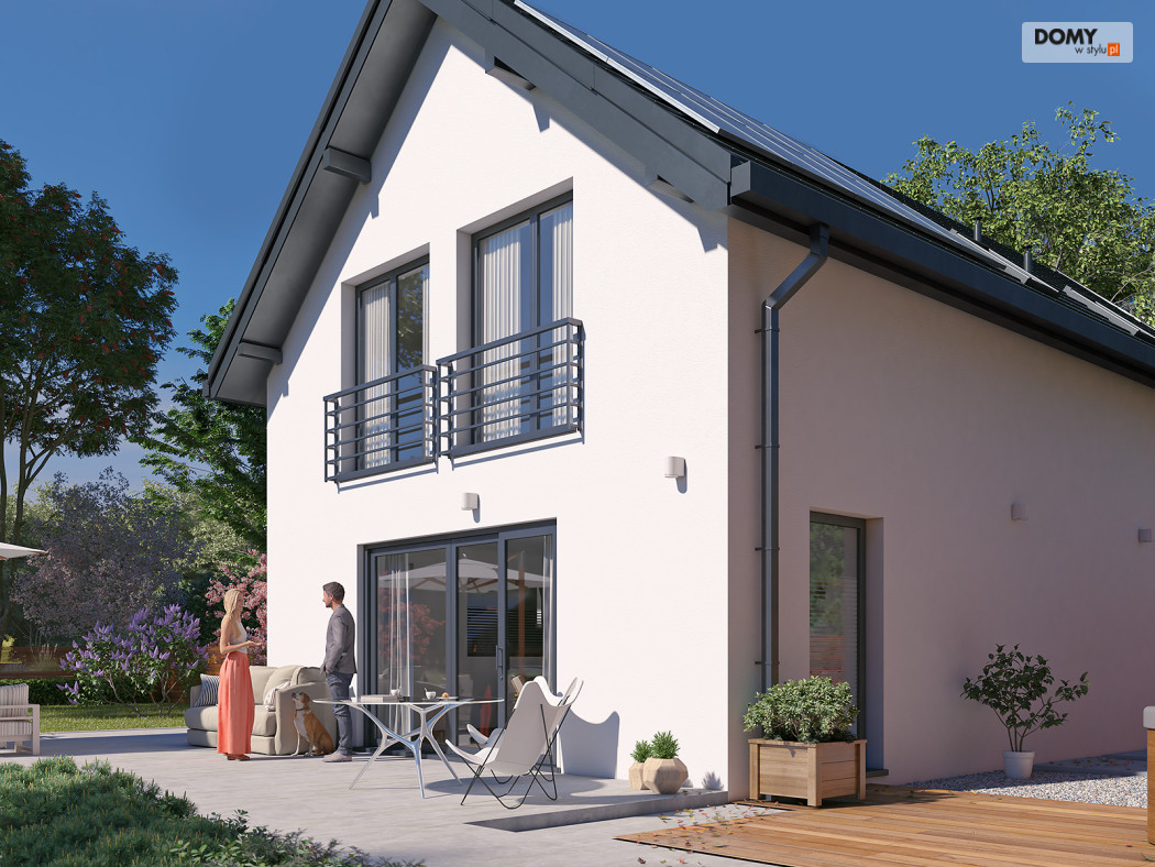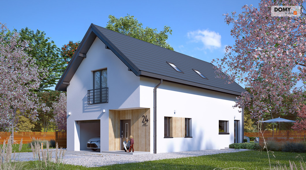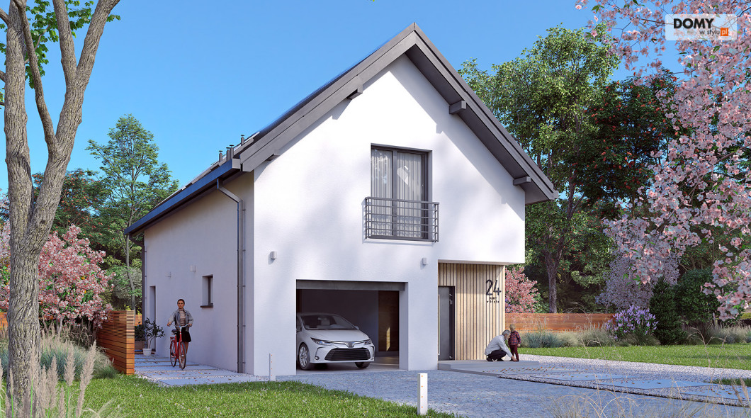 Trakt to projekt domu z użytkowym poddaszem, którego powierzchnię rozplanowano na 123 m2. Projekt utrzymano w nowoczesnym stylu. Będzie idealny na wąską działkę. Na parterze zaprojektowano otwartą część dzienna z salonem, kuchnią i jadalnią. Przewidziano tu liczne przeszklenia. Na poddaszu pojawiły się trzy sypialnie oraz gabinet do pracy i nauki.