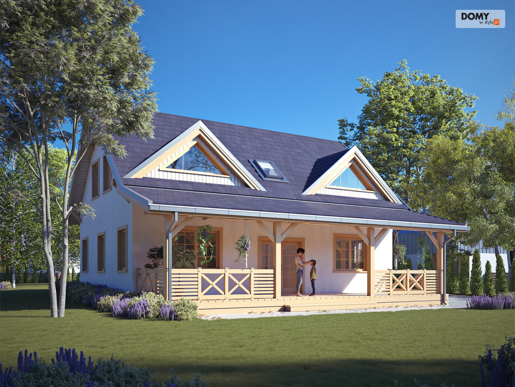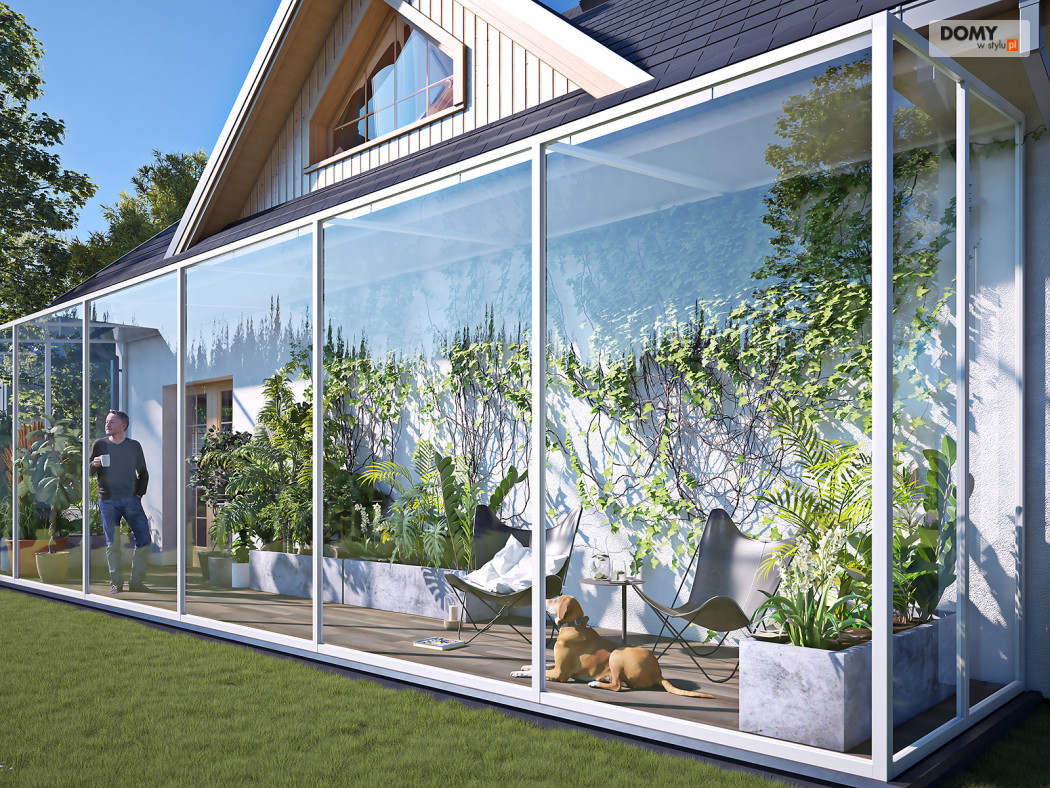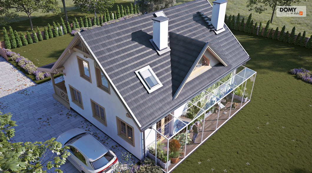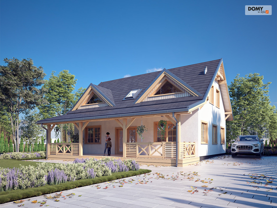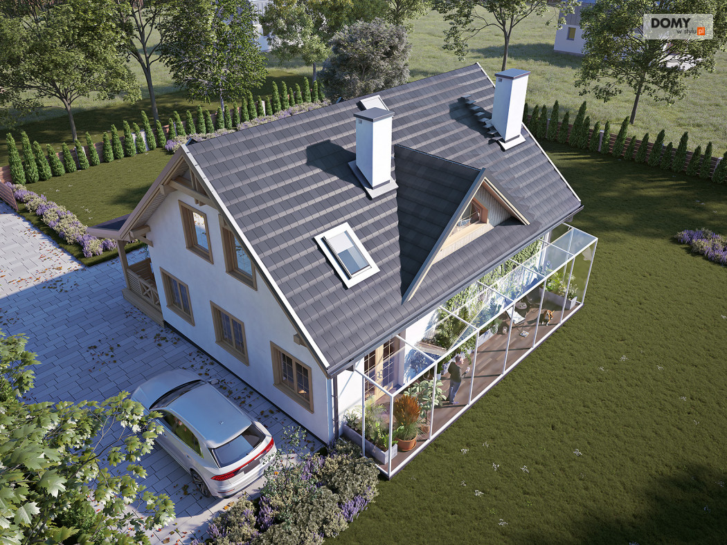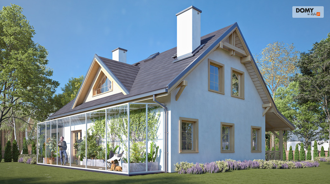 Puszek 2 dr-T to projekt domu w szkielecie drewnianym bez garażu. Zaprojektowano tu otwartą strefę dzienną oraz trzy sypialnie na poddaszu. Dodatkowa sypialnia pojawiła się na parterze, dzięki czemu można ją wykorzystać jako pokój dla gości lub gabinet do pracy i nauki. Projekt posiada piękną sypialnie oraz ogród zimowy.