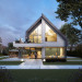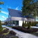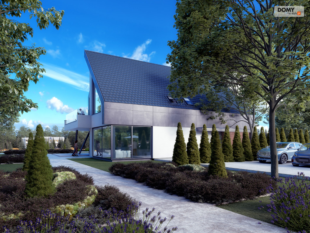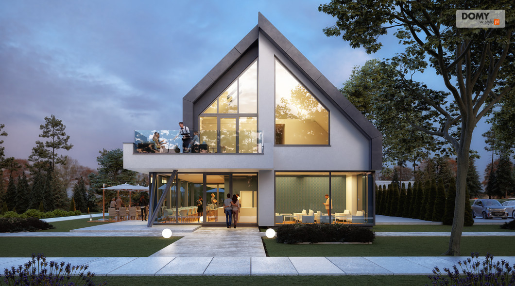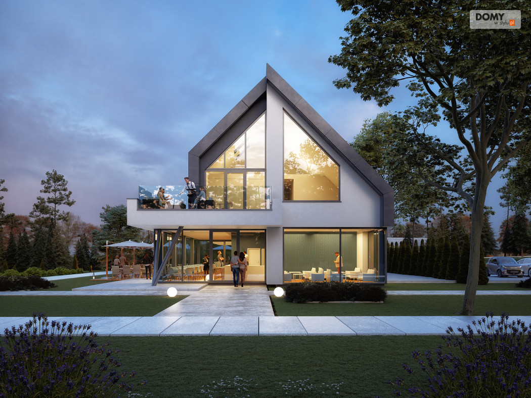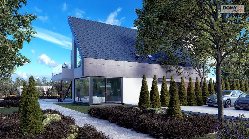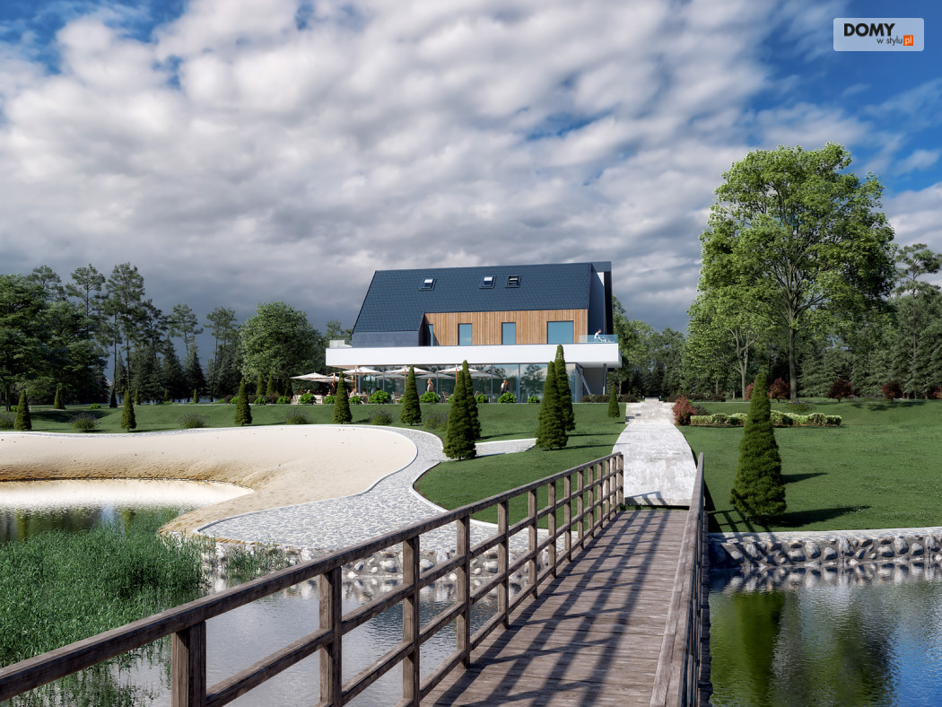 Kawiarnia to budynek usługowy z dwoma mieszkaniami. Projekt utrzymano w nowoczesnym stylu. Elewację zdobią drewniana szalówka, płyty elewacyjne oraz szklane balustrady. Parter budynku to część usługowa z zapleczem sanitarnym. Na poddaszu zaprojektowano dwa mieszania.