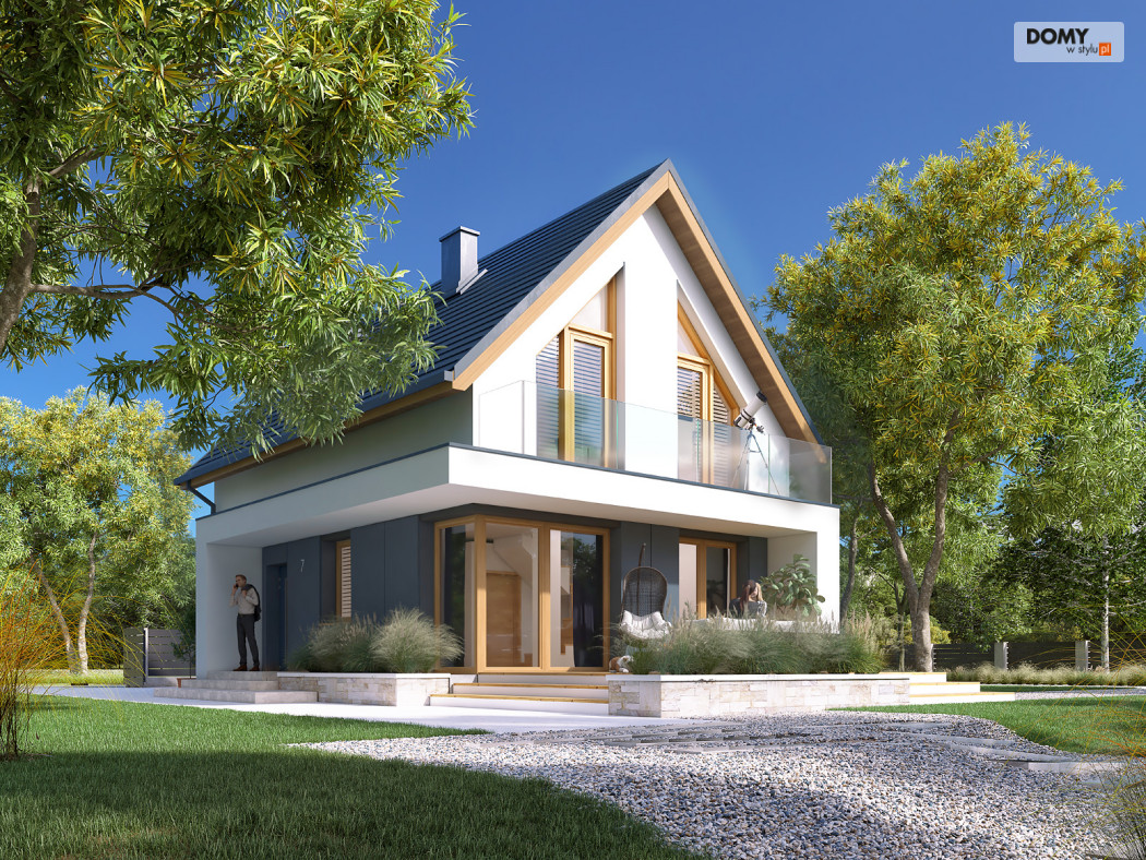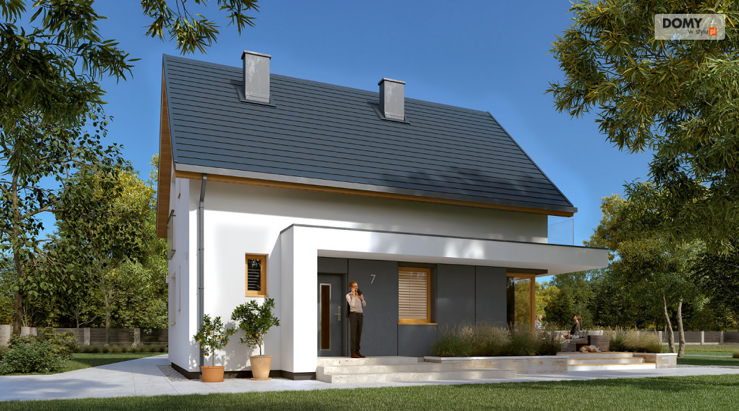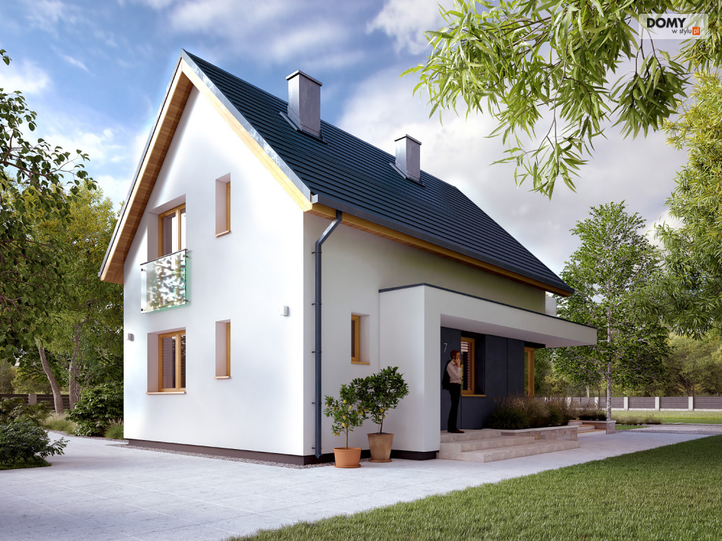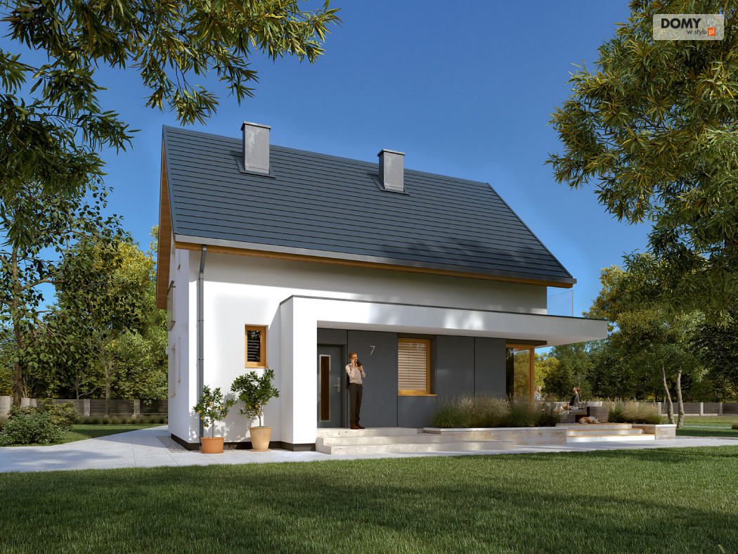 Kruszyna 3 to projekt domu z poddaszem o powierzchni 98 m2. Prosta bryła, dwuspadowy dach i minimalistyczna forma budynku przypadnie do gustu miłośnikom nowoczesnego stylu. Część dzienna to otwarta przestrzeń, na której zaprojektowano salon, jadalnię z panoramicznym przeszkleniem oraz otwartą kuchnię. Na parterze przewidziano również dodatkową sypialnię, łazienkę oraz pomieszczenie techniczne. Poddasze skrywa trzy wygodne sypialnie oraz rodzinną łazienkę.