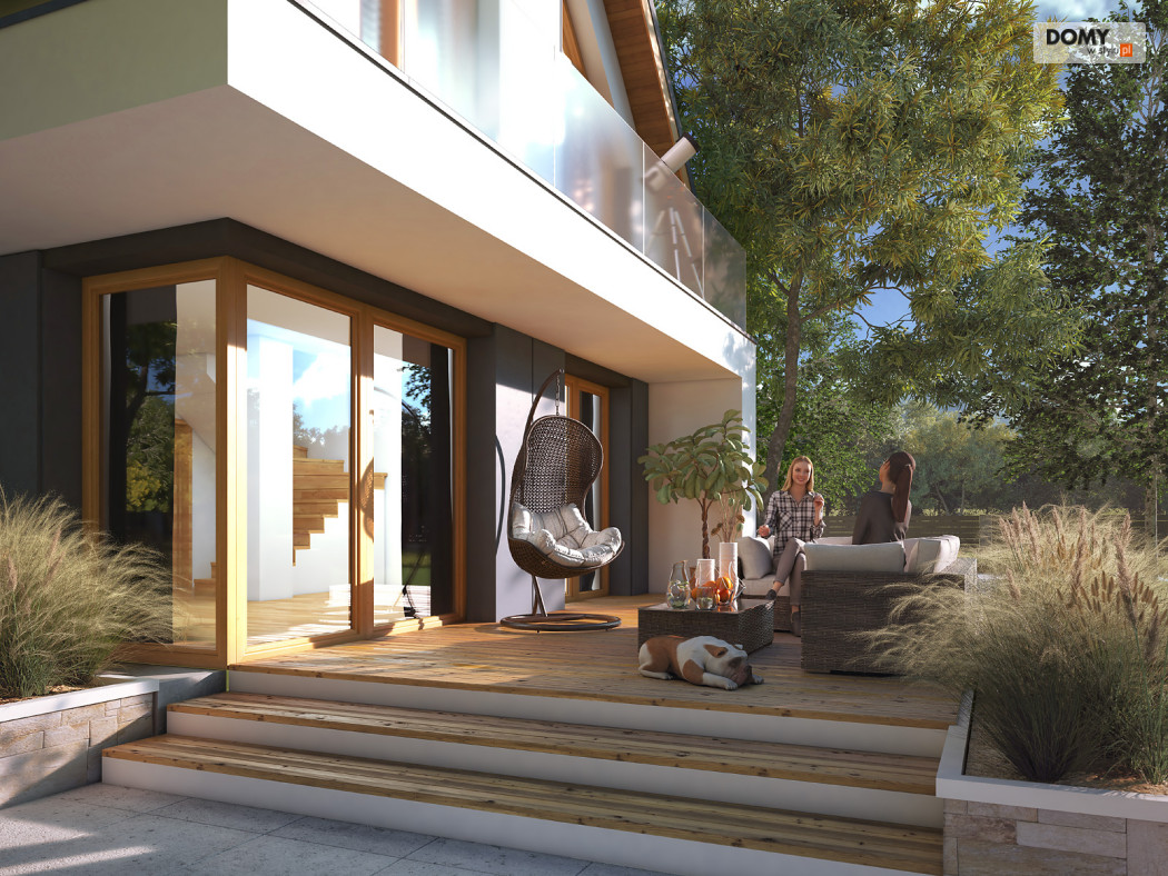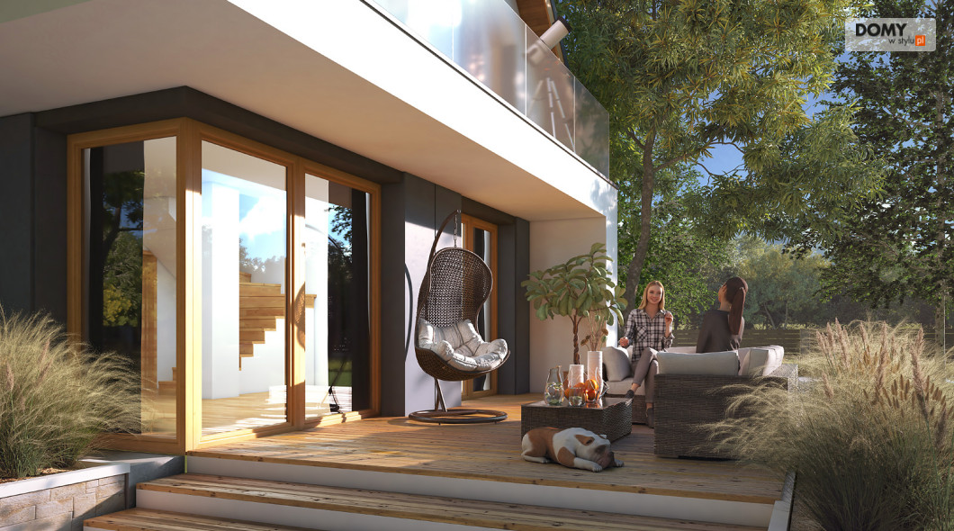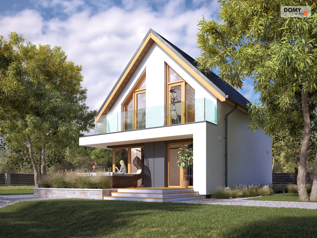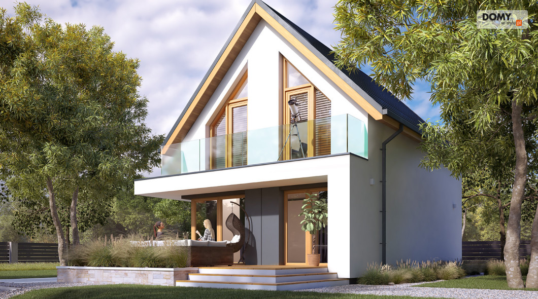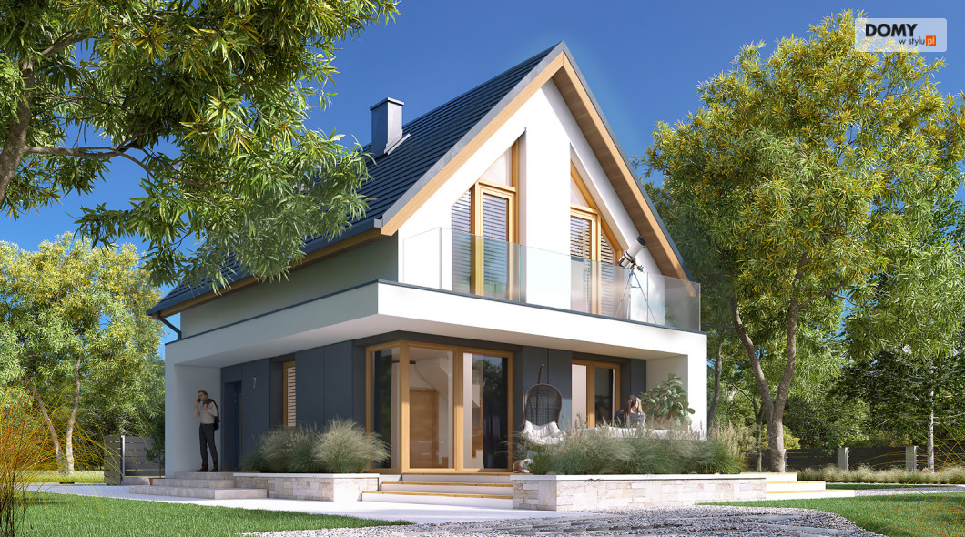 Kruszyna 3 to projekt domu z poddaszem o powierzchni 98 m2. Prosta bryła, dwuspadowy dach i minimalistyczna forma budynku przypadnie do gustu miłośnikom nowoczesnego stylu. Część dzienna to otwarta przestrzeń, na której zaprojektowano salon, jadalnię z panoramicznym przeszkleniem oraz otwartą kuchnię. Na parterze przewidziano również dodatkową sypialnię, łazienkę oraz pomieszczenie techniczne. Poddasze skrywa trzy wygodne sypialnie oraz rodzinną łazienkę.