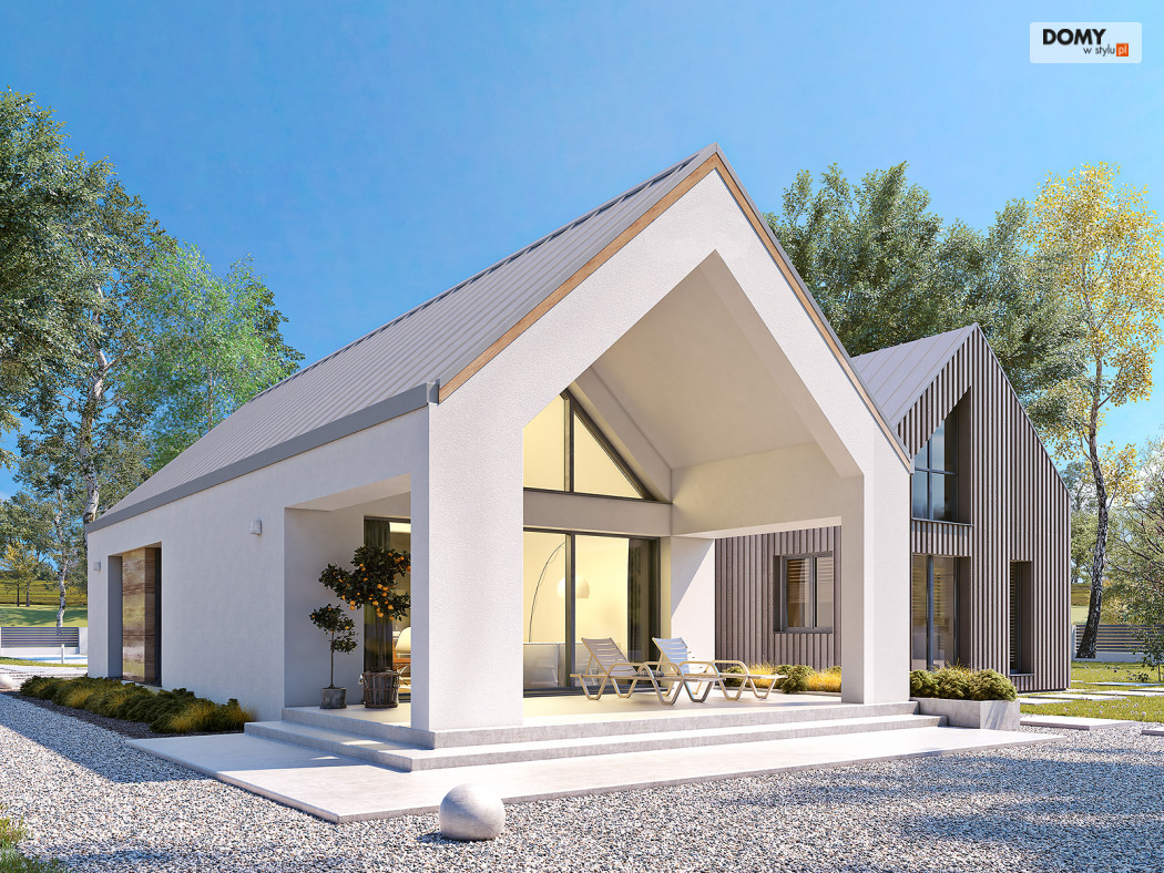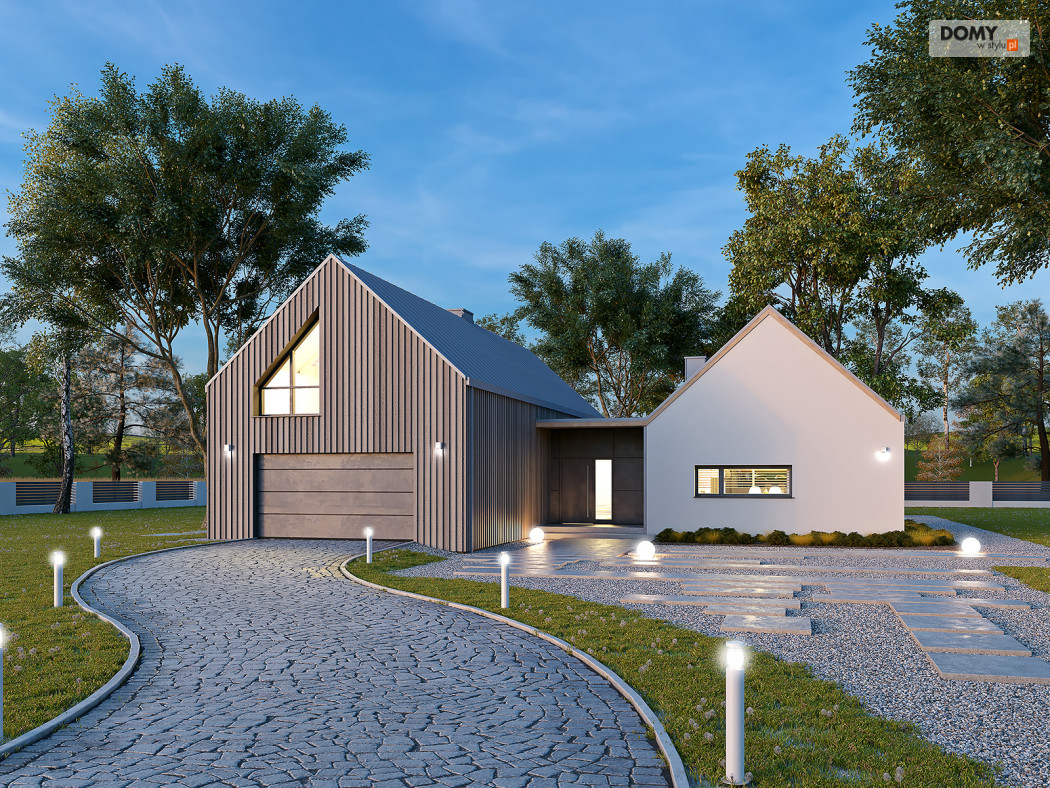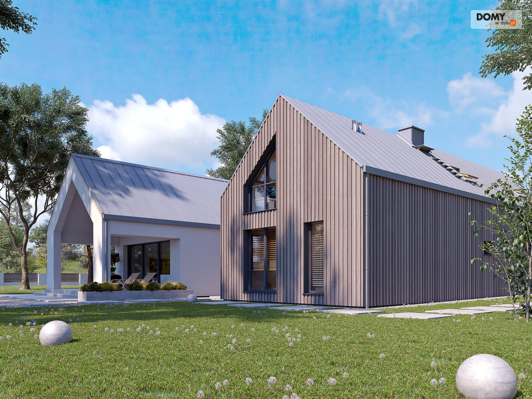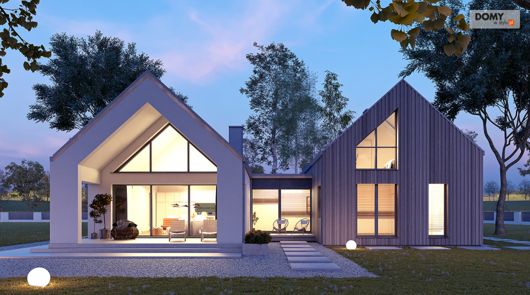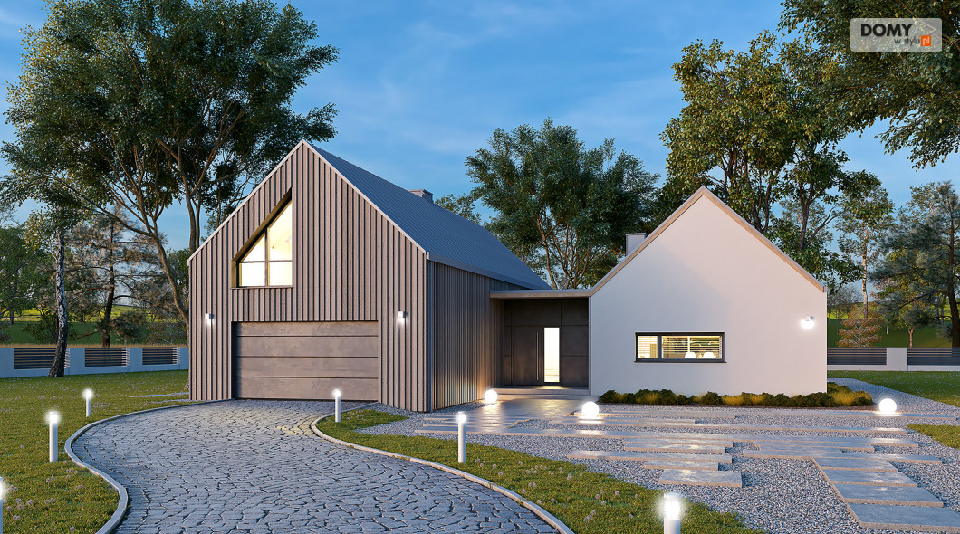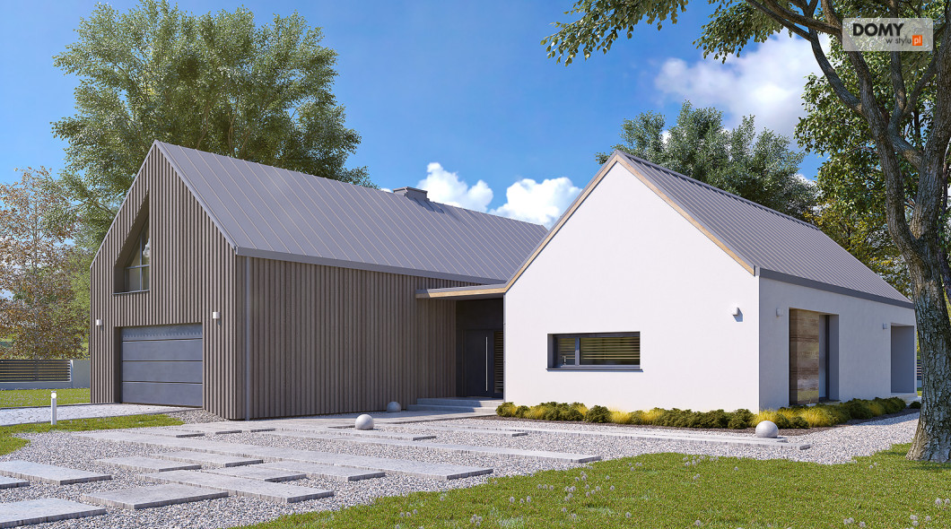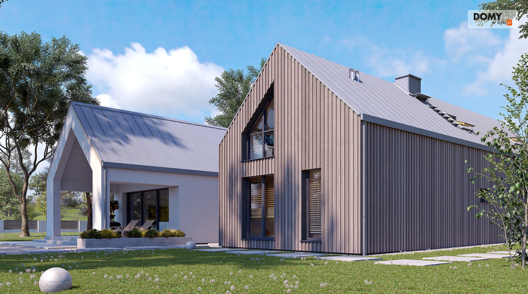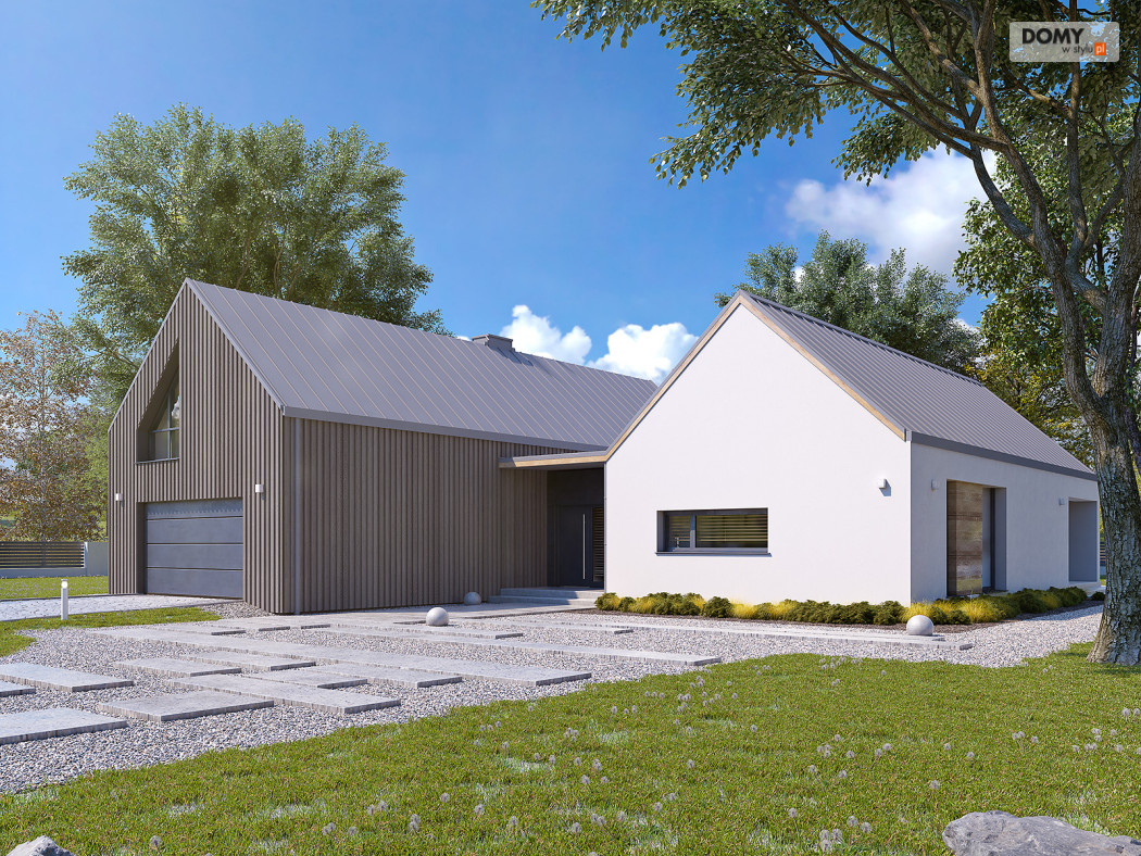 Katamaran Dr-S jest projektem domu w stylu nowoczesnej stodoły. Bryła tego budynku składa się z dwóch brył połączonych korytarzem. Podział ten jasno definiuje strefy. Dach został wykończony blachą, a ściany tynkiem oraz szalówką. Wewnątrz znajdują się trzy przestronne sypialnie, garaż dwu stanowiskowy oraz otwarta kuchnia połączona z jadalnią i pokojem dziennym z widokiem na zadaszony taras