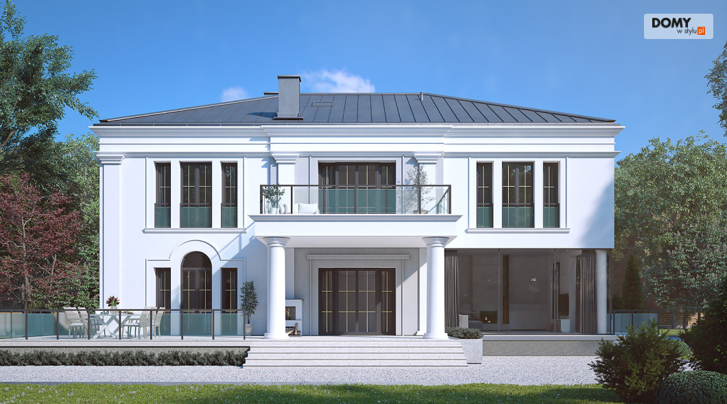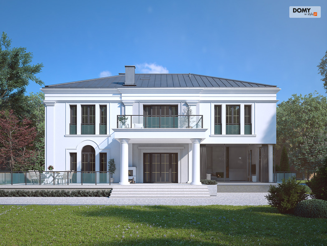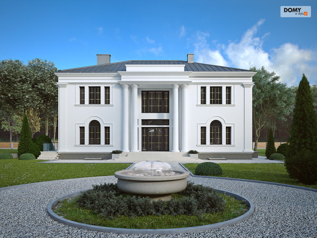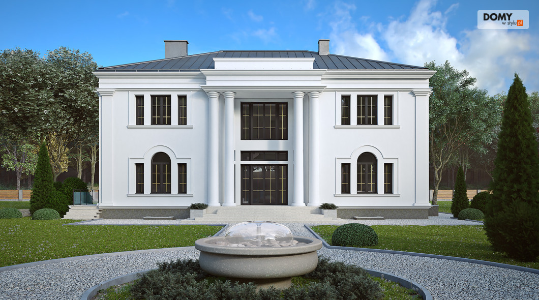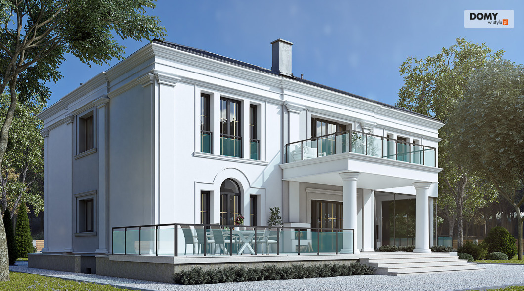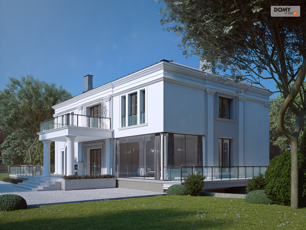 Amadeusz 2 to projekt domu w stylu nowoczesnej rezydencji. Elegancka i prestiżowa elewacja została ozdobiona licznymi gzymsami oraz pilastrami. Garaż umiejscowiono w piwnicy dostępnej za pomocą krętego zjazdu. Parter o otwartym charakterze cechuje się widokiem na taras oraz obszernym oknem narożnym. Kuchnia znajduje się w bardzo bliskiej odległości od kuchni. Na poddaszu zaprojektowano 4 wygodne pokoje, z czego jeden z dużą garderobą. Dodatkowo na tym piętrze znajdują się również w łazienki oraz WC
