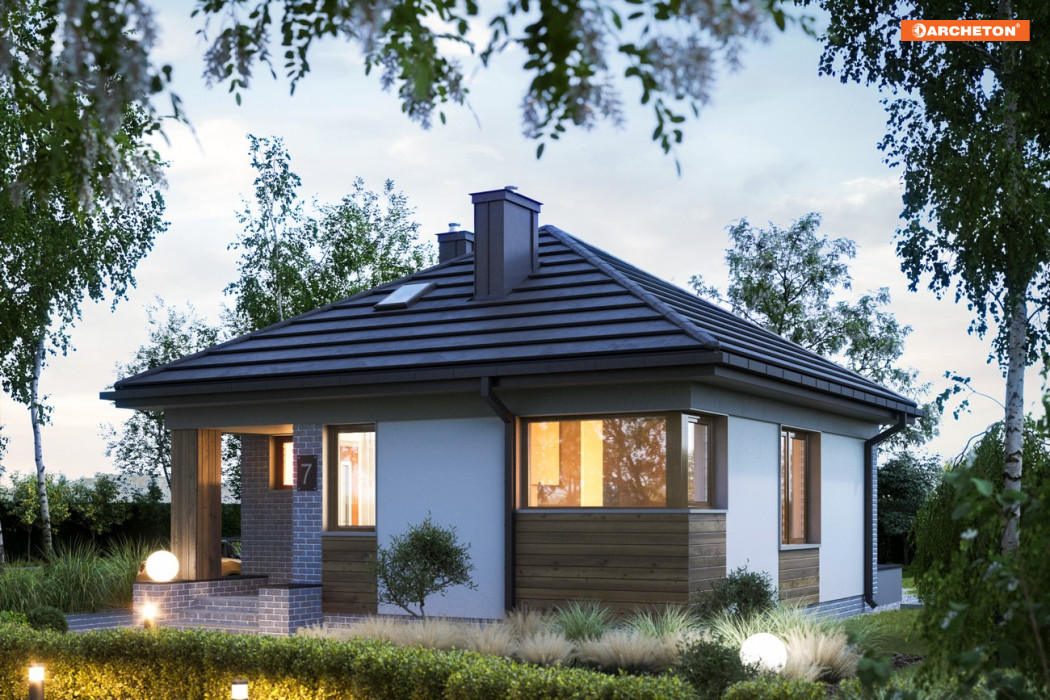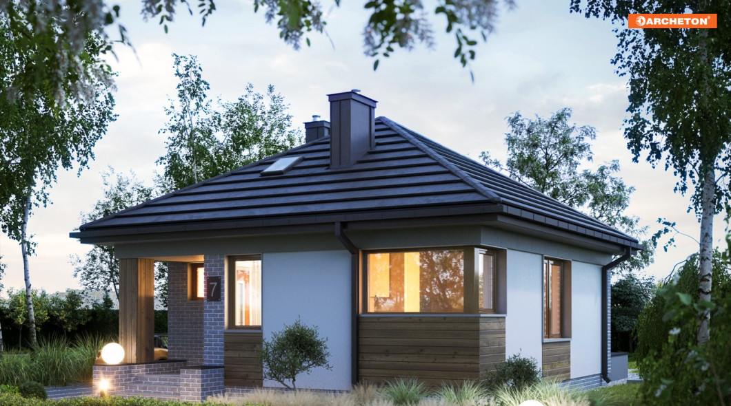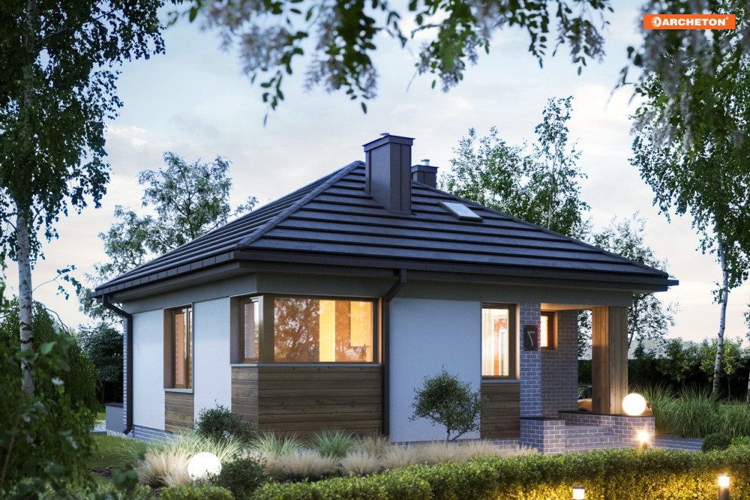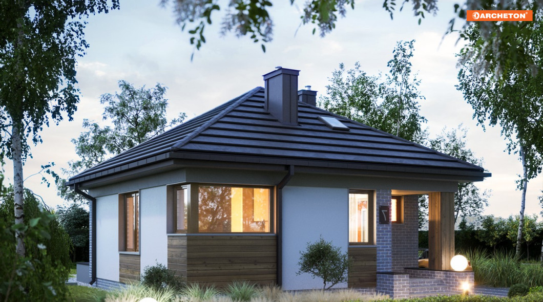 Osoby, które poszukują małego domu parterowego do 50 m² powinny zwrócić uwagę na projekt Na Kwadracie Bis. Jego kompaktowy kształt i pokryta czterospadowym dachem bryła szczególnie zadowoli tych, którzy poszukują niewielkiego metrażu, ale nie chcą mieszkać w zabudowie wielorodzinnej.