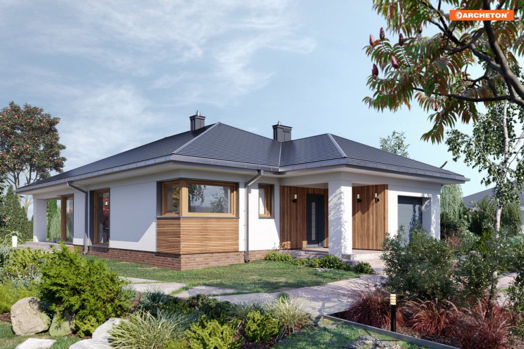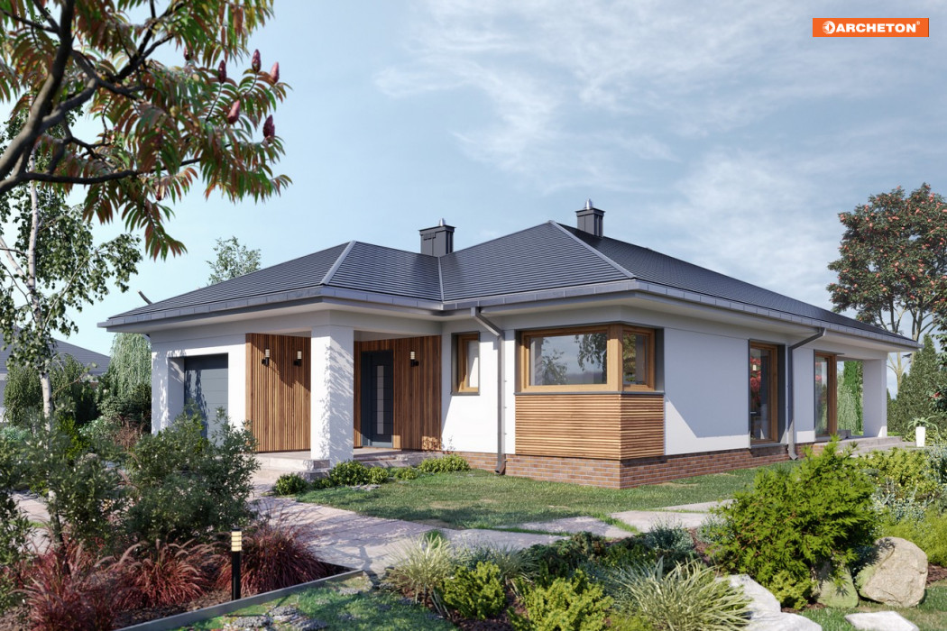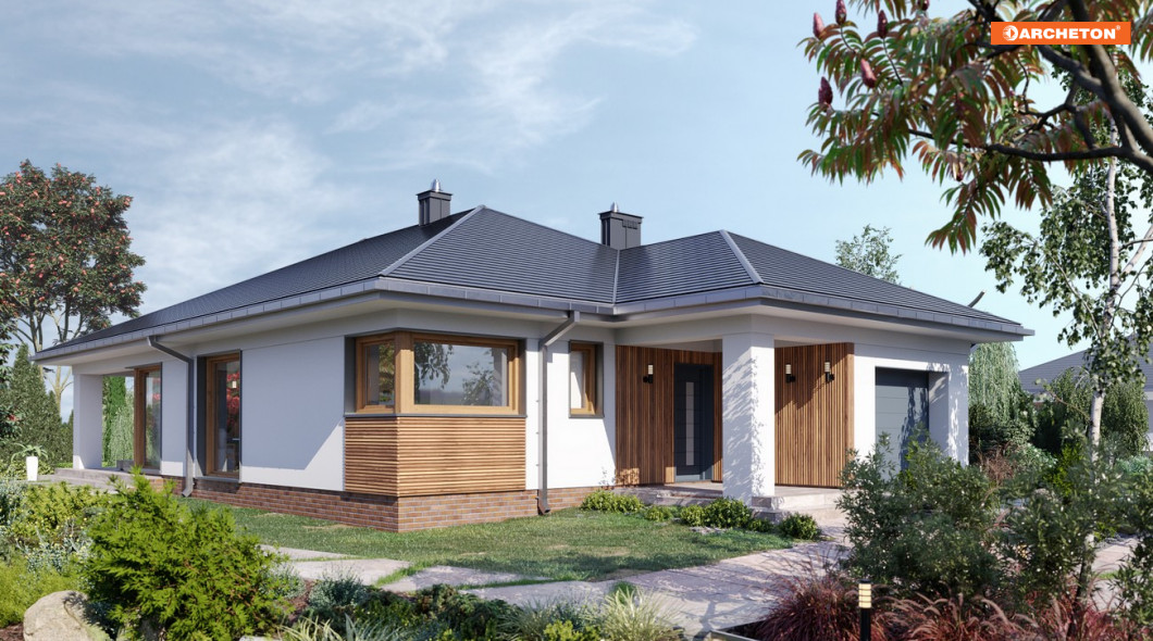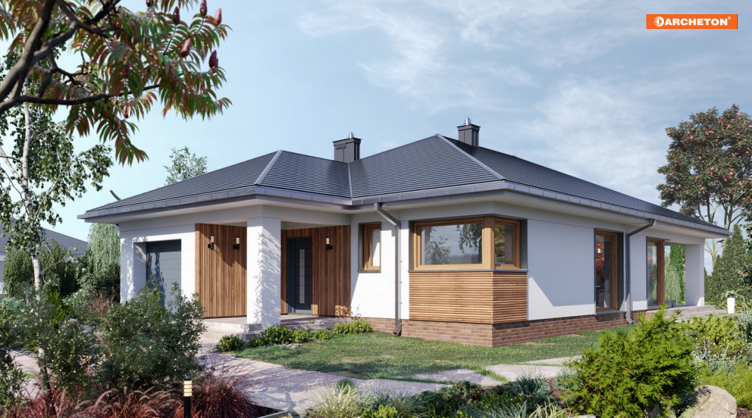 Koniczynka Nano to komfortowy dom parterowy (110 m²) z garażem, który idealnie wpisze się w potrzeby rodziny 2+2.