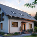 Prosta bryła przykryta dachem dwuspadowym sprawia, że budynek jest niedrogi w realizacji i eksploatacji. Jasny tynk, który kontrastuje z ciemnym odcieniem pokrycia i strefy wejściowej nadaje całości nowoczesny rys, podkreślając jednocześnie klasyczną elegancję.