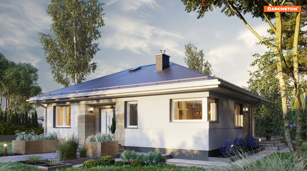 Koszt wzniesienia budynku wraz z pokryciem dachu i stolarką zewnętrzną (okna i drzwi). Bez instalacji, ocieplenia i robót wykończeniowych.