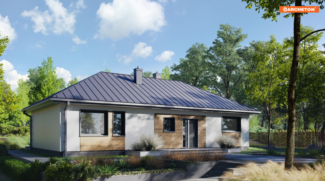 Koszt wzniesienia budynku wraz z pokryciem dachu i stolarką zewnętrzną (okna i drzwi). Bez instalacji, ocieplenia i robót wykończeniowych.