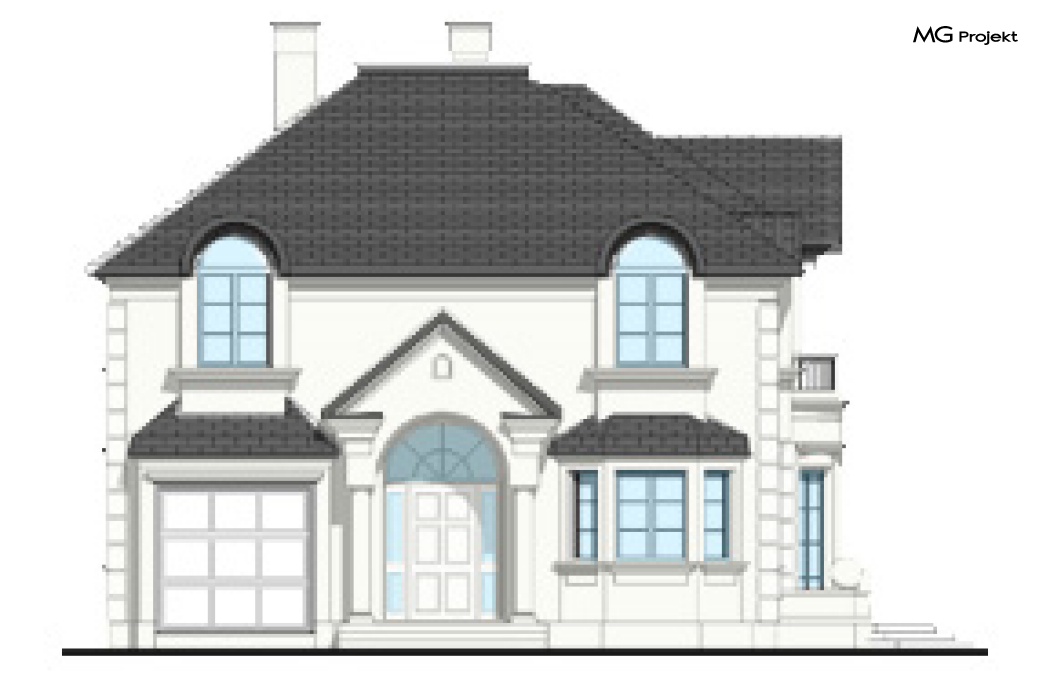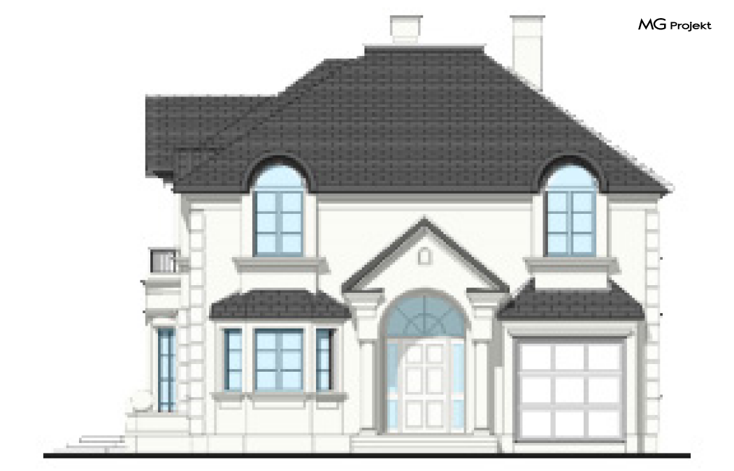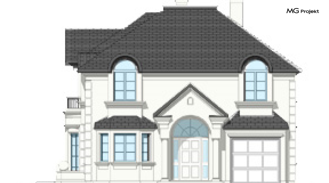 Projekt domu Ambasador 3 wariant B jest wersją wariantową projektu Ambasador 3 z garażem od frontu w miejscu gabnetu i garderoby. Projekt domu o klasycznej architekturze, z ciekawymi detalami elewacji. Dom pasuje zarówno na działkę z ogrodem usytuowanym z tyłu jak i z boku. Wnętrze budynku podzielono na cześć dzienną na parterze i sypialnie na poddaszu.