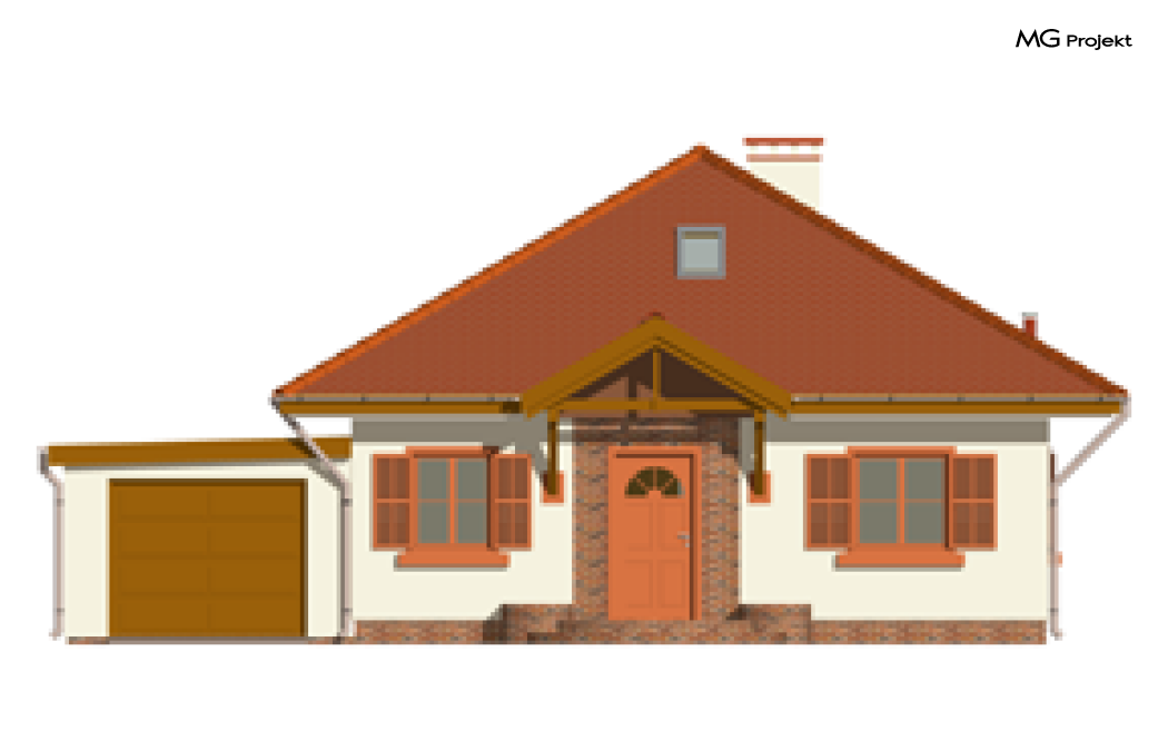 Wersja z garażem dobudowanym z boku oraz z pomieszczeniem gospodarczym za garażem, które można zaadaptować na kotłownię.