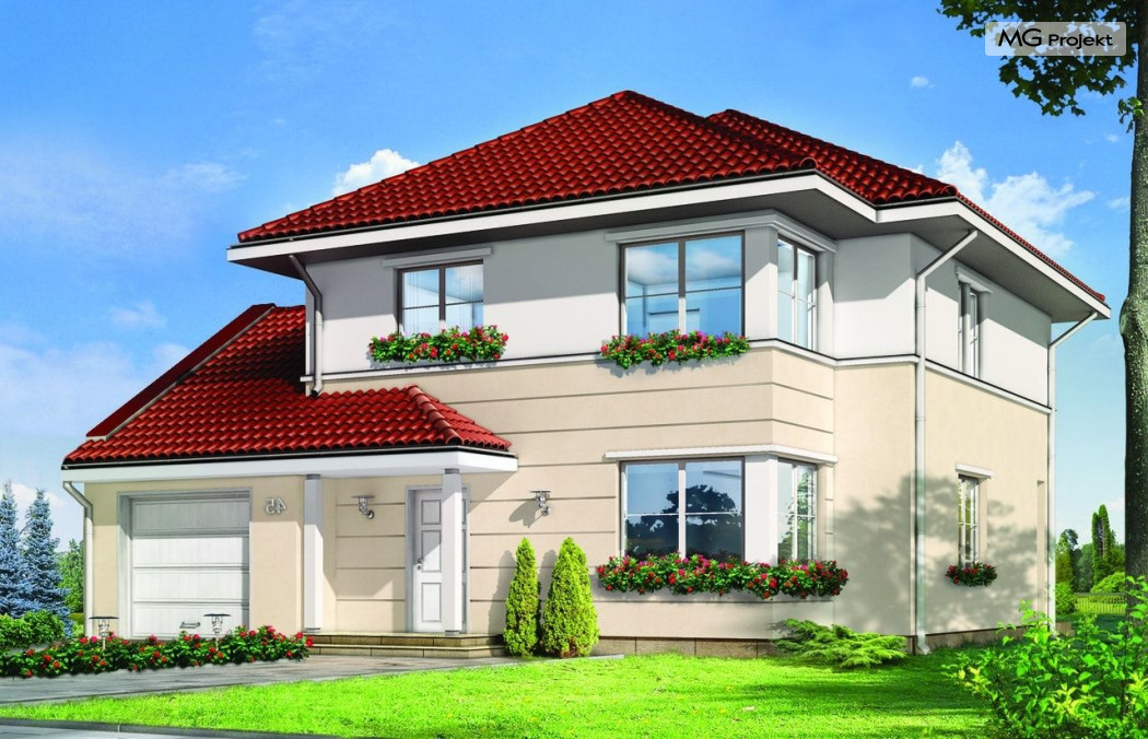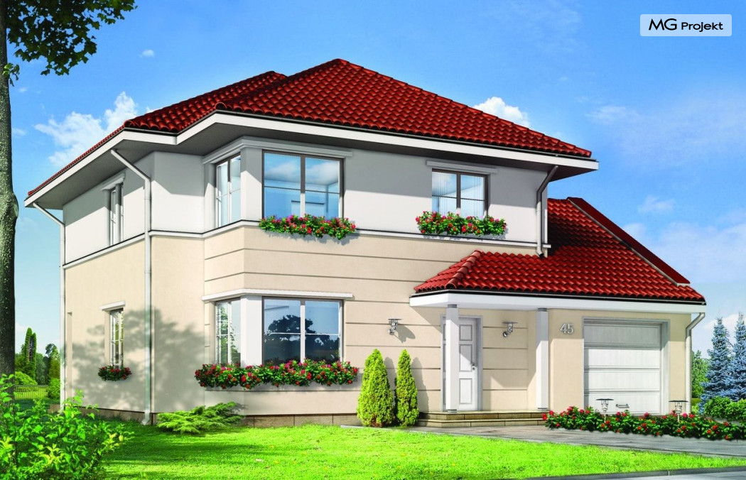 Koszt wzniesienia budynku wraz z pokryciem dachu i stolarką zewnętrzną (okna i drzwi). Bez instalacji, ocieplenia i robót wykończeniowych.