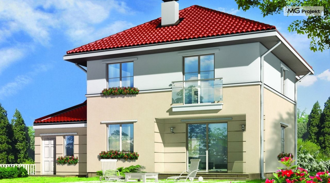 Wariant projektu rozbity na dwie części z garażem jednostanowiskowym, kotłownią i pom. gospodarczym. Wymiary, koszty i cena dotyczą jednej połówki.