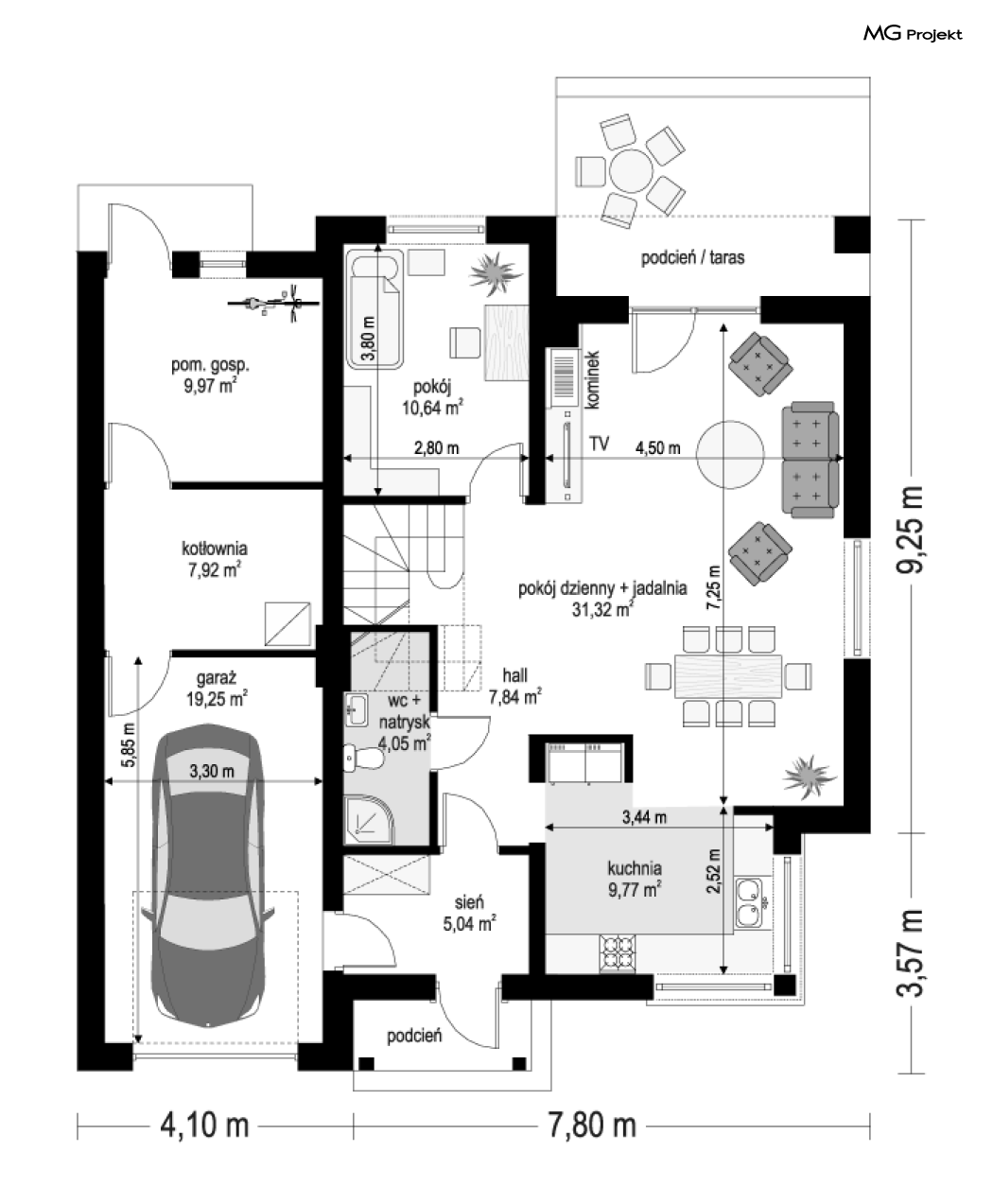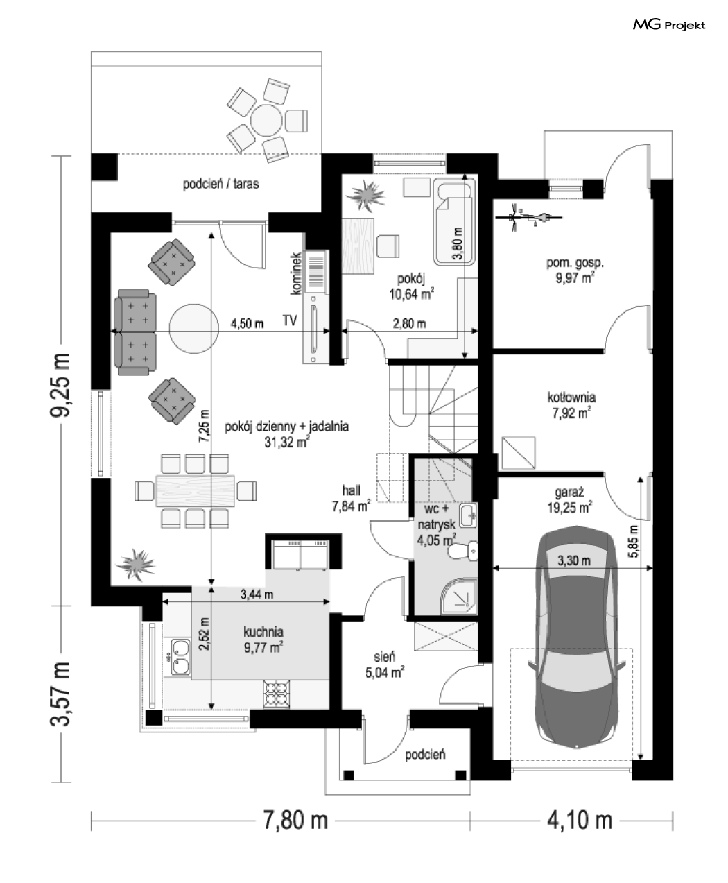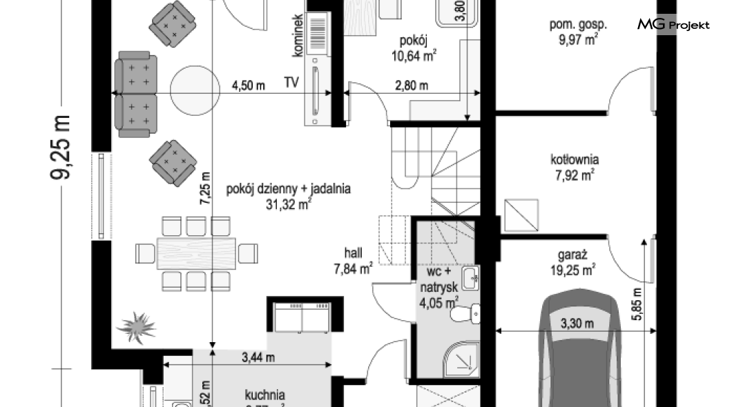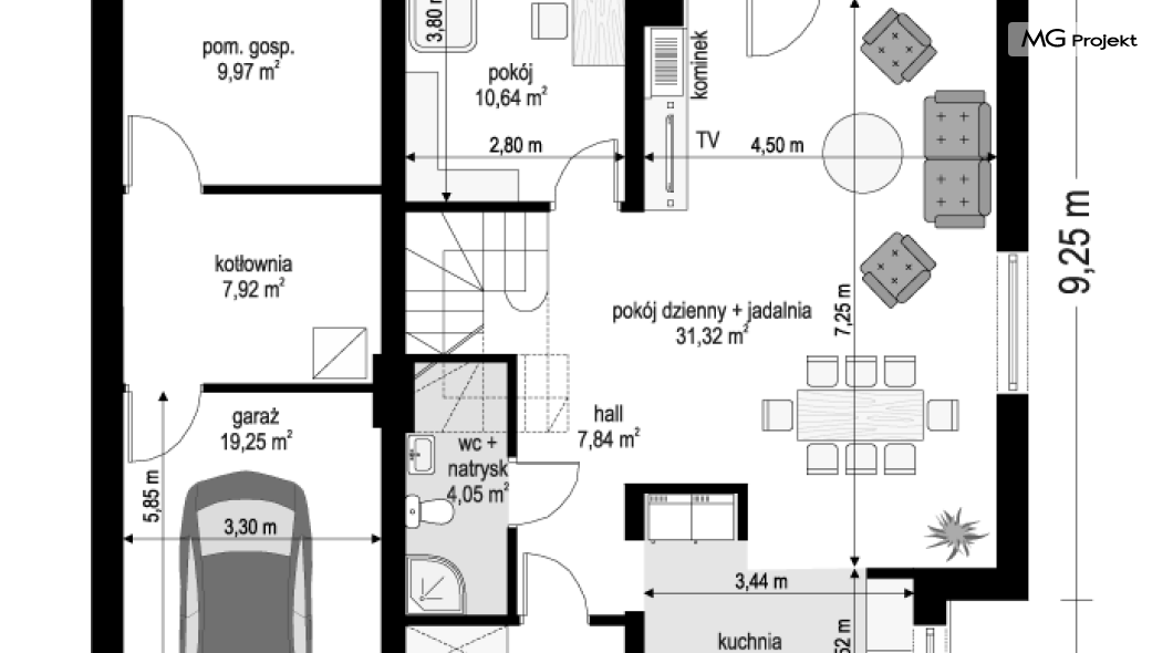 Łączna powierzchnia tzw. pomieszczeń użytkowych. Przede wszystkim nie zalicza się do niej powierzchni garażu, nieużytkowego strychu, piwnicy, kotłowni.